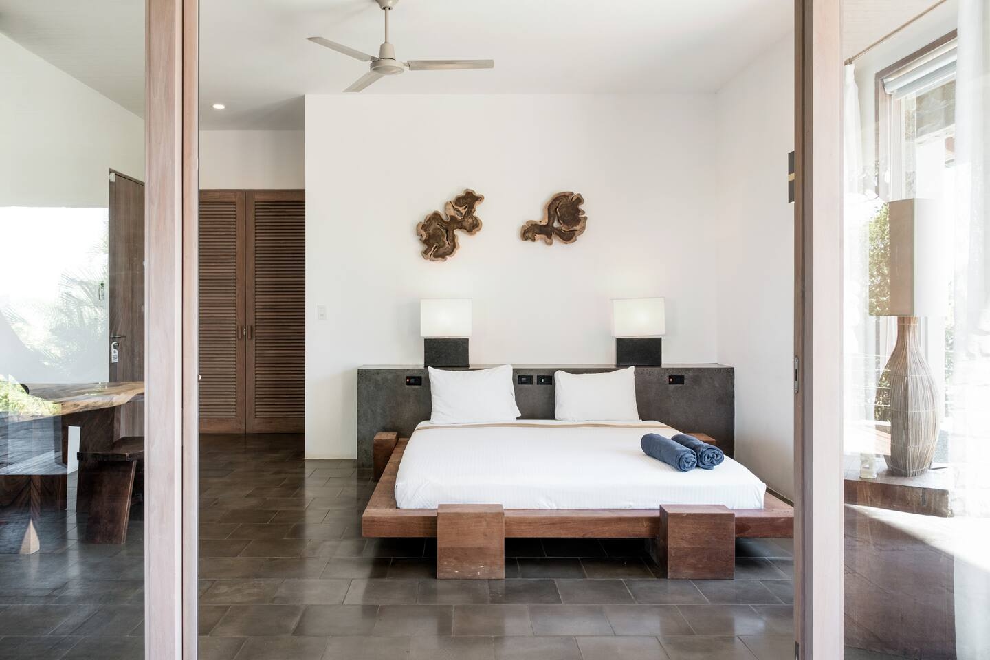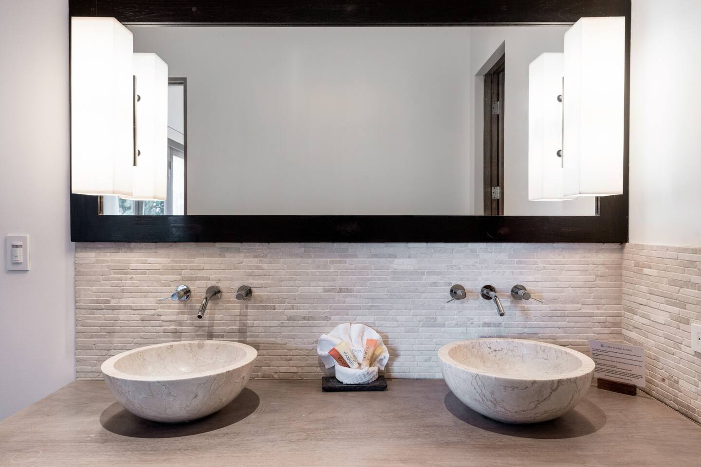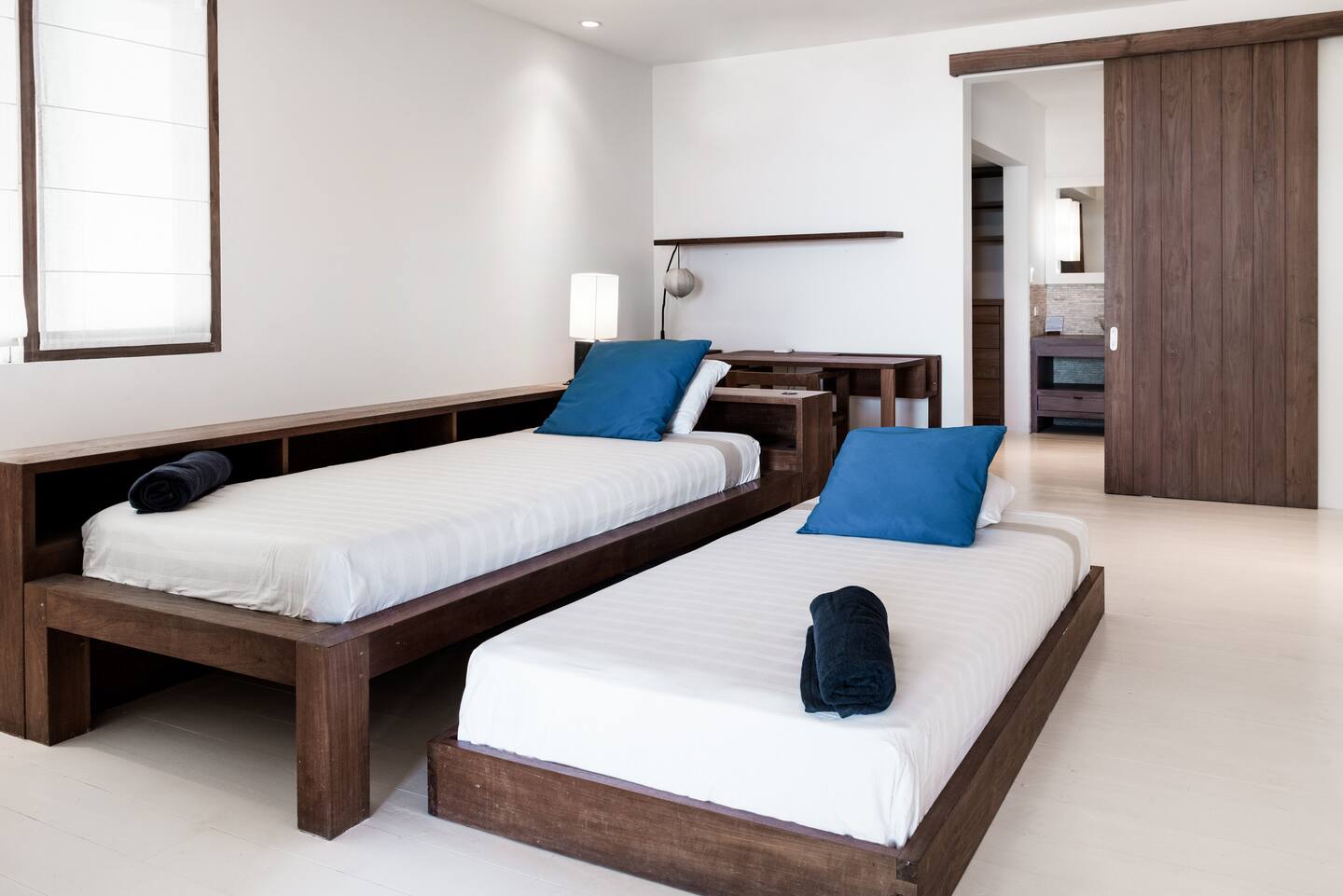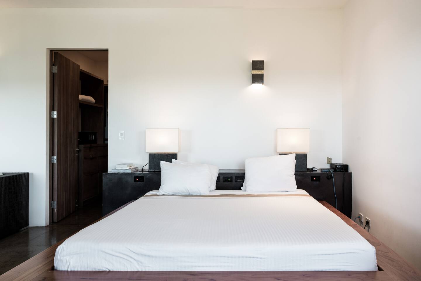 In the main house there are six suites and one bedroom is located in the guest house, each bedroom has an en-suite bathroom. The master suite located in the main-house features a king bed, walk-in closet, dressing area and its own balcony.