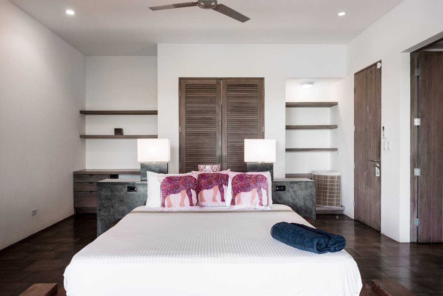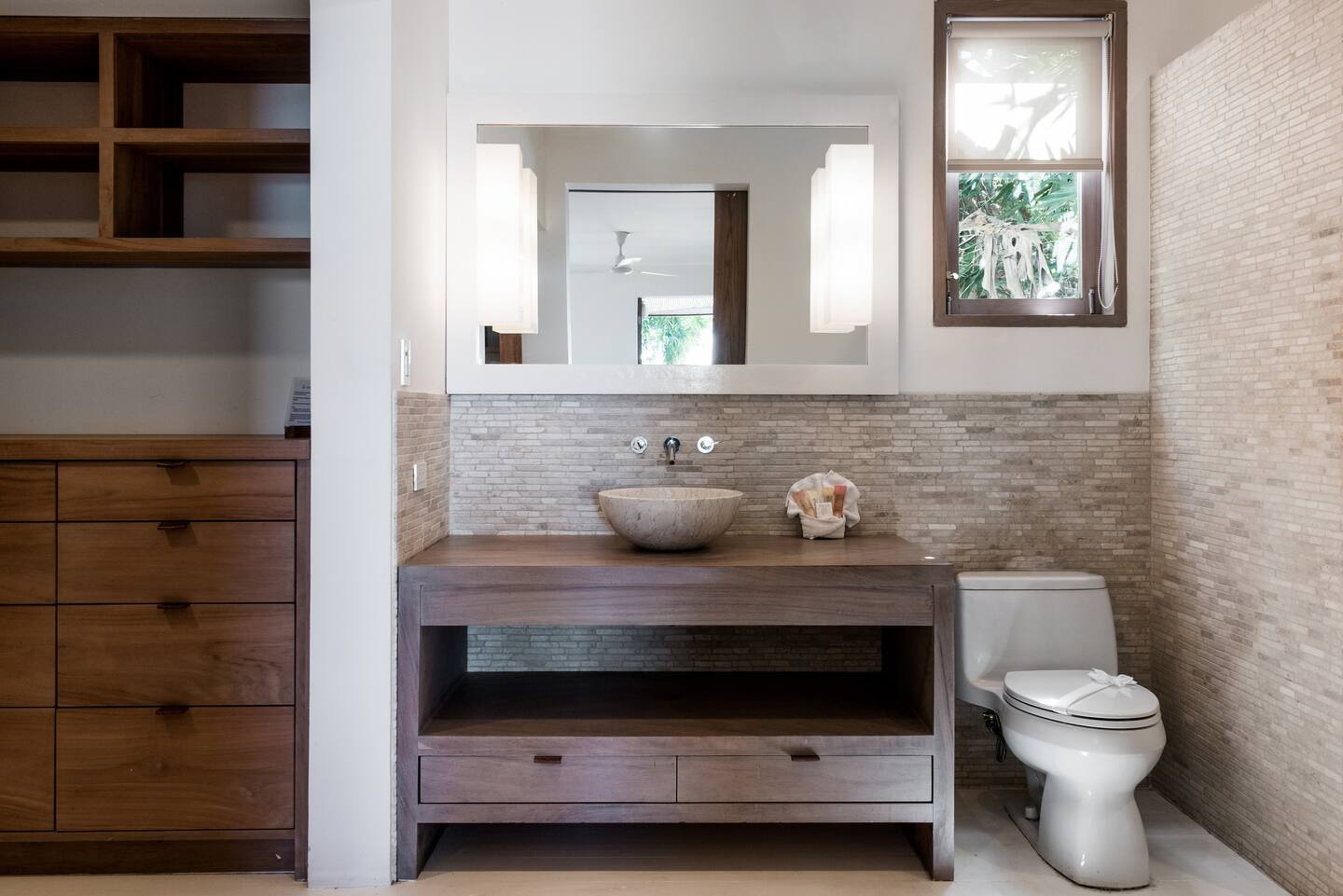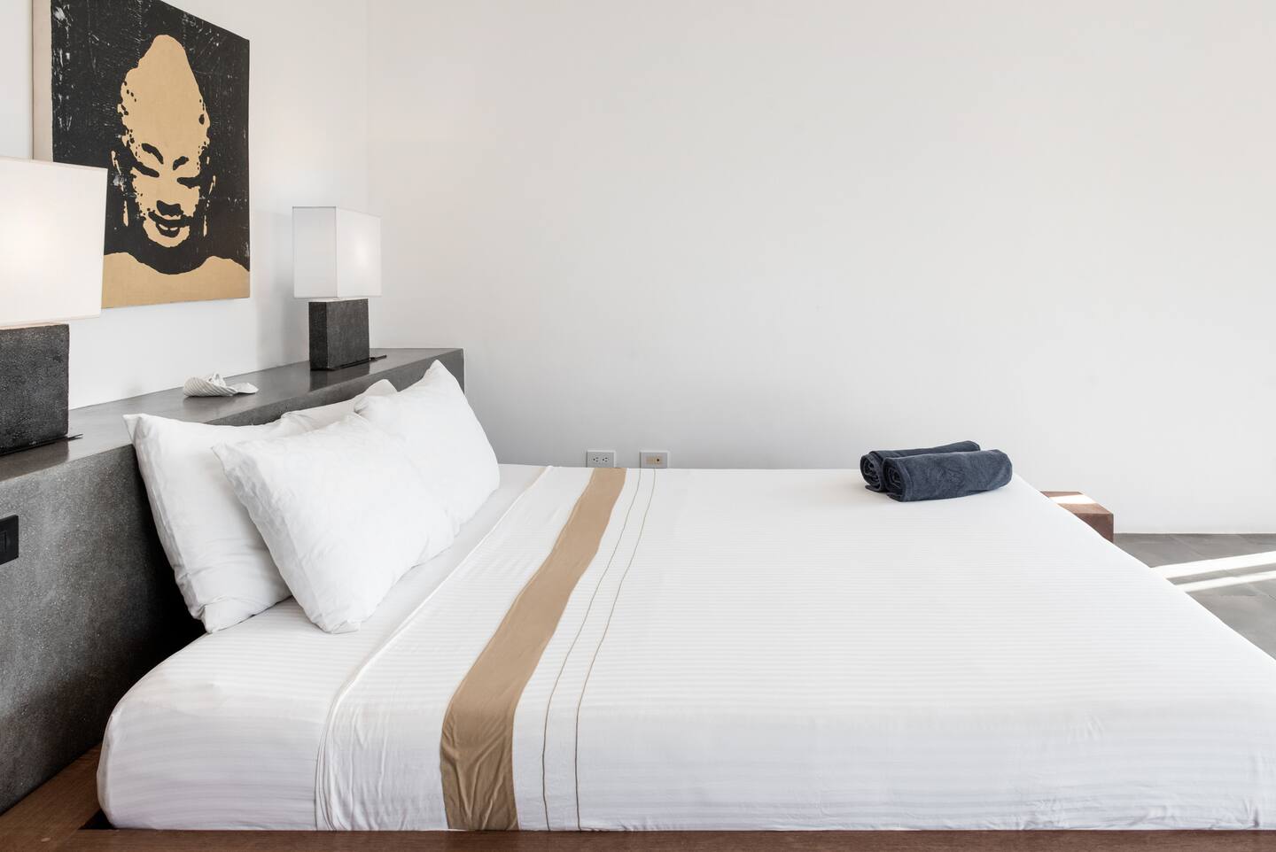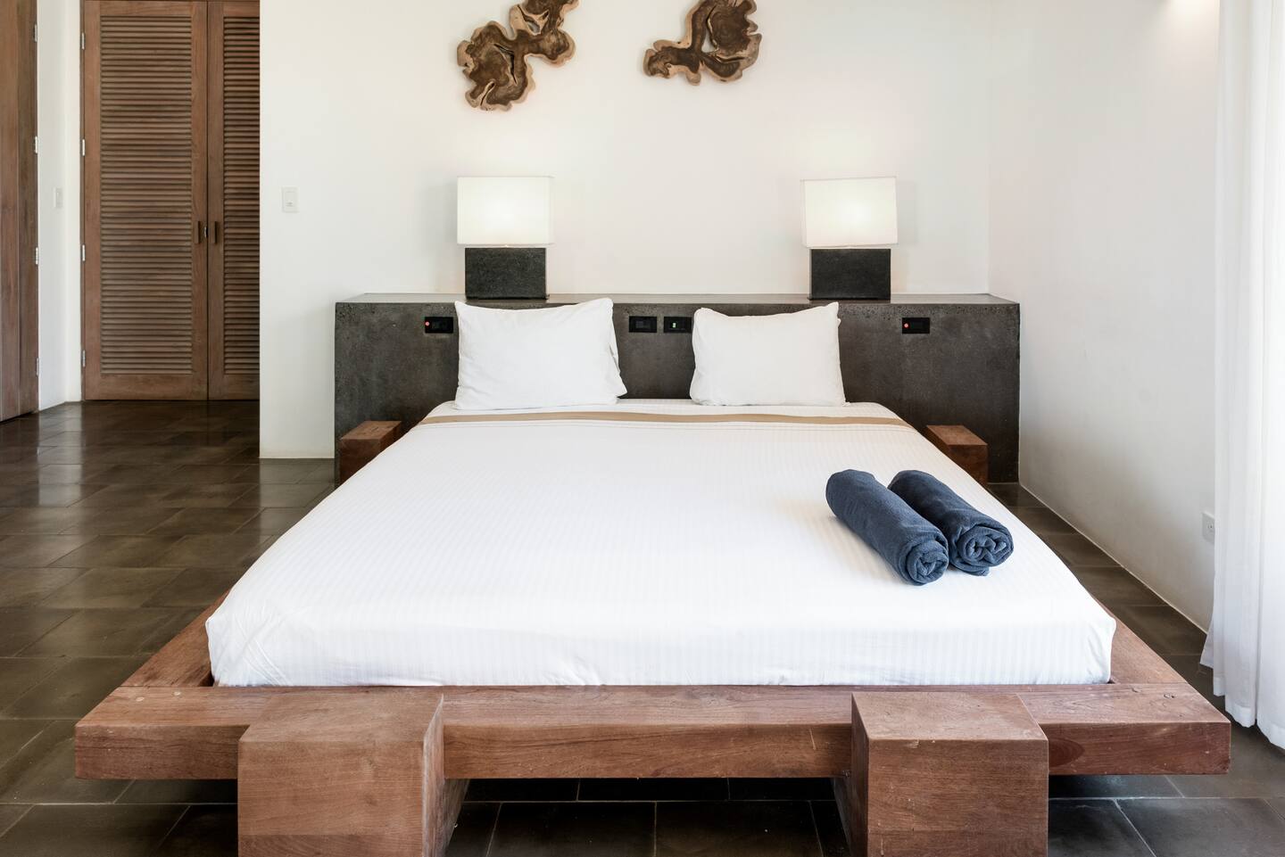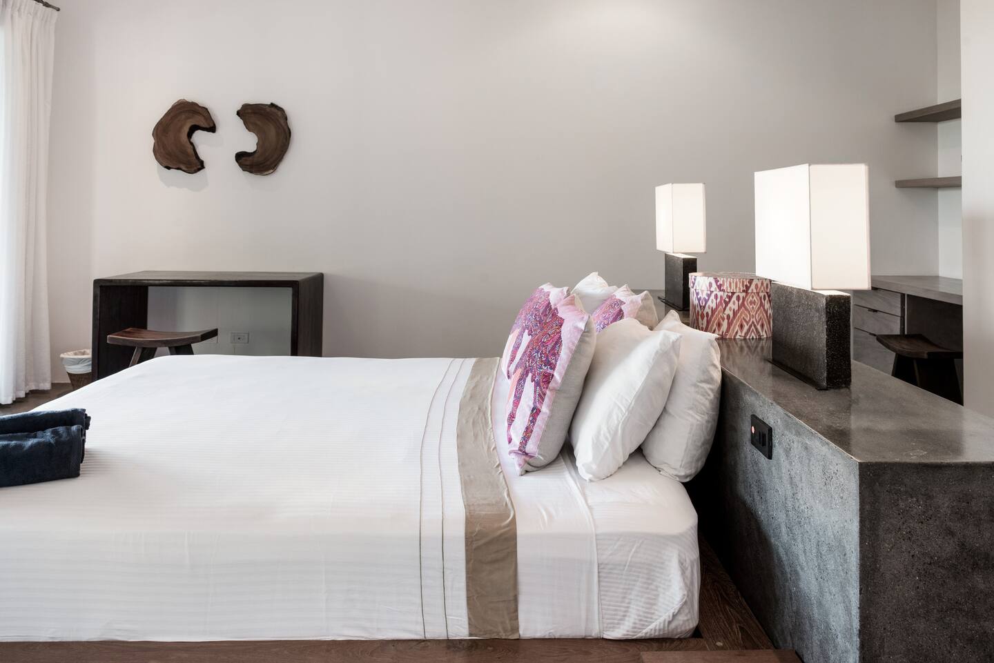 In the main house there are six suites and one bedroom is located in the guest house, each bedroom has an en-suite bathroom. The master suite located in the main-house features a king bed, walk-in closet, dressing area and its own balcony.