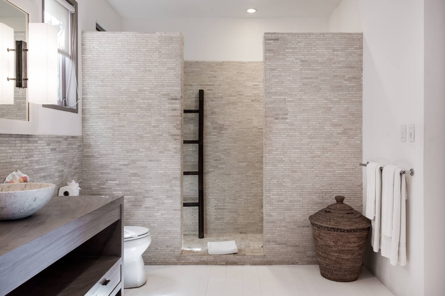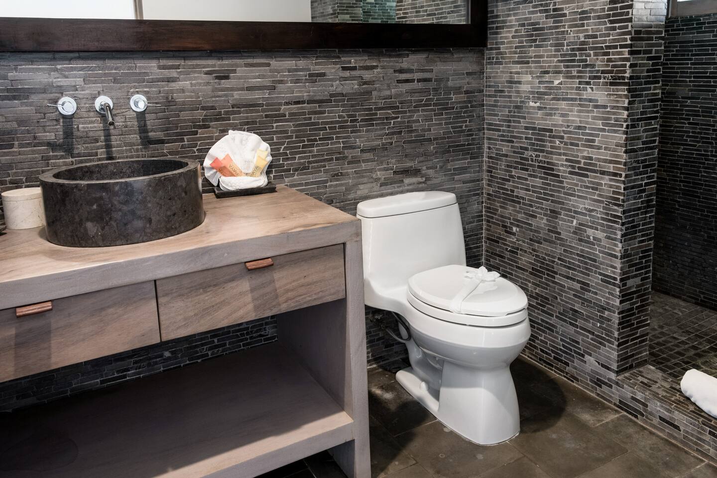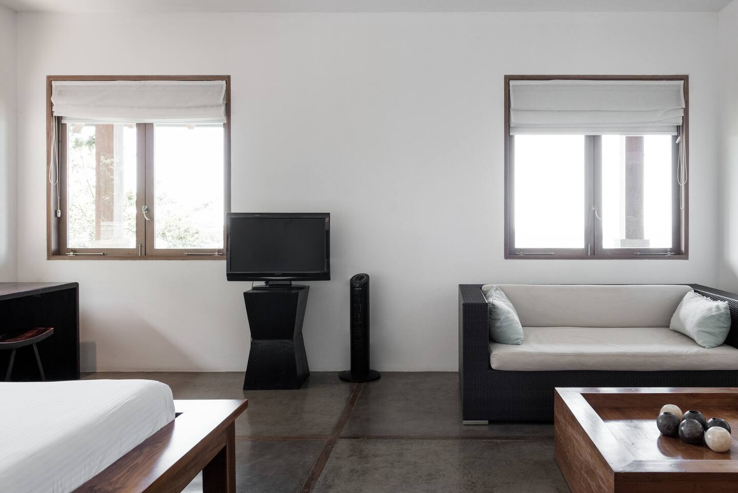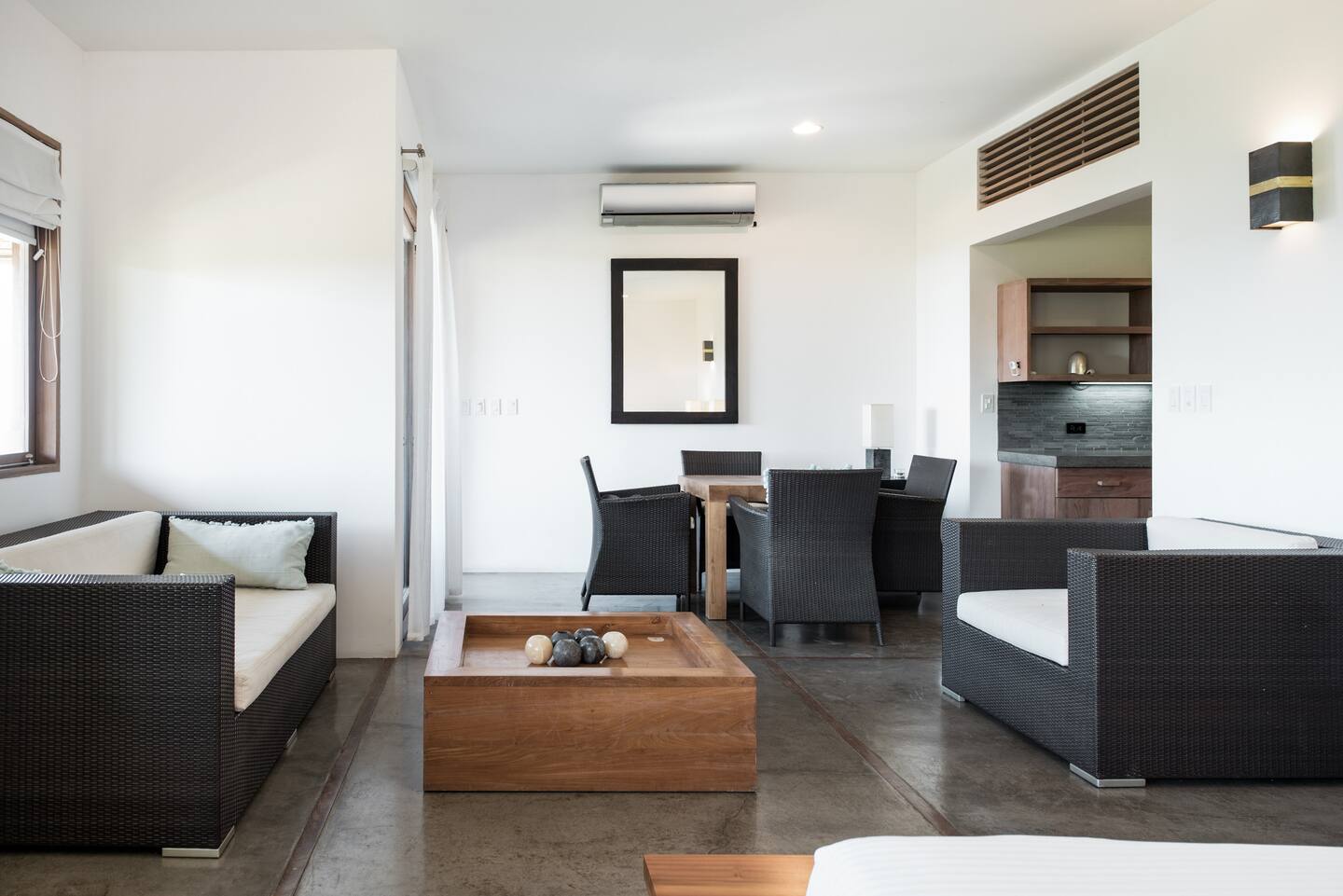 In the main house there are six suites and one bedroom is located in the guest house, each bedroom has an en-suite bathroom. The master suite located in the main-house features a king bed, walk-in closet, dressing area and its own balcony.