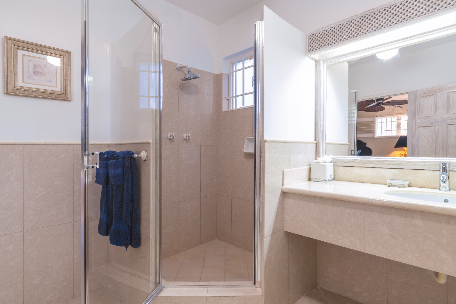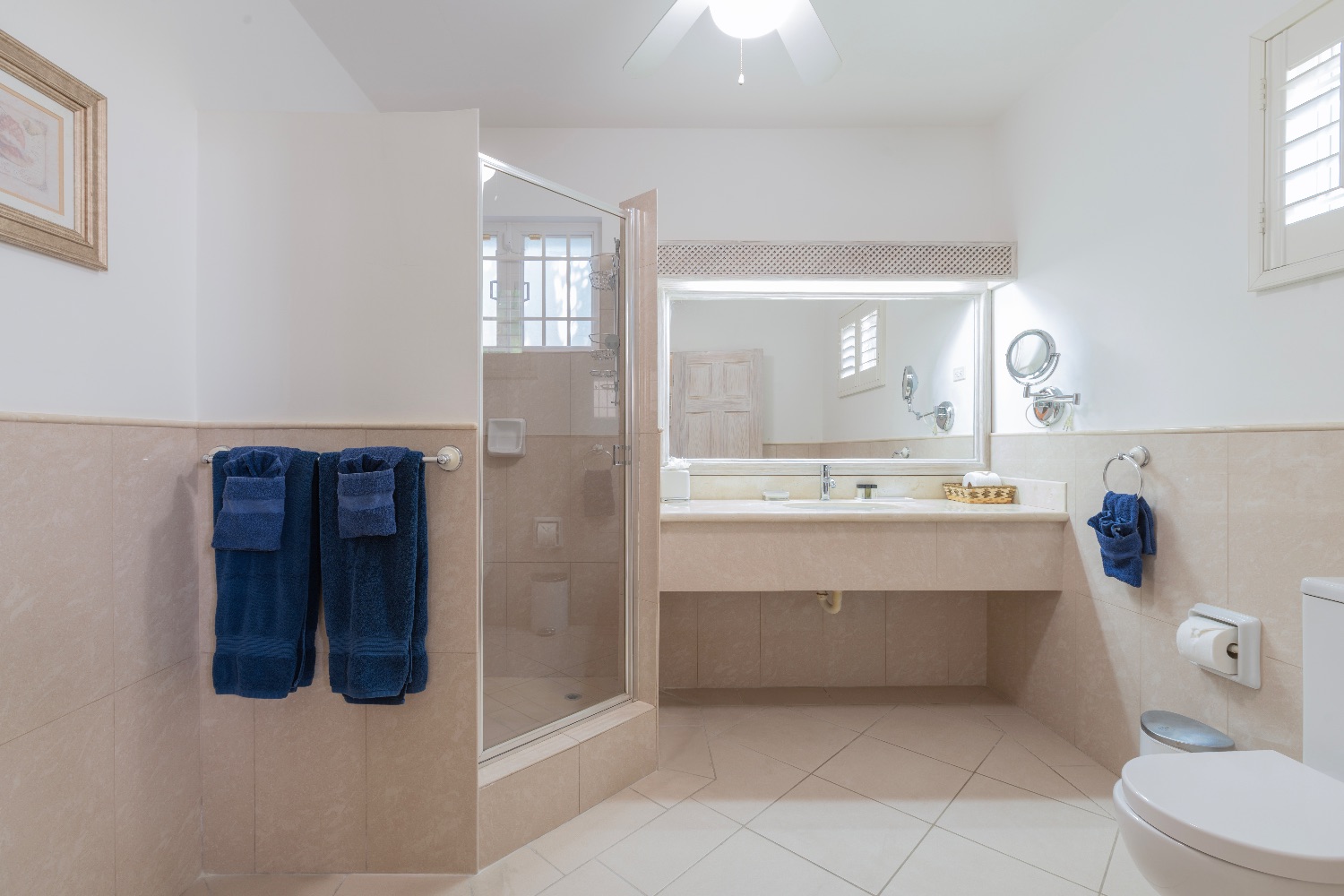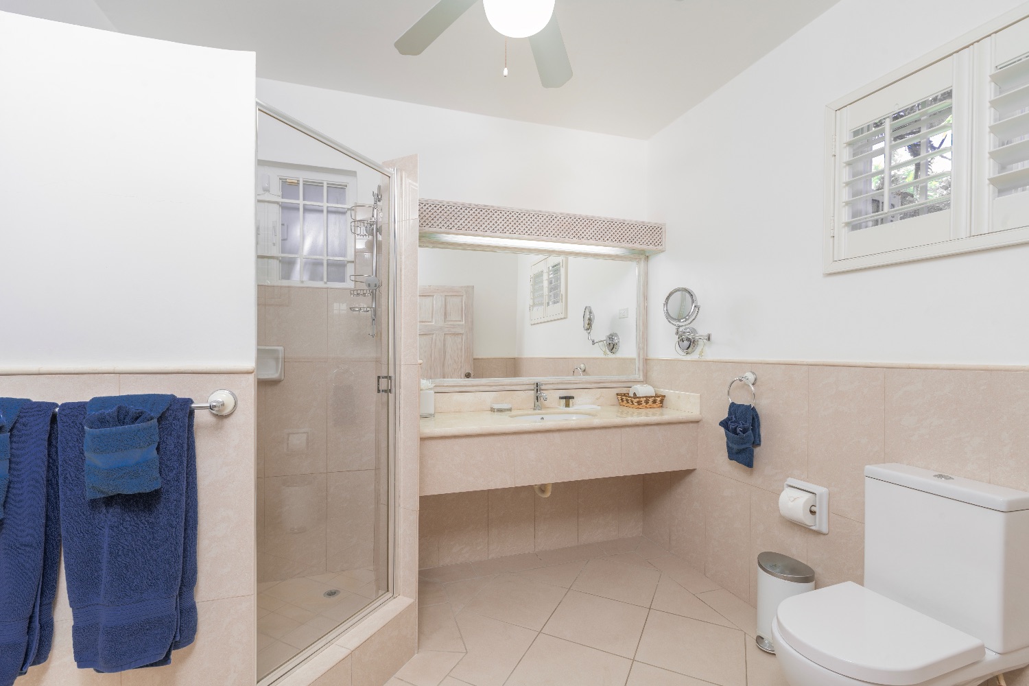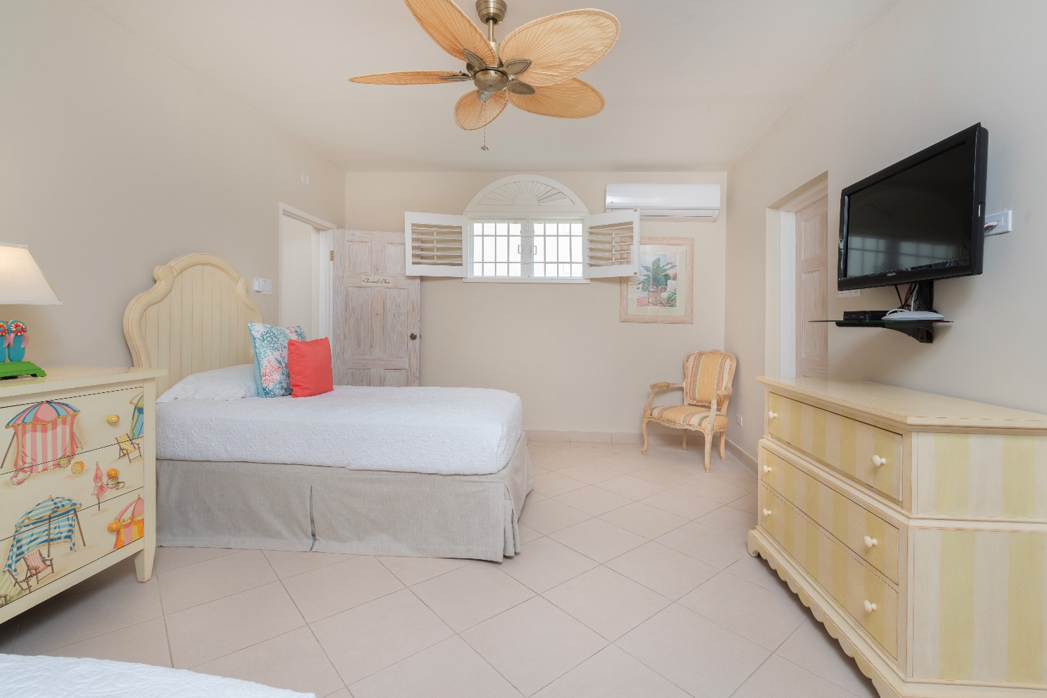 The design and decor of the villa emphasizes the airiness of the Caribbean location, and the mahogany furniture, pale palette, and English Baroque furnishings all enhance the overall experience in each room. There are nine bedrooms on the premises with accommodations for up to 18 visitors. Each bedroom has a luxury en suite bathroom, and they are distributed over the three levels of this elegant and tranquil villa.