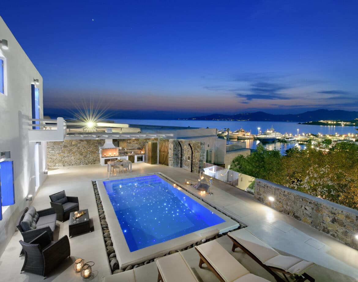 Get ready to make your Instagram followers jealous, as you post pictures from your private pool terrace showcasing breathtaking vistas of what makes Mykonos a world-famous destination – glorious sunsets, picturesque pebbled streets and the whitewashed traditional town. Soak up the sun on the comfy loungers by the pool – whose fiber optics create an idyllic scenery at night, enjoy delicious BBQ-grilled meals under the pergola, and watch the sun go down with a drink, before you hit the road to discover the vivid nightlife of the island.