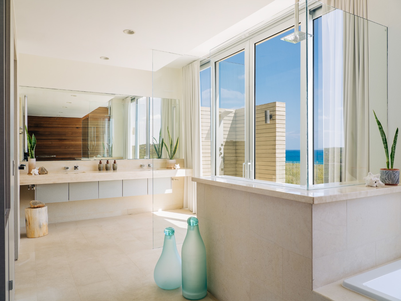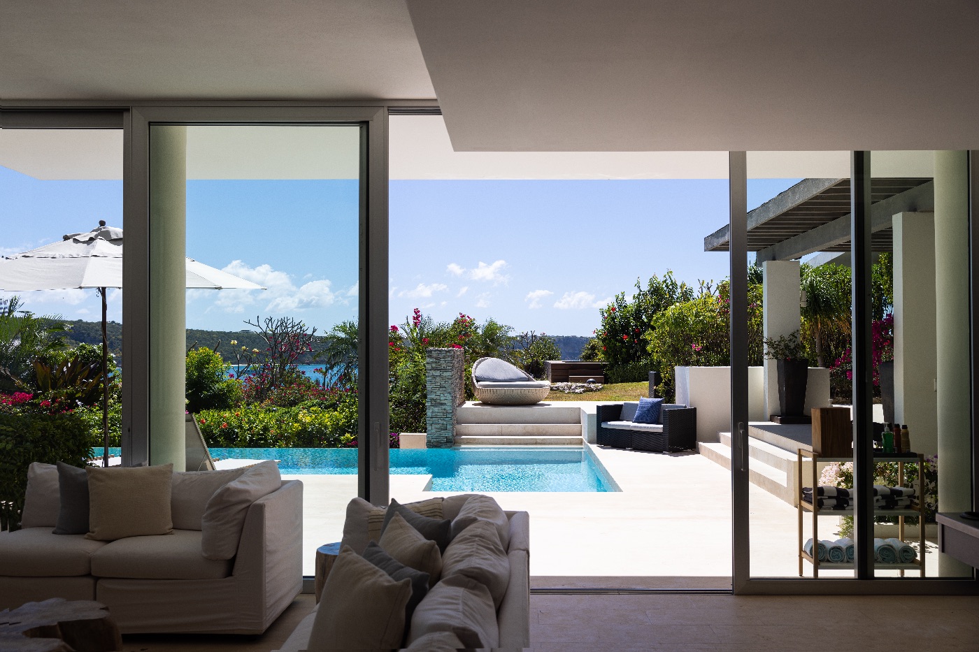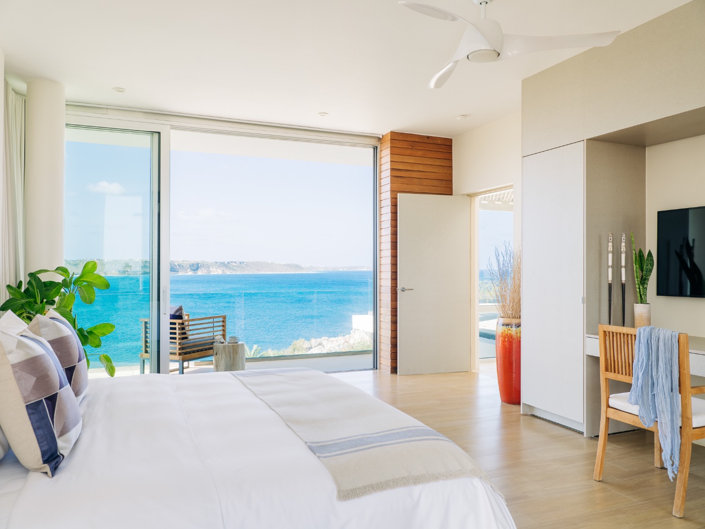 A clifftop eyrie perched above Little Bay on Anguilla’s northern shoreline, ÀNI Anguilla offers an entire, private resort on this jewel of a Caribbean Island, designed exclusively for a single group of guests. Surrounded by vivid-green indigenous flora on three sides, the two-acre (half a hectare) property embraces awe-inspiring, azure views of the Atlantic Ocean just a four-minute stroll from secluded Little Bay Beach. Consummately private yet easily accessible, ÀNI can accommodate up to 20 guests across four Ocean View Suites, two Ocean View Guestrooms, and four Guestrooms. These are housed in two separate villas resting side by side in lush gardens.