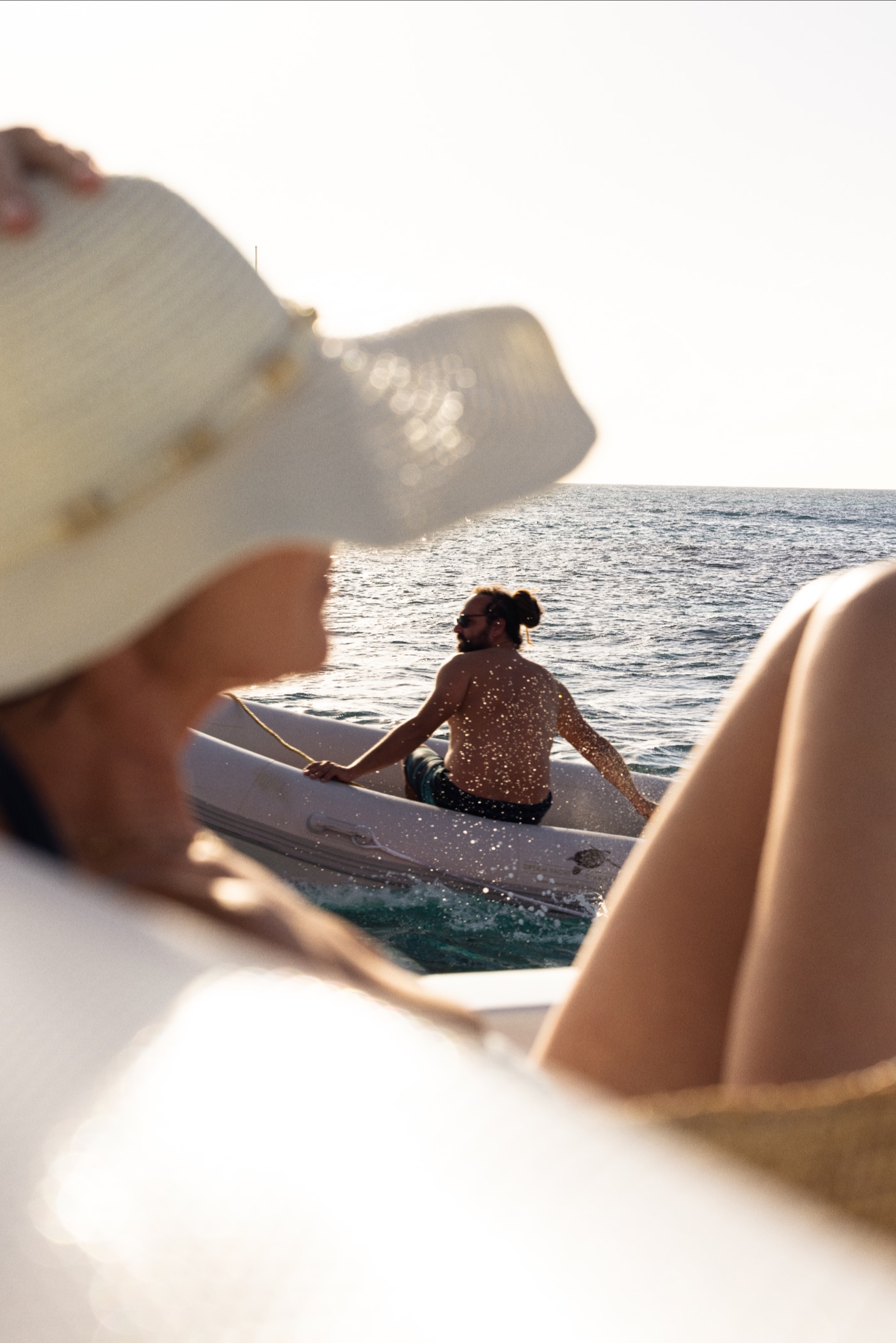 A private paradise seemingly perched between heaven and sea, ÀNI offers every facility and service a group of guests could possibly desire during their stay. Terraces wrap around sparkling swimming pools; the air-conditioned gym includes a Peloton bike; a tranquil spa treatment room is situated beside the tennis court; and two golf carts are available for getting to and from Crocus Bay Beach. The resort’s discreet and dedicated team of up to 20 staff is available around the clock to tailor every detail – from special full-board dining, spa treatments, and cultural excursions, to kids’ activities and exploration of the region – to ensure a bespoke experience that defies expectations.