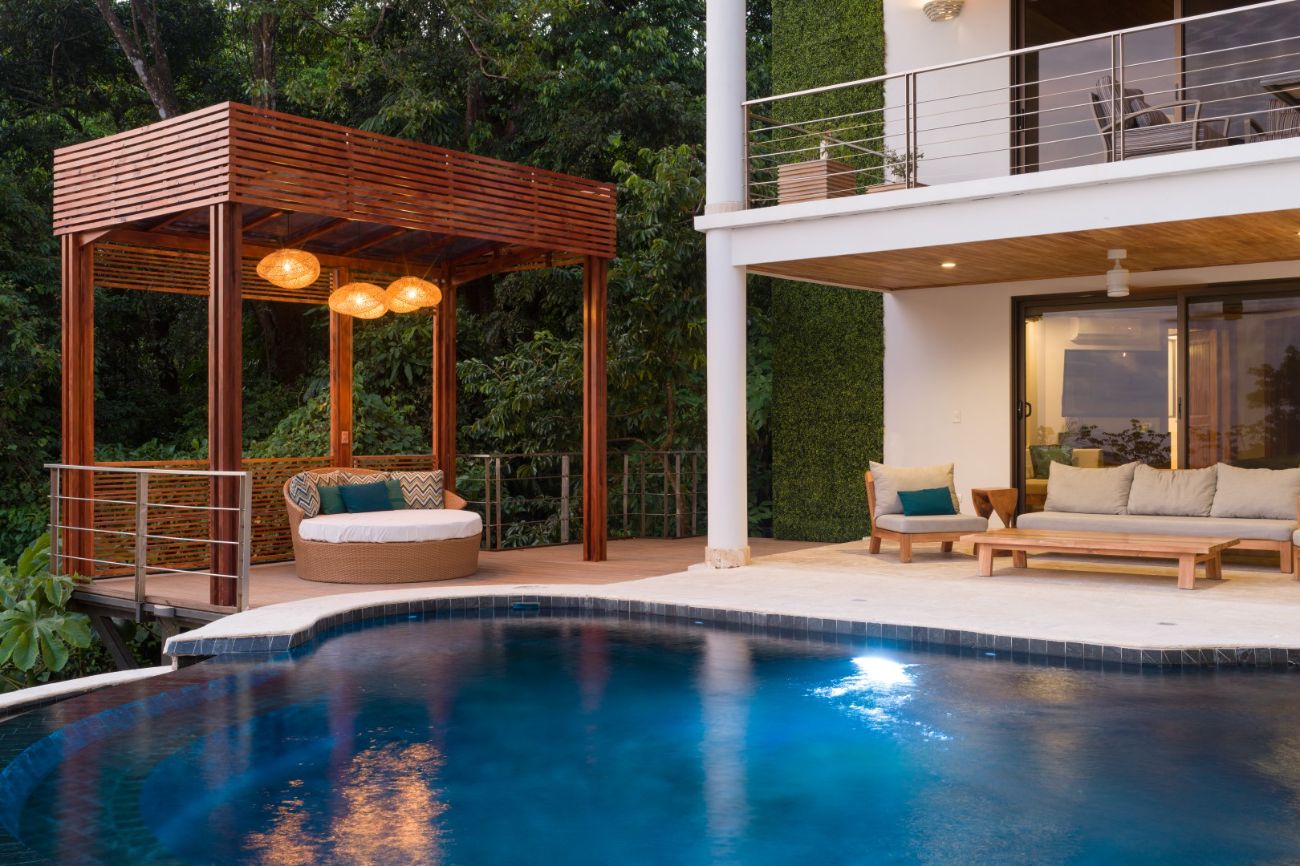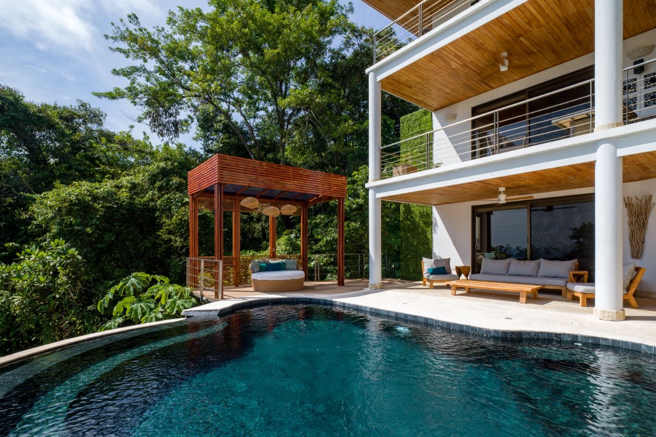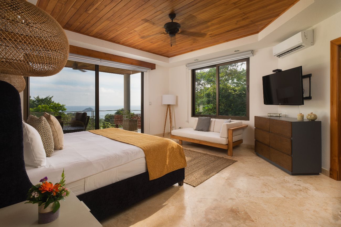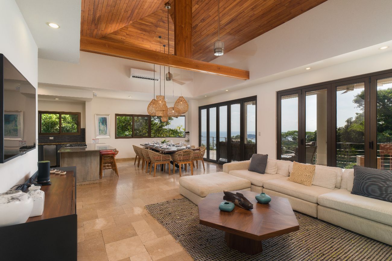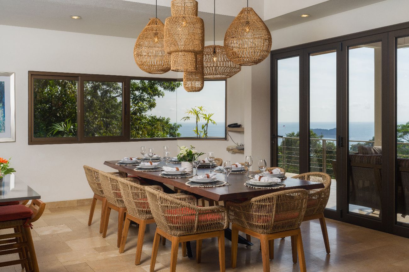 Where the jungle meets the Pacific, Casa Anjali is a contemporary seven-bedroom sanctuary set behind a private gate in Manuel Antonio. Vast glass walls, vaulted teak ceilings, and open-plan living spaces frame uninterrupted views of rainforest and sea—your daily backdrop to slow mornings and golden-hour gatherings.