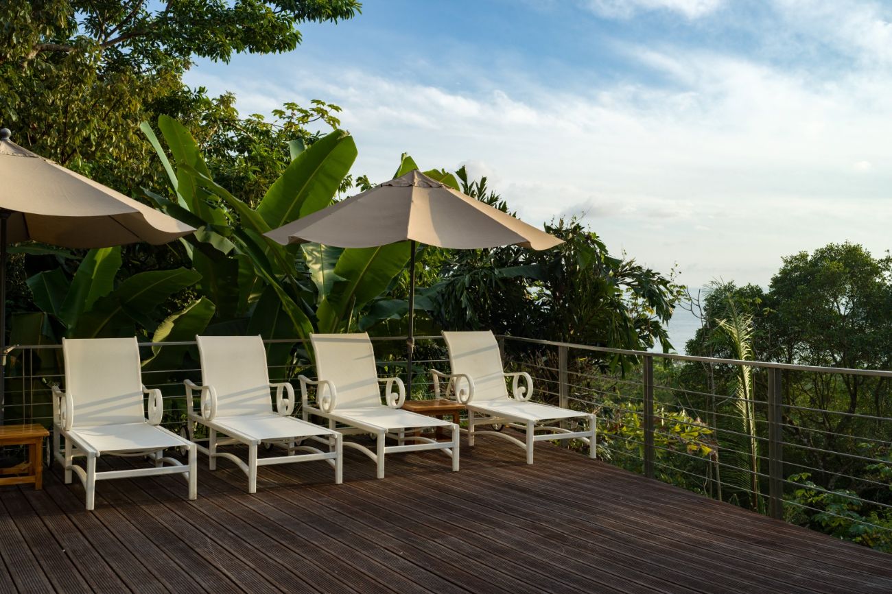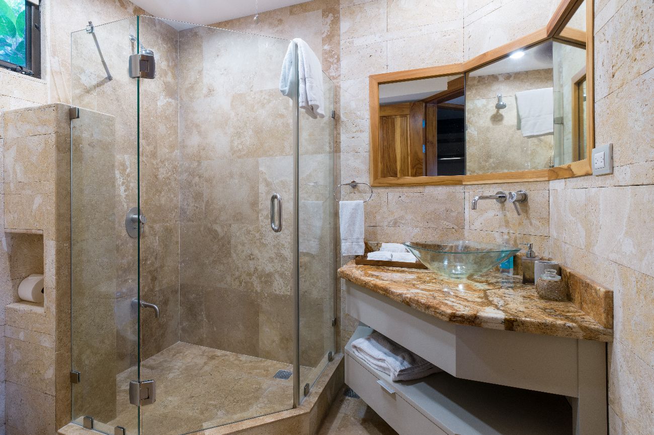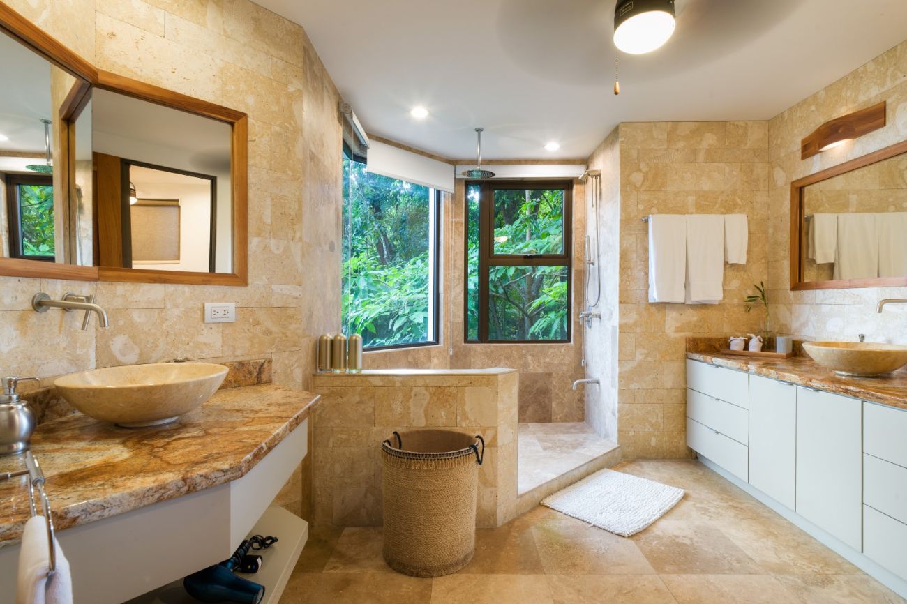 Every bedroom includes ensuite bathroom, walk-in closet, private terrace, and floor-to-ceiling glass to capture ocean and rainforest views.