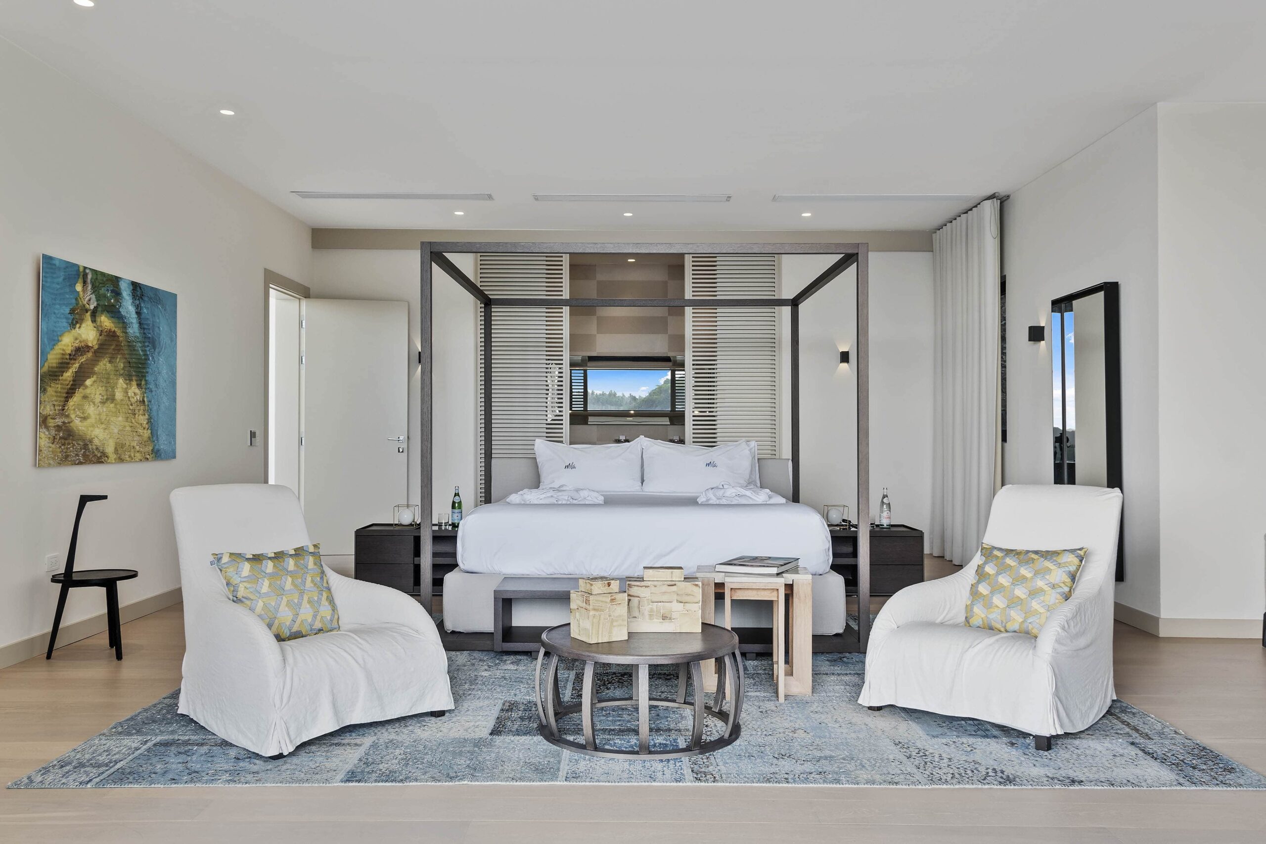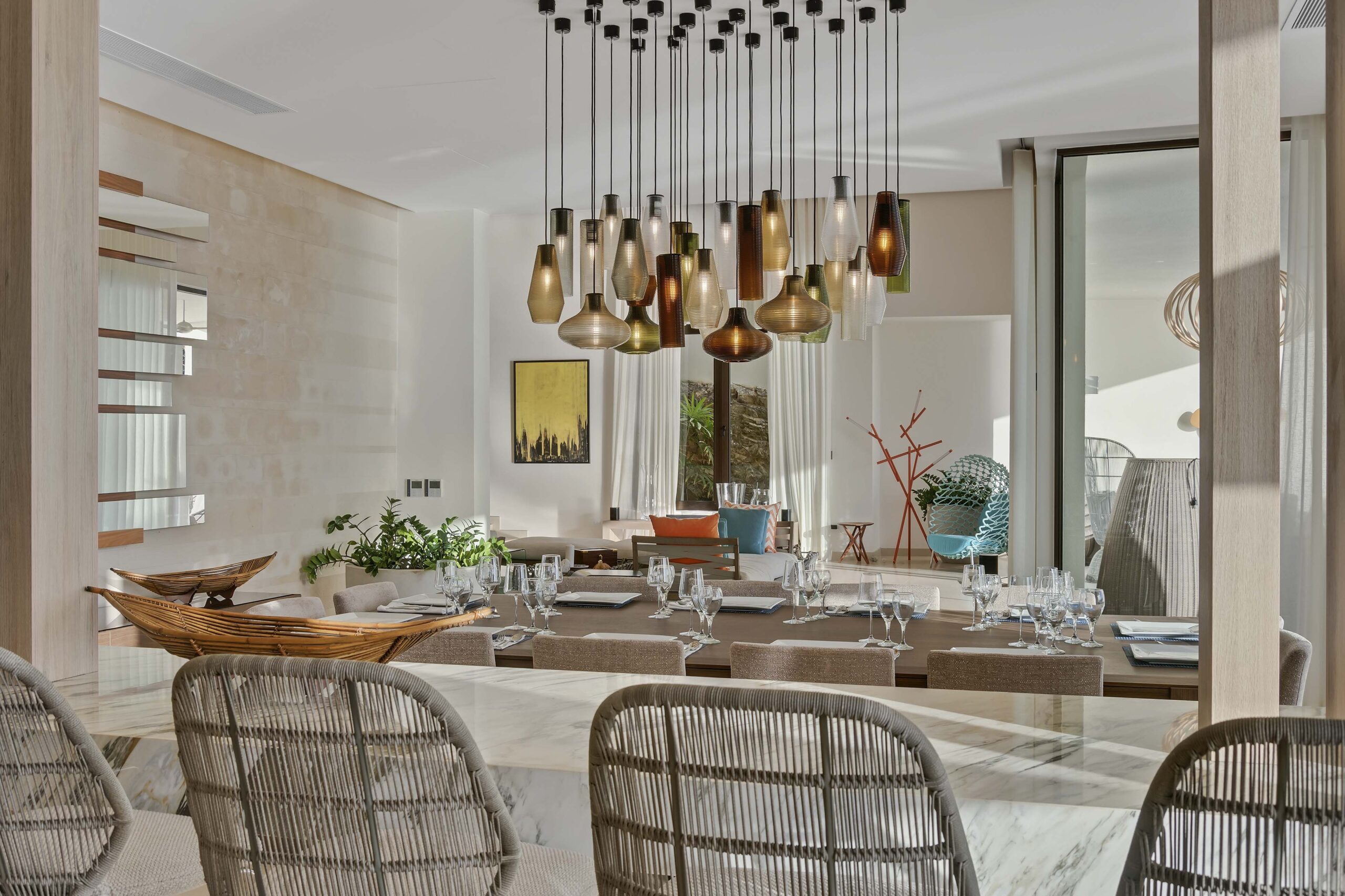 The villa can accommodate up to 10 people and has five large bedrooms, each of which is a private haven with an en suite bathroom furnished with Gilchrist & Soames conveniences, ample closet space, and tasteful lighting. There is seating for ten, making it ideal for celebratory toasts or a peaceful morning coffee while the waves roll in. Two main suites open onto a stunning oceanfront terrace that is set up for lounging. Every visitor will experience hotel-level comfort and privacy thanks to the equally tranquil remaining bedrooms.