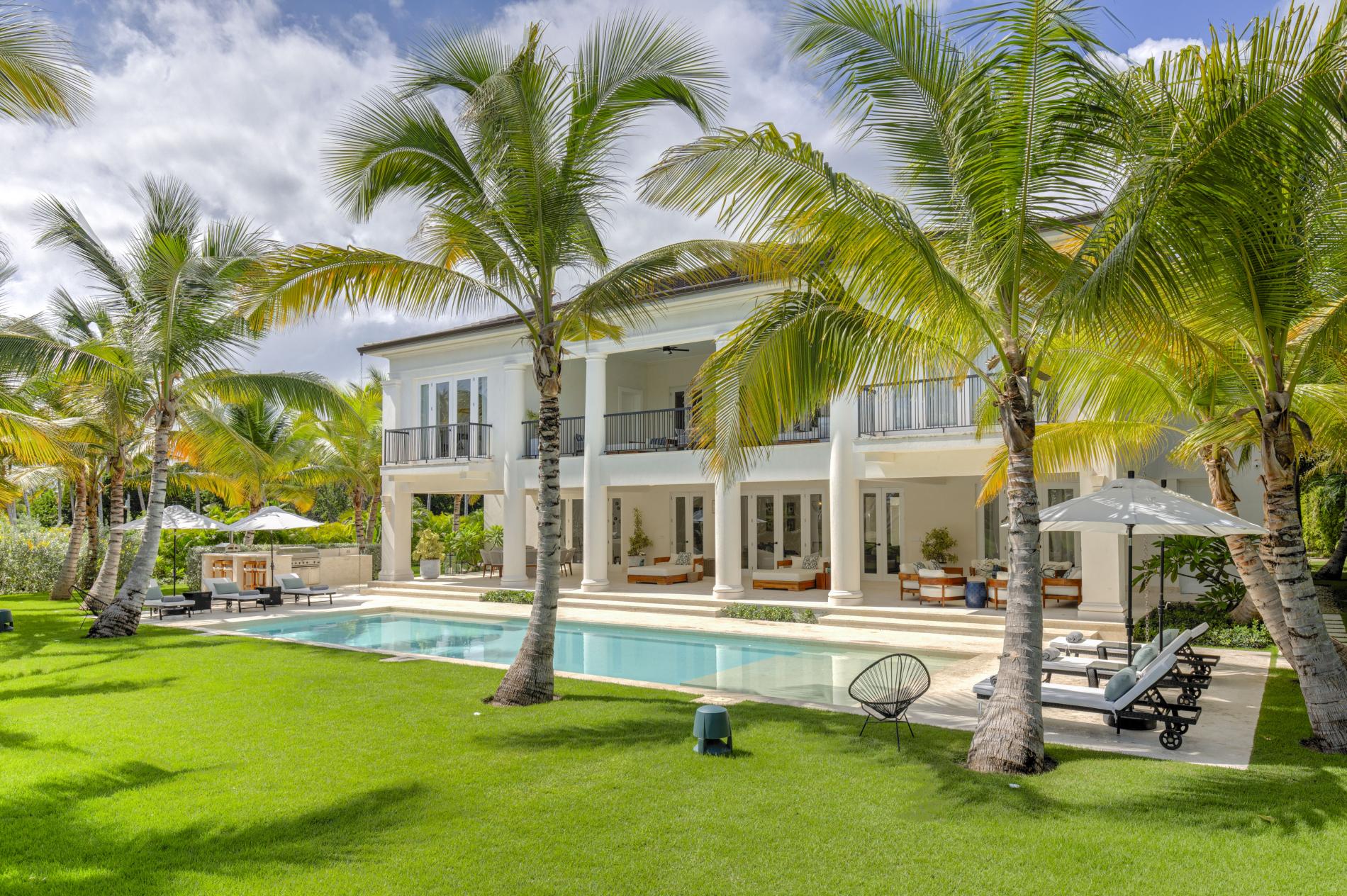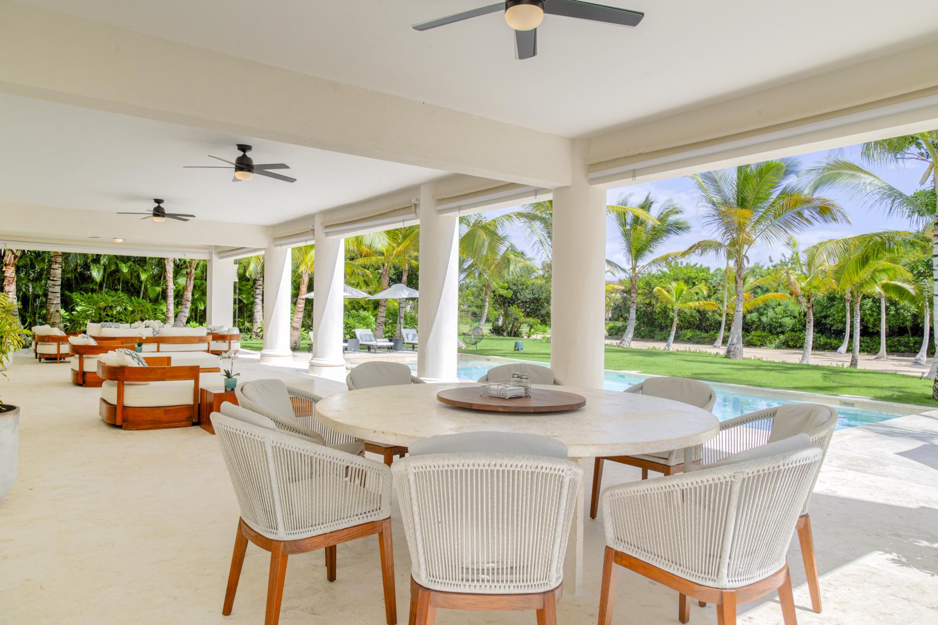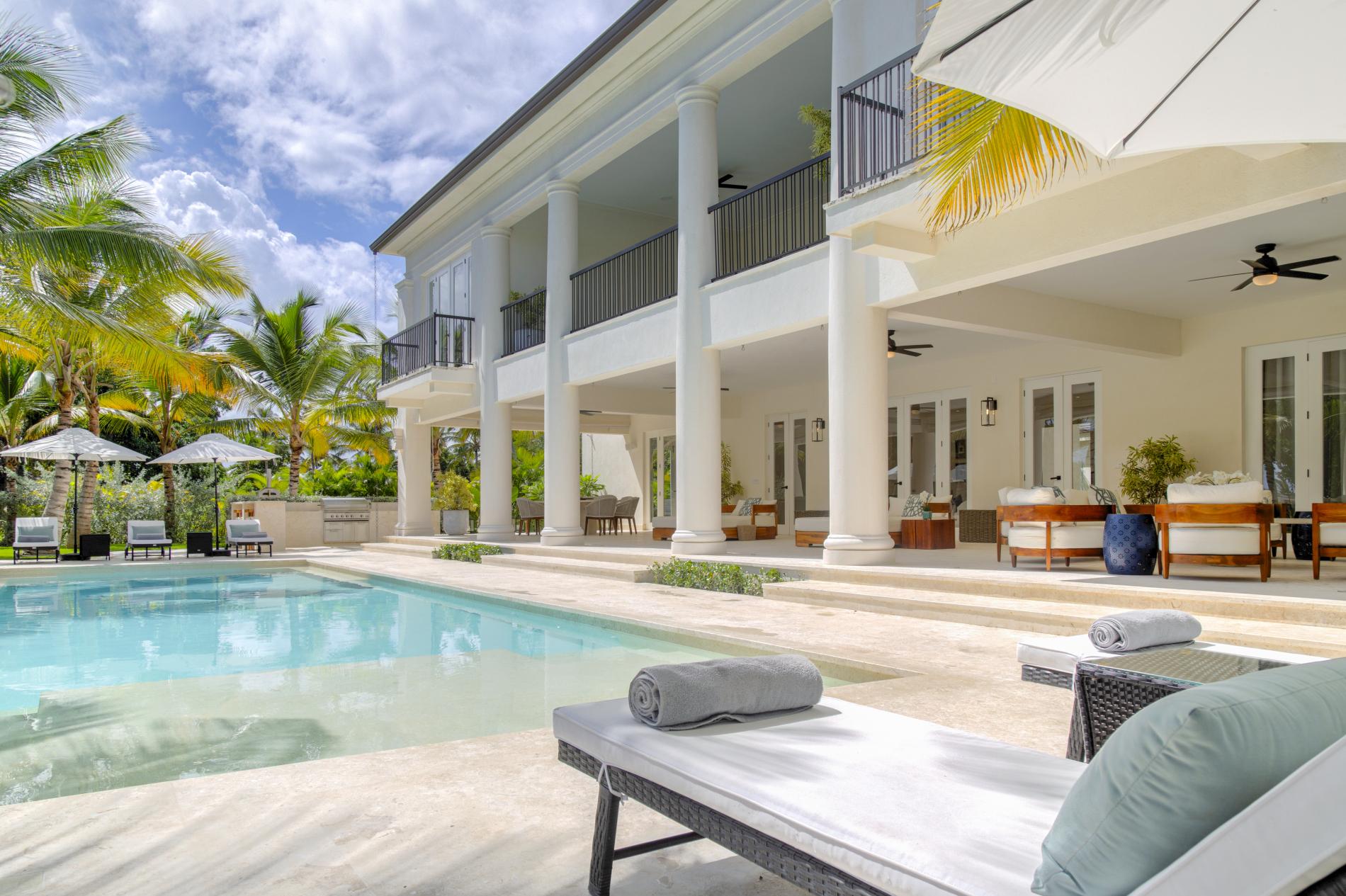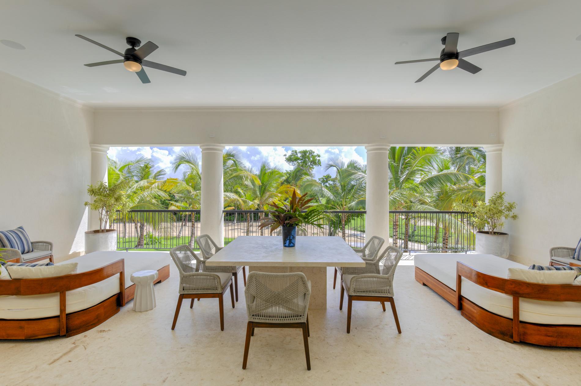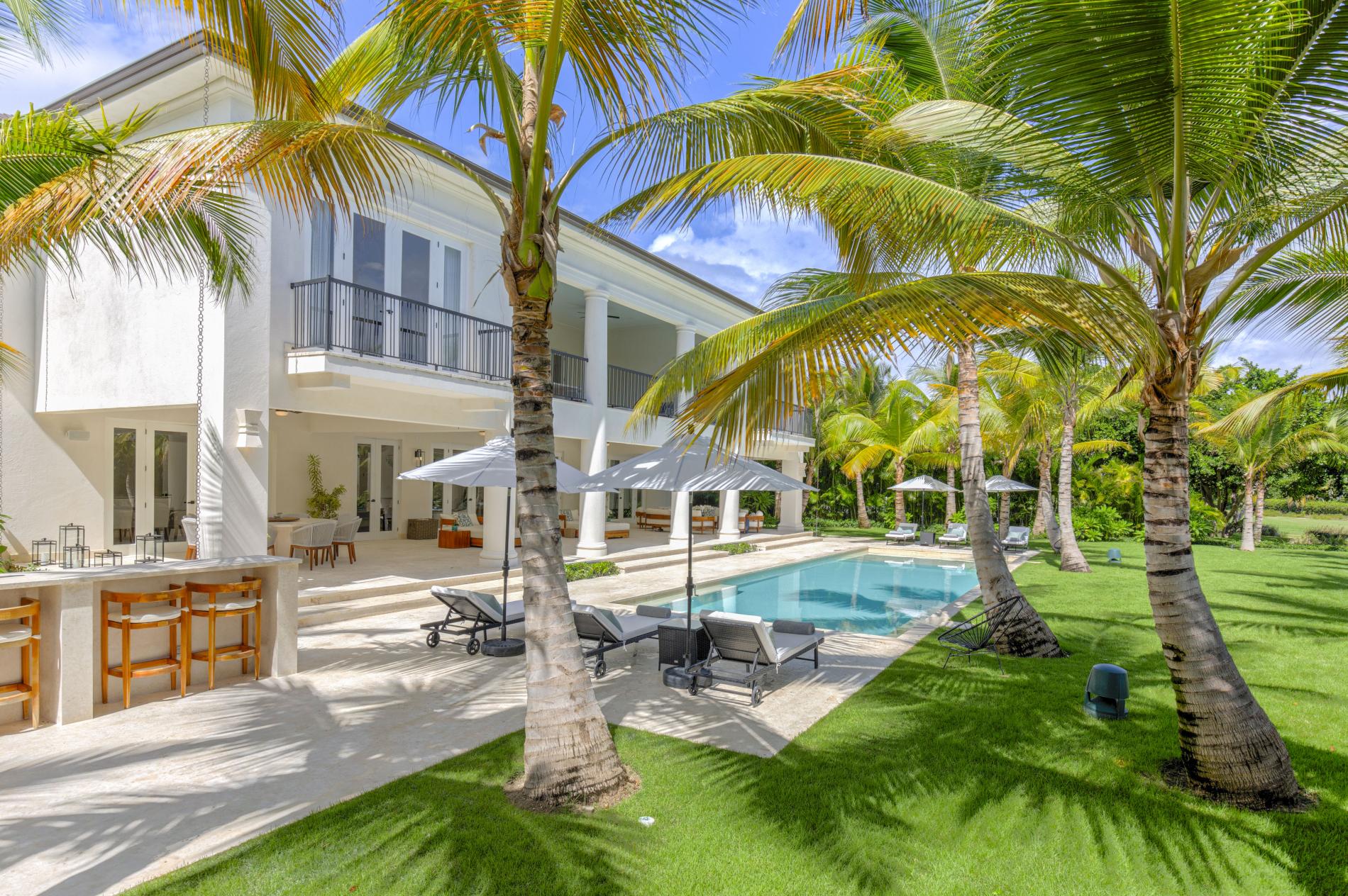 This golf-front villa feels both elegant and intimate, with sun-drenched living areas that open to the terrace, cool Coralina under bare feet, and a soft cross-breeze that carries the sound of palms throughout the house. It is framed by mature gardens and long sightlines of the golf course. As the greens awaken, mornings start with espresso on the veranda; afternoons are spent swimming and reading in the shade by the pool; evenings drift to the shoreline of La Cana for a barefoot dinner before you make your way home under a starry sky. Arrecife EFG8 is unique among Punta Cana villas in that it combines the relaxed rhythm of true indoor-outdoor living with an upscale, golf-belt address.