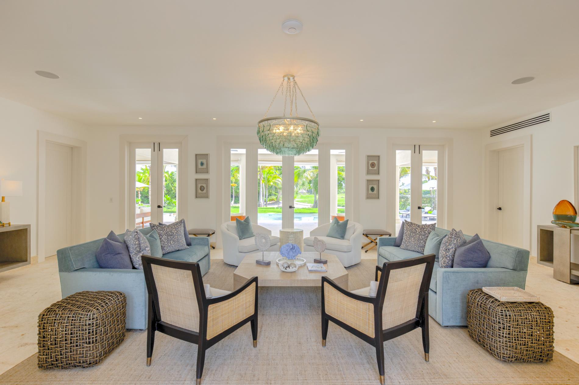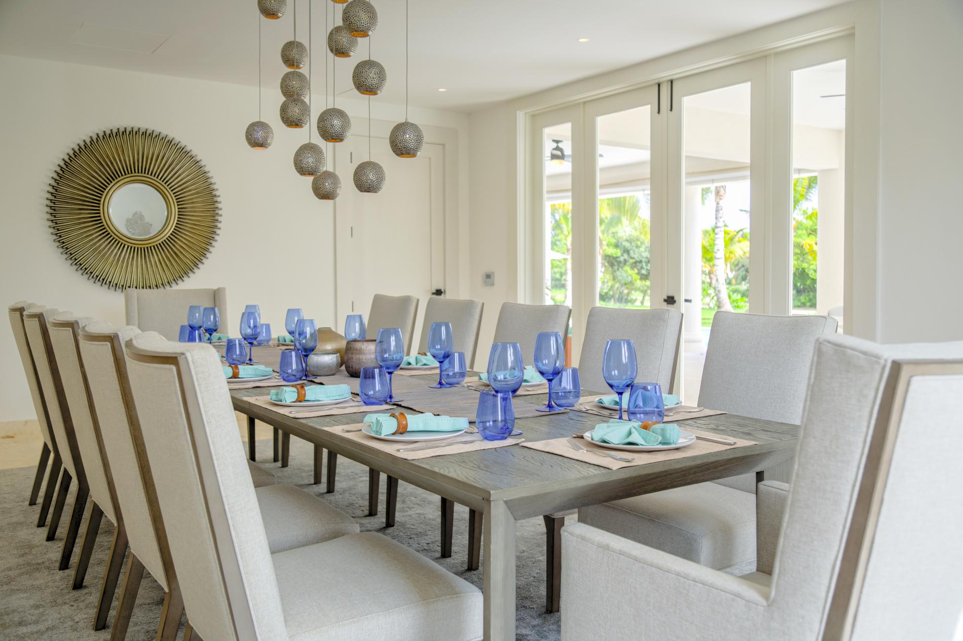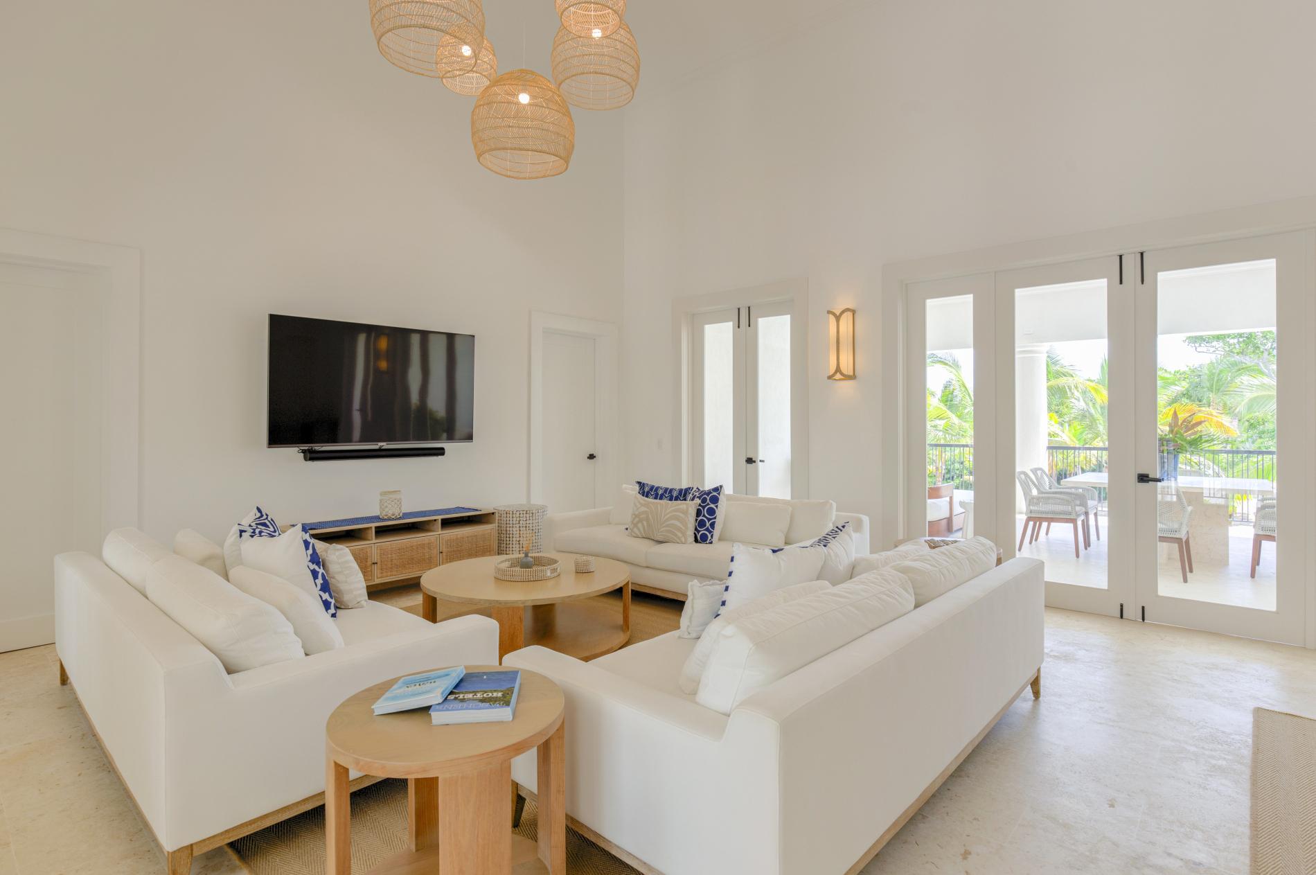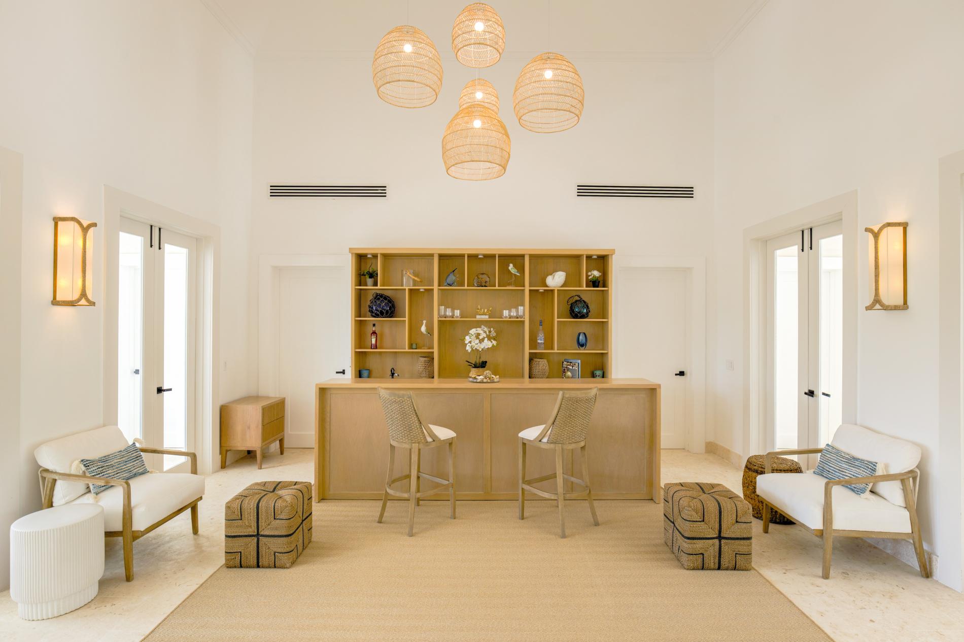 The interior features modern Caribbean architecture with high ceilings, clean lines, and floor-to-ceiling glass that blurs the line between the house and the garden. With cozy lounges you’ll actually use, a dining area that transitions from relaxed breakfasts to festive dinners, and a chef-friendly kitchen that can handle anything from a quick ceviche to a private tasting menu, the open great room serves as the focal point of the day.