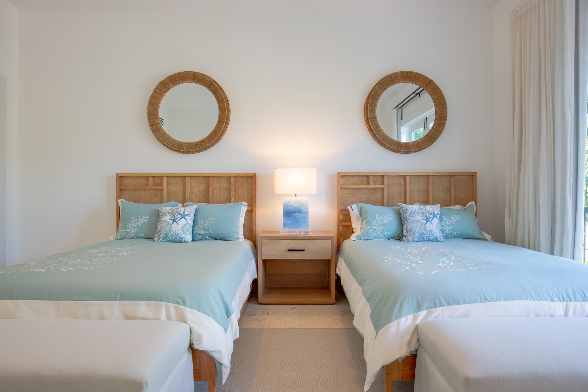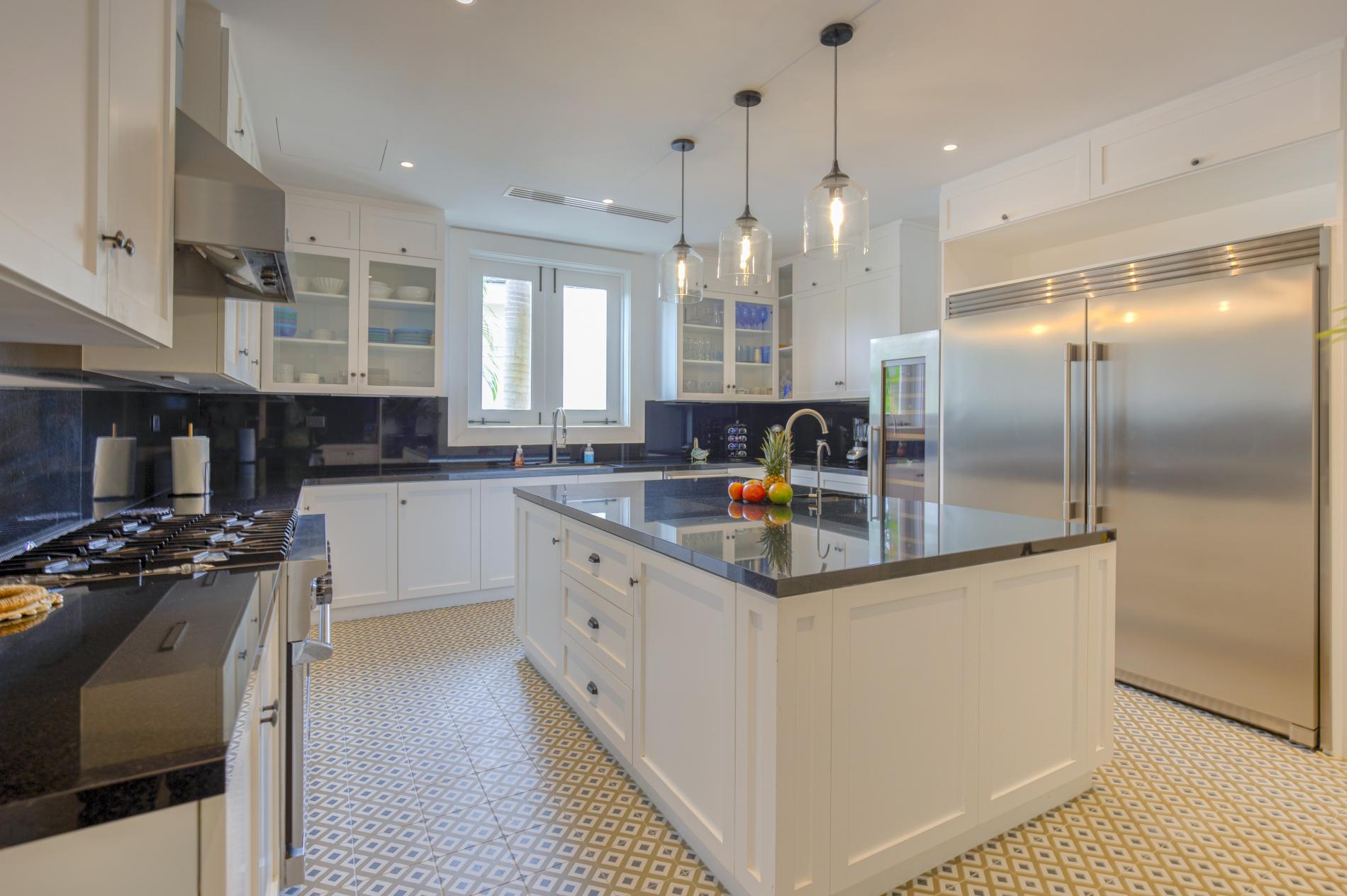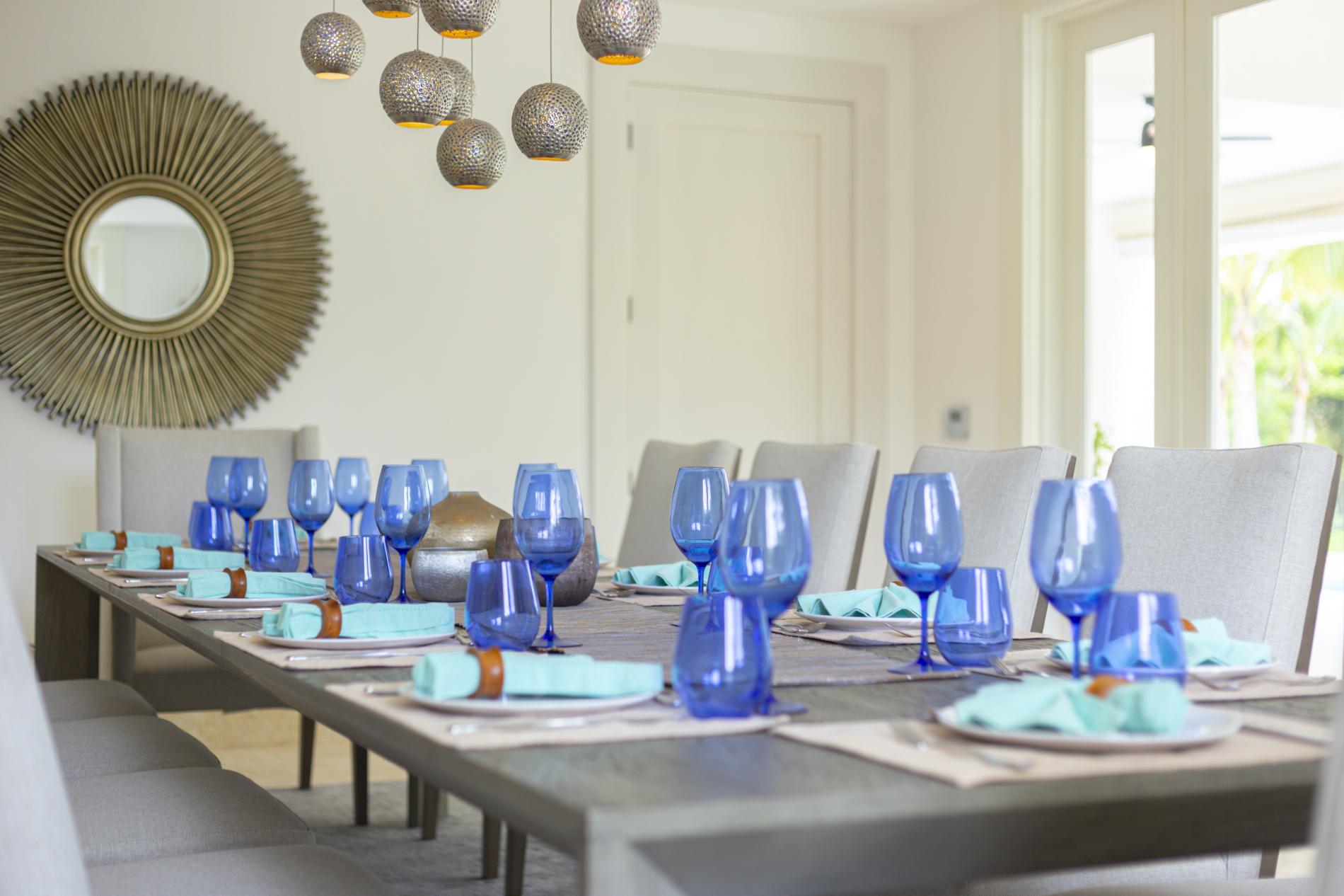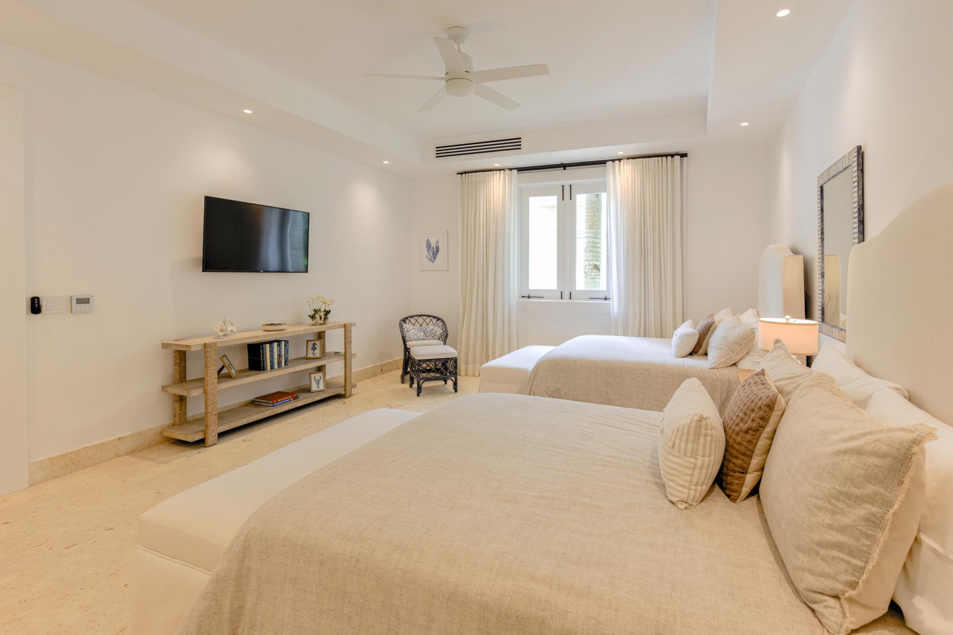 The interior features modern Caribbean architecture with high ceilings, clean lines, and floor-to-ceiling glass that blurs the line between the house and the garden. With cozy lounges you’ll actually use, a dining area that transitions from relaxed breakfasts to festive dinners, and a chef-friendly kitchen that can handle anything from a quick ceviche to a private tasting menu, the open great room serves as the focal point of the day.