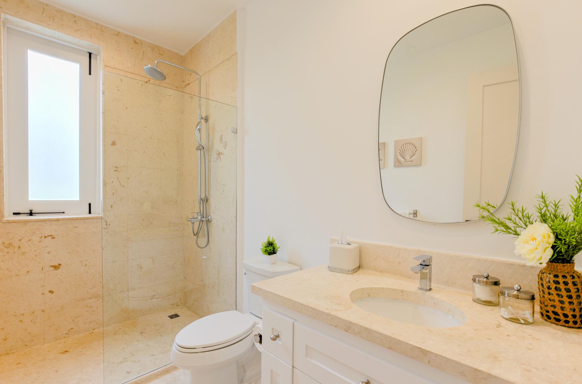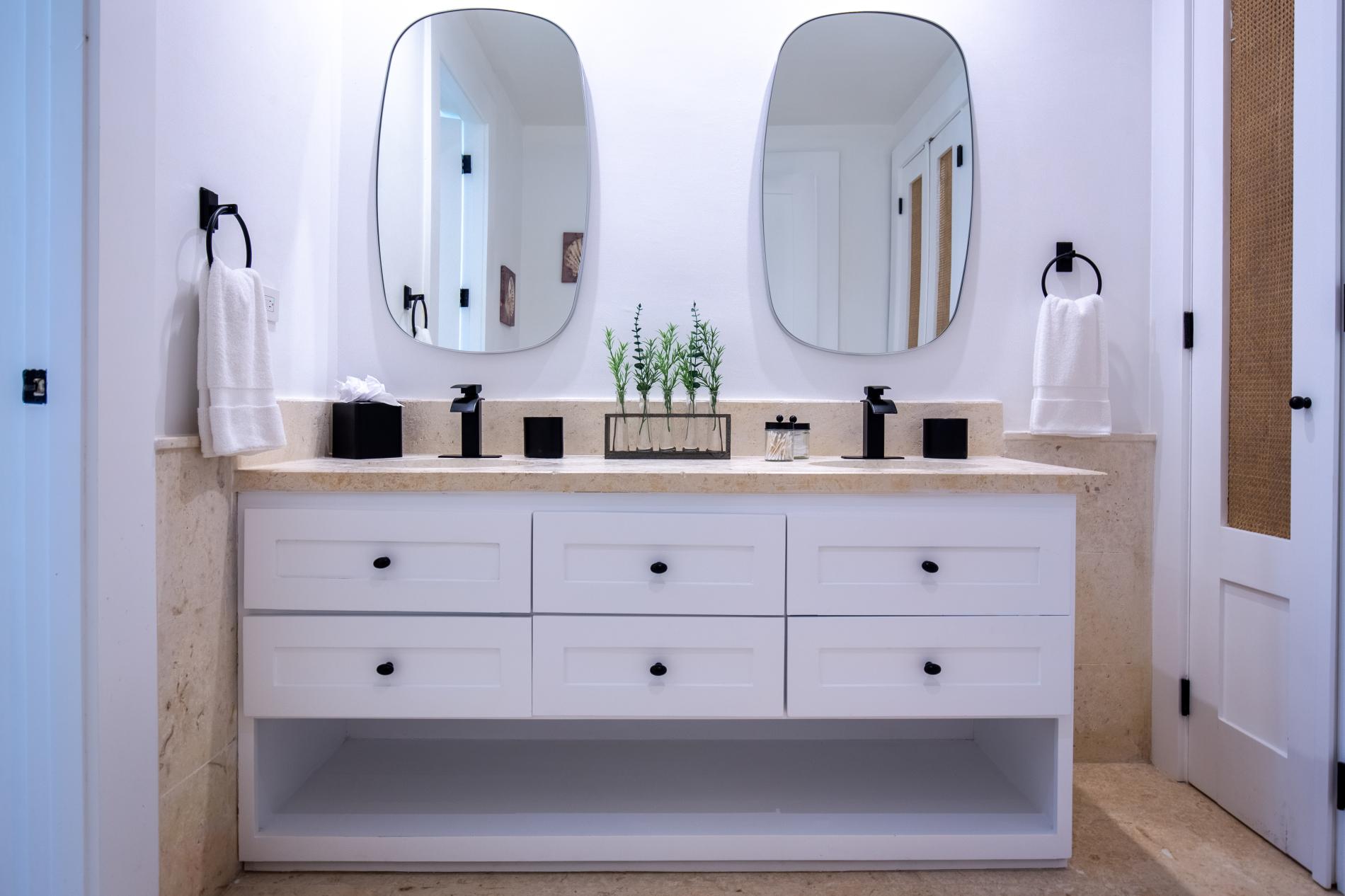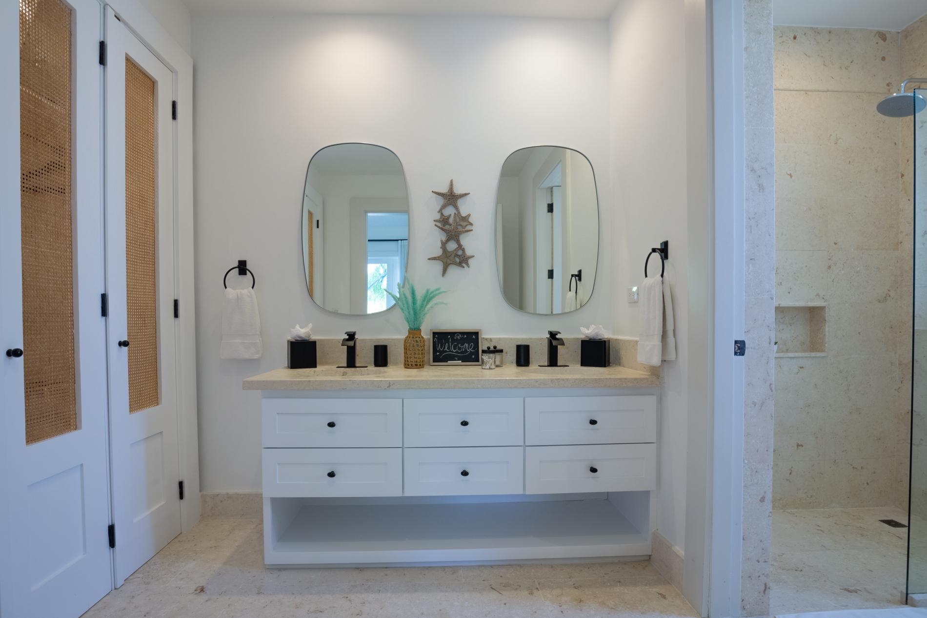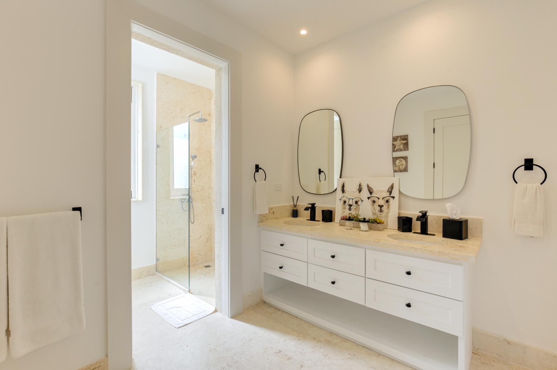 The interior features modern Caribbean architecture with high ceilings, clean lines, and floor-to-ceiling glass that blurs the line between the house and the garden. With cozy lounges you’ll actually use, a dining area that transitions from relaxed breakfasts to festive dinners, and a chef-friendly kitchen that can handle anything from a quick ceviche to a private tasting menu, the open great room serves as the focal point of the day.