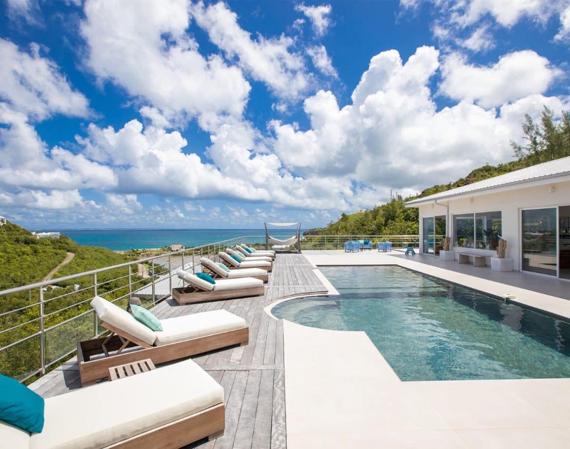 Perched high above the coastline in the prestigious enclave of Terres Basses, St. Martin, Azur Dream St Martin lives up to its name—a magnificent seven-bedroom estate that offers commanding views over lush tropical landscapes and the shimmering Caribbean Sea. Set in the exclusive Morne Rouge area, this elegant villa is a sanctuary of tranquility and refined island luxury, just moments from the golden sands of Baie Rouge.
