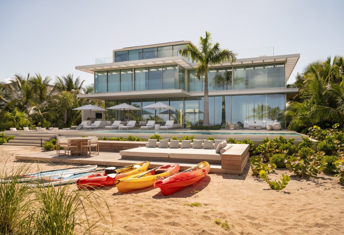 In the exclusive 5 acre Reserve, Villa 1 is the epitome of luxury living just steps to Grace Bay Beach. This 13,860 sqft villa with 9,424 sqft of air conditioned living has 7 bedrooms and 8 bathrooms. The main house has 5 master bedrooms and 2 king bedded suites in a peaceful guest cottage.