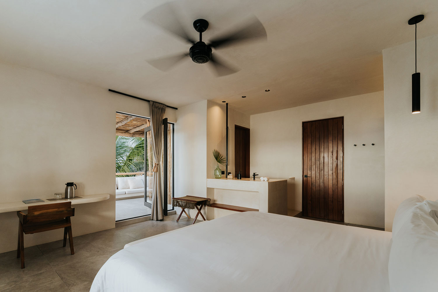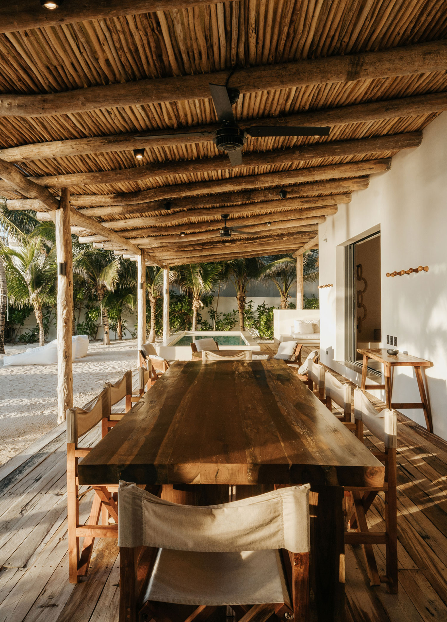 Villa Blanca is an appeal to unwind and fall into the rhythm of the sea. The residence is steps away from the shore and has a well-kept private beach, where you can lounge in the sun beds and, if you’re one to wake up early, enjoy mesmerizing dawns. The plunge pool and alfresco dining table on the palm-thatched terrace complete an outdoor area that will compel you to spend your time outside.