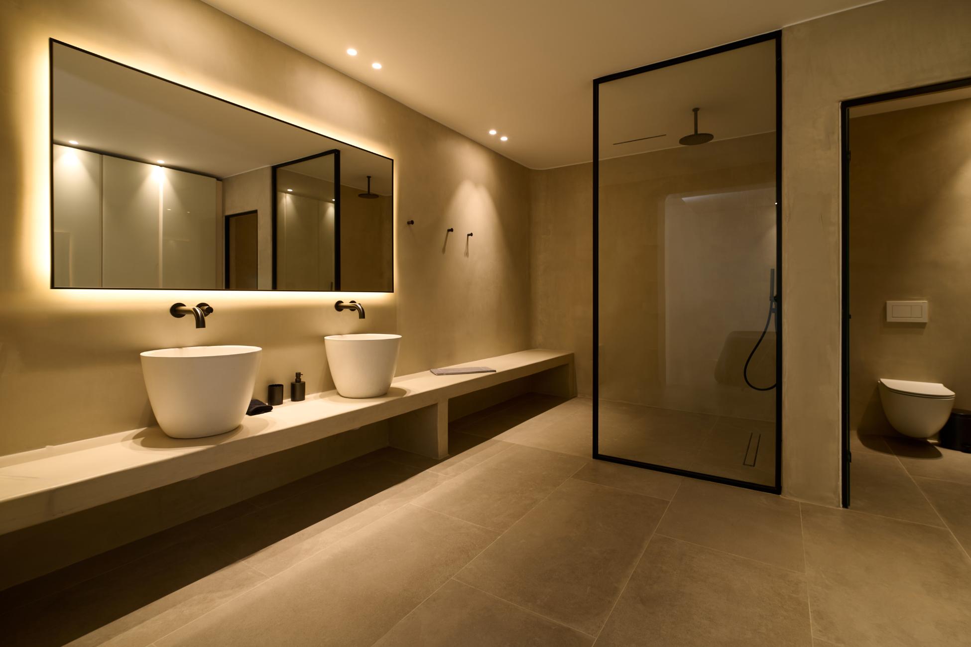 Scattered across this level are five independent guest suites, each with its own entrance, ensuite bathroom, lounge area, mini fridge or minibar, air-conditioning, and constant sea views. Some open directly onto the pool, others onto shaded lounge terraces, offering flexibility and privacy for large groups traveling together.