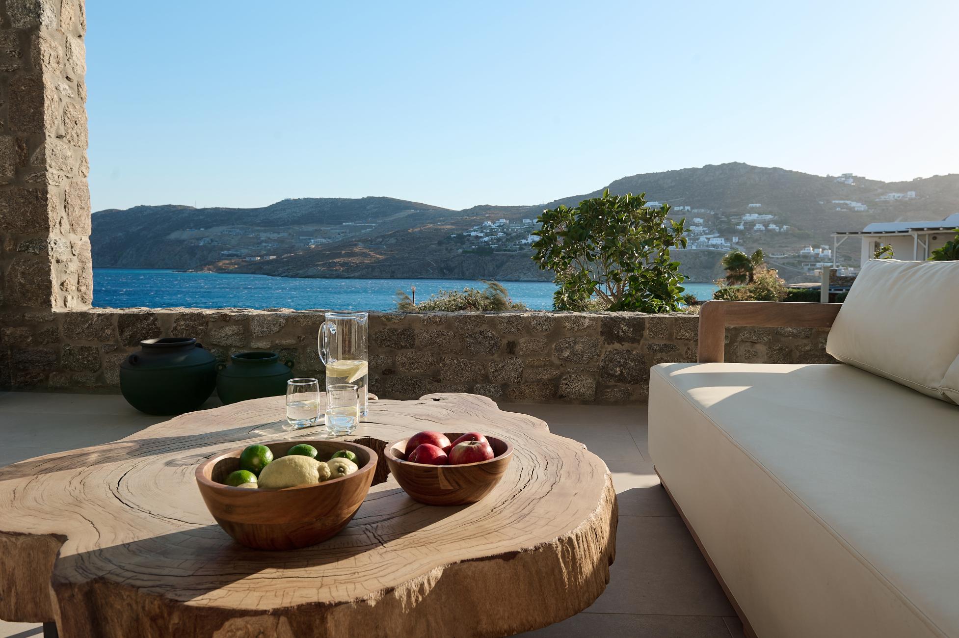What sets Blue Diamond apart is its rare combination of scale, nine independent sea-view suites, full wellness facilities, and sunset-facing infinity pool, making it one of the most complete private estates among Greece Villas and Mykonos Villas.