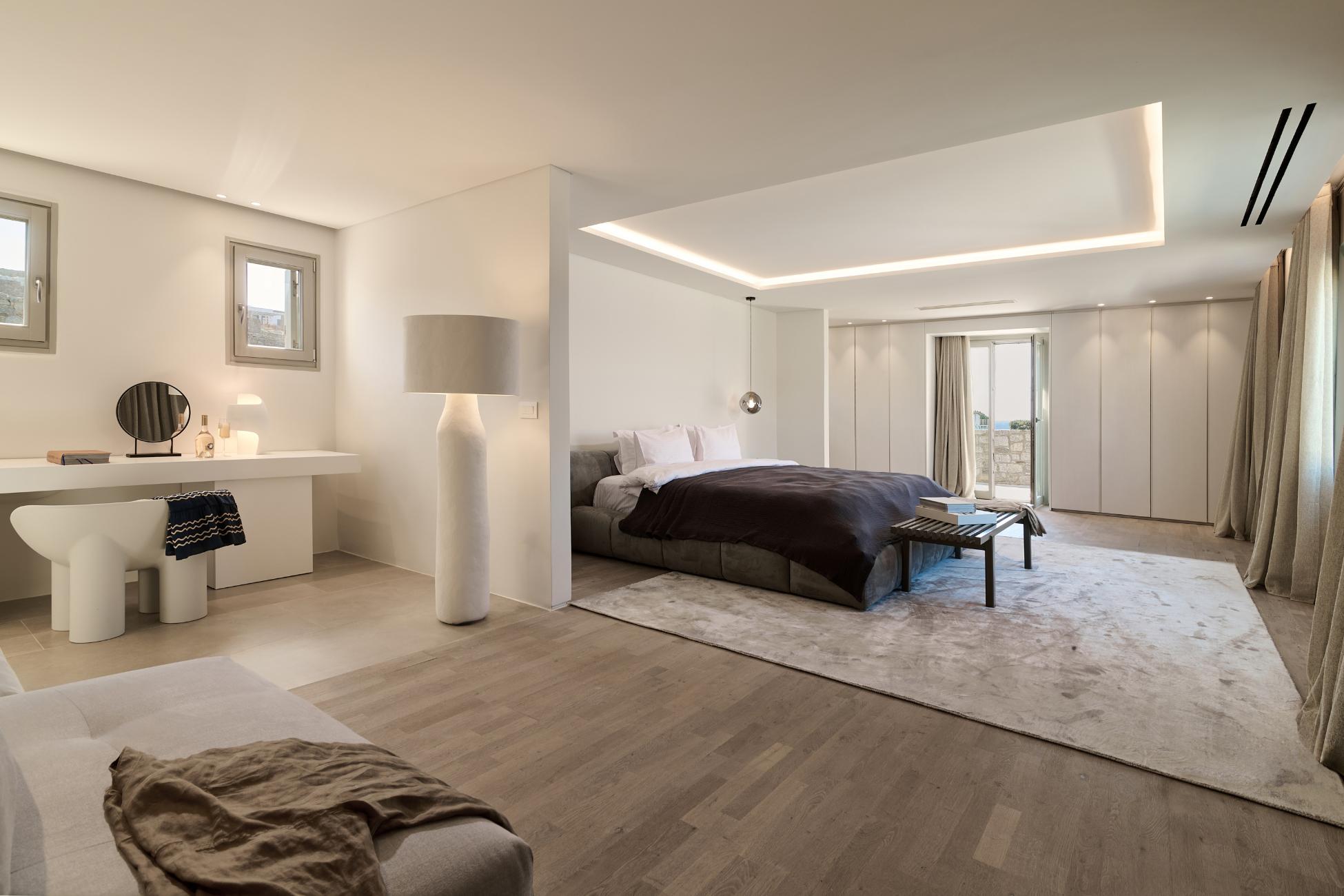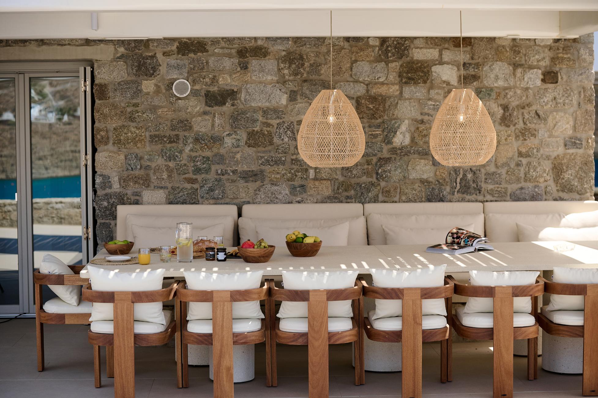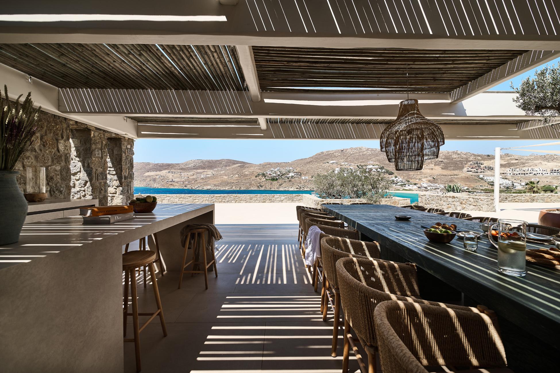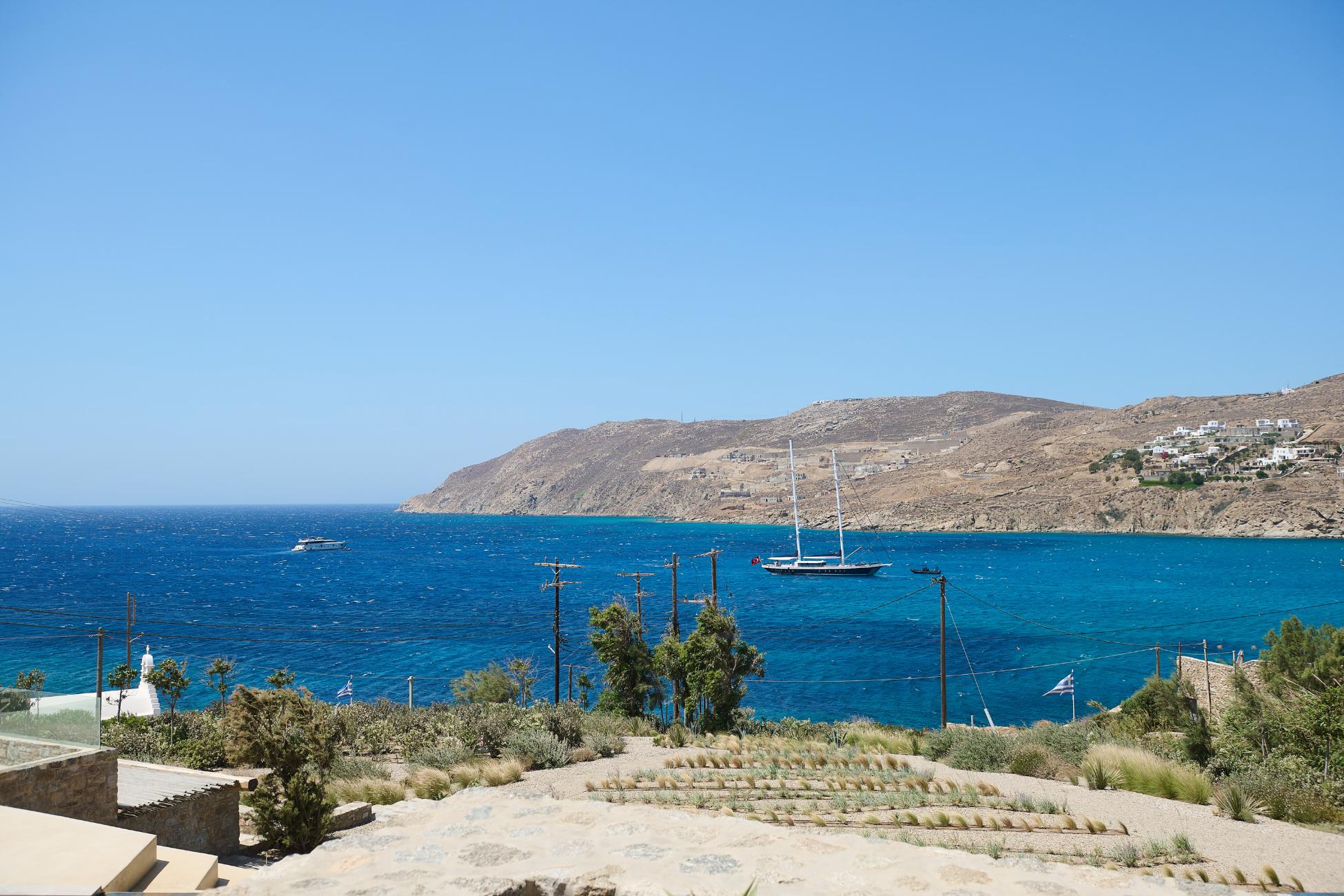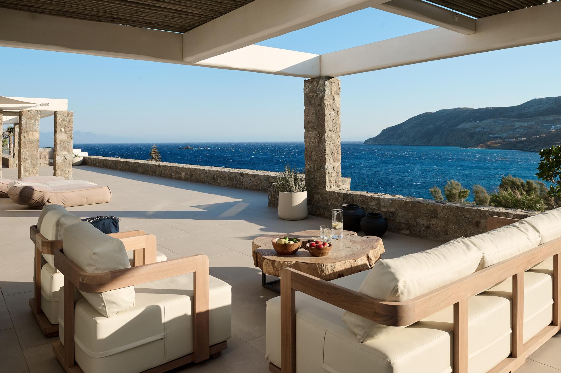 Near the villa, you can spend a day exploring Mykonos Town and its waterfront, charter a private yacht to Delos and the southern beaches, or enjoy sunset dining at nearby seaside restaurants overlooking the Aegean.