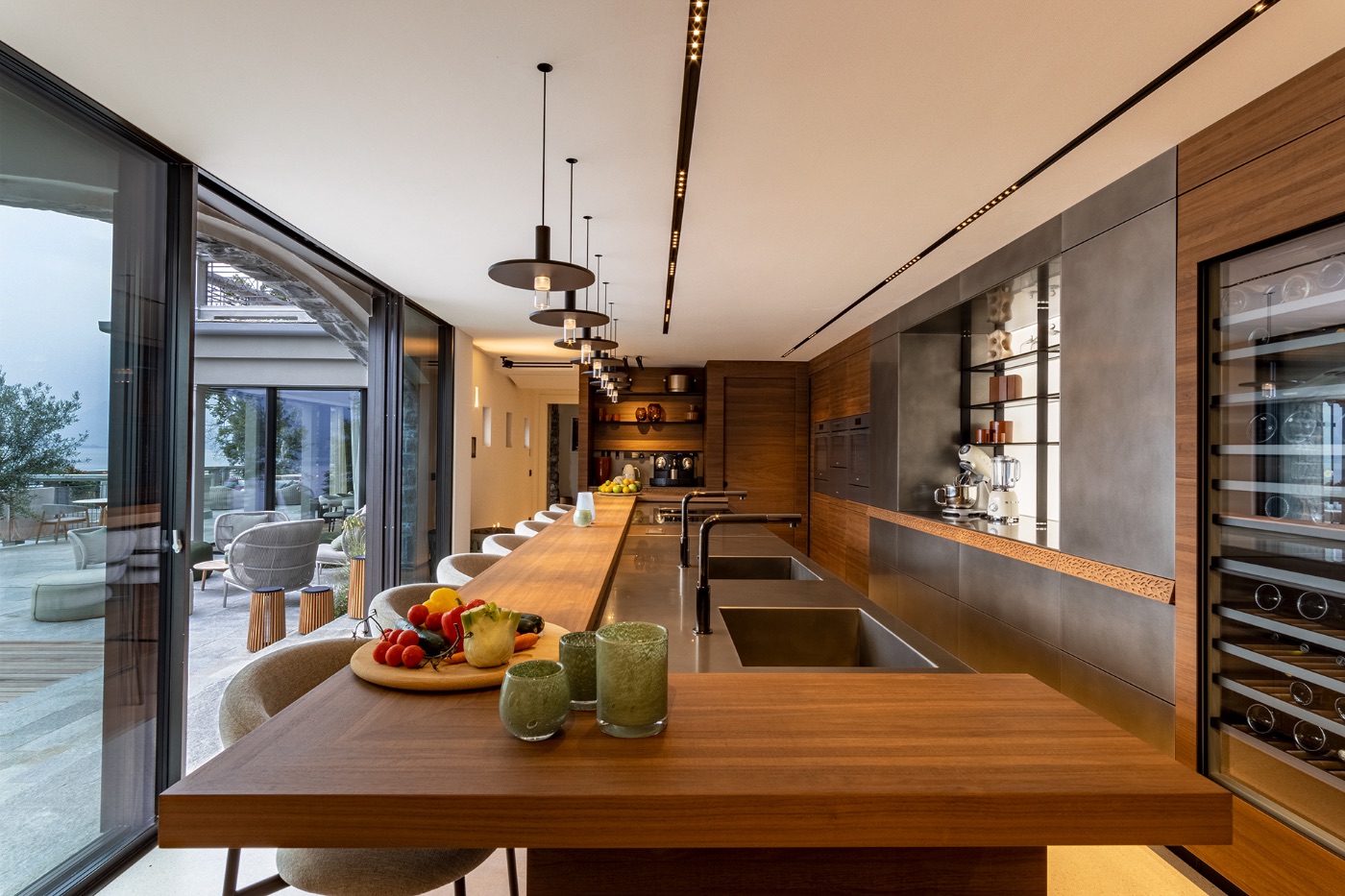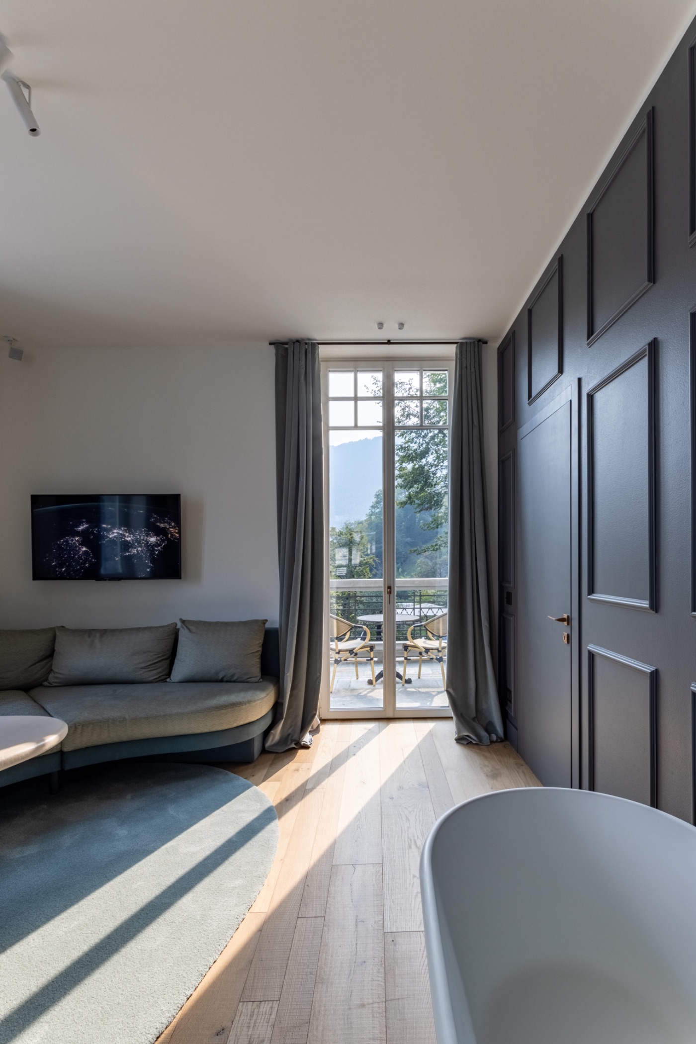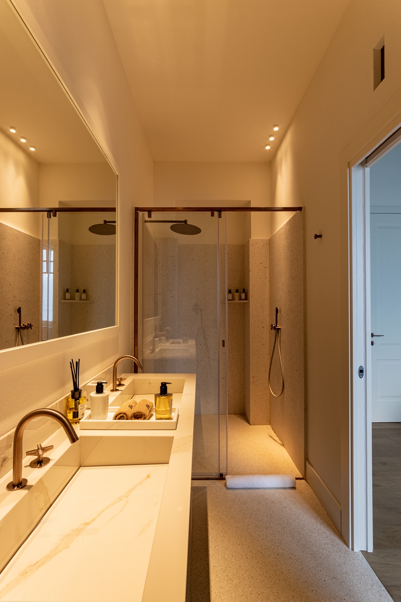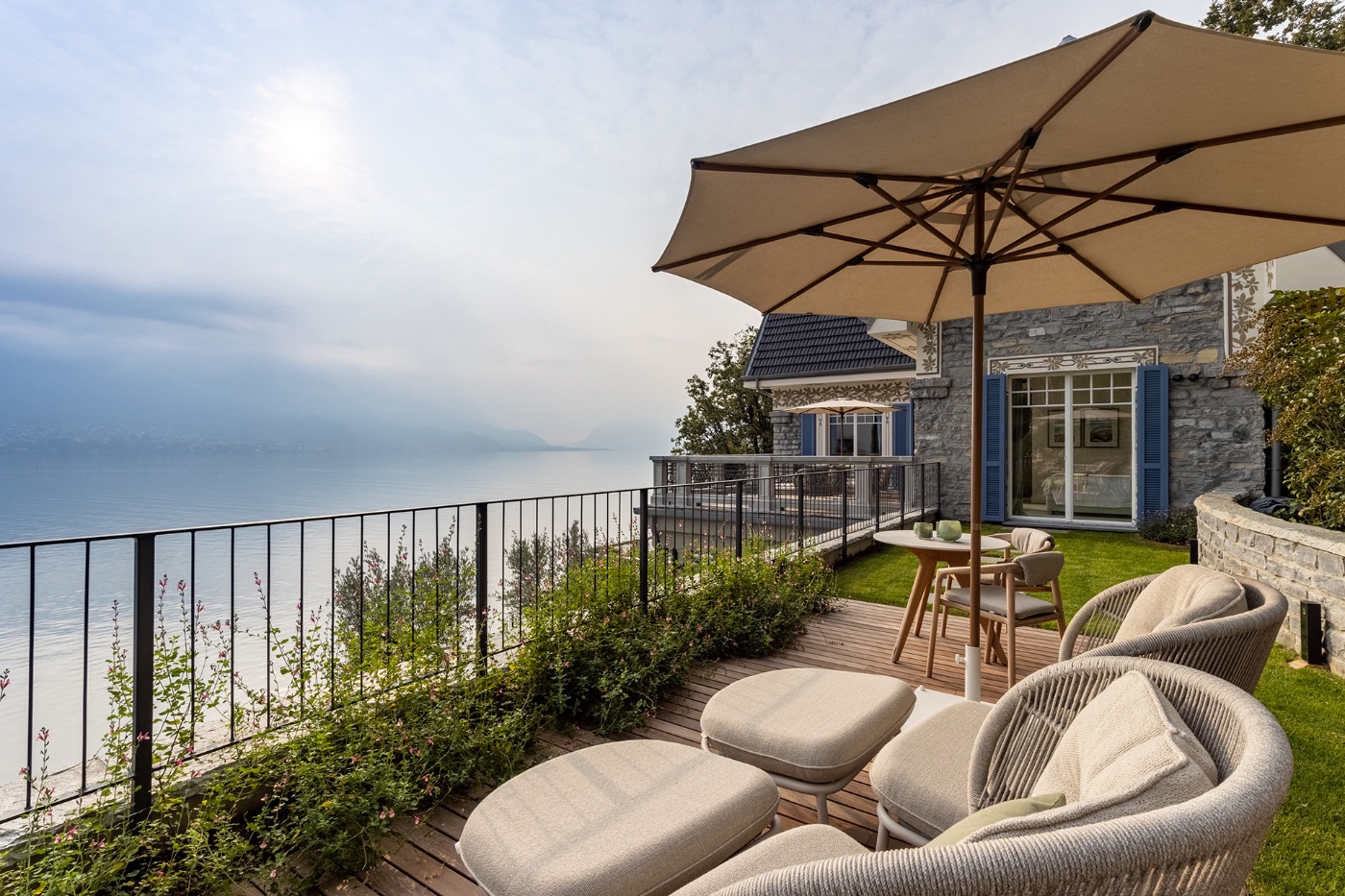Seven beautifully appointed suites are spread across three levels, all with en-suite bathrooms and most opening directly onto terraces. The master suite on the first floor is a highlight, featuring a private living room, indulgent bathtub, outdoor shower and two private balconies with spectacular views over Lake Como.