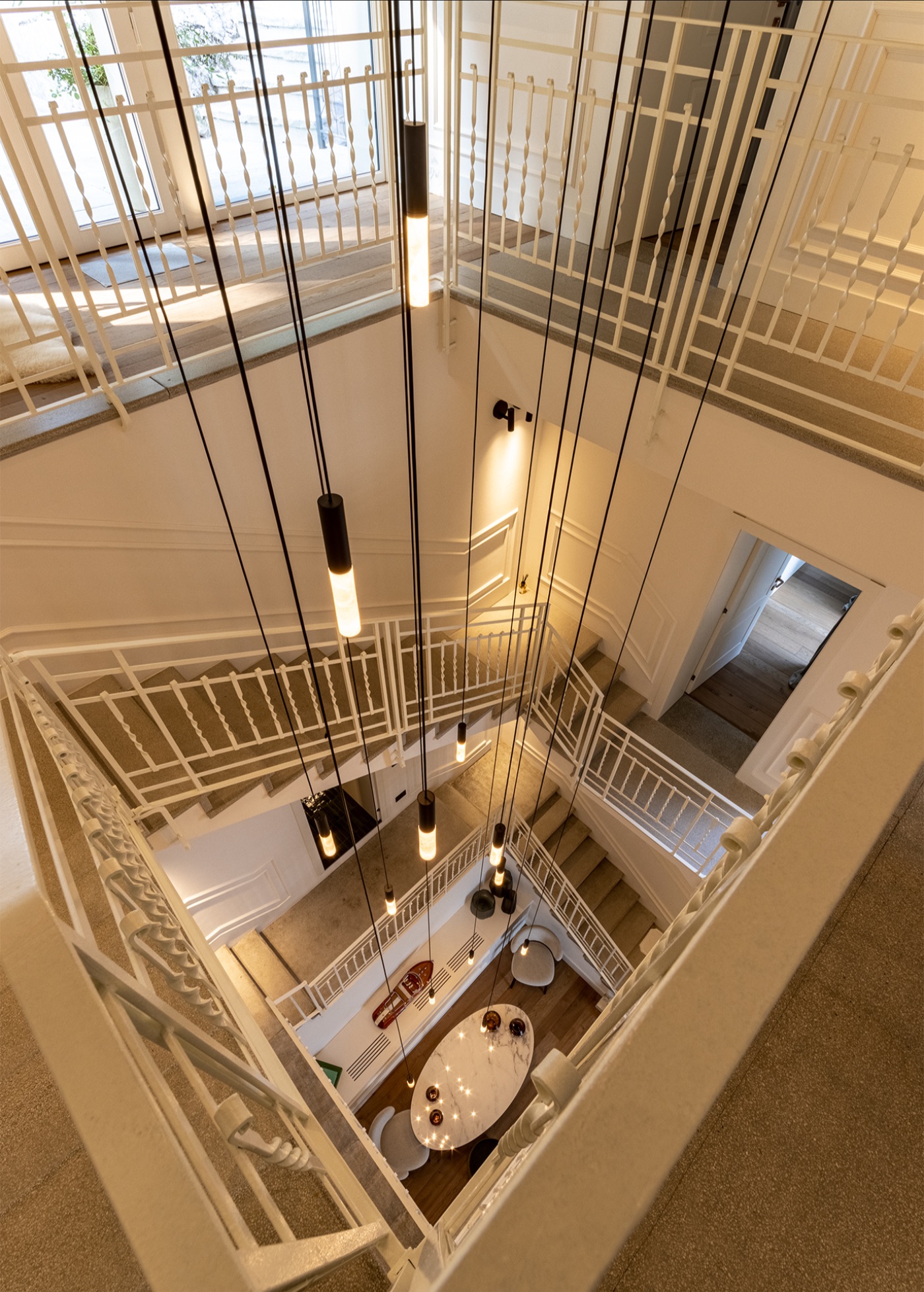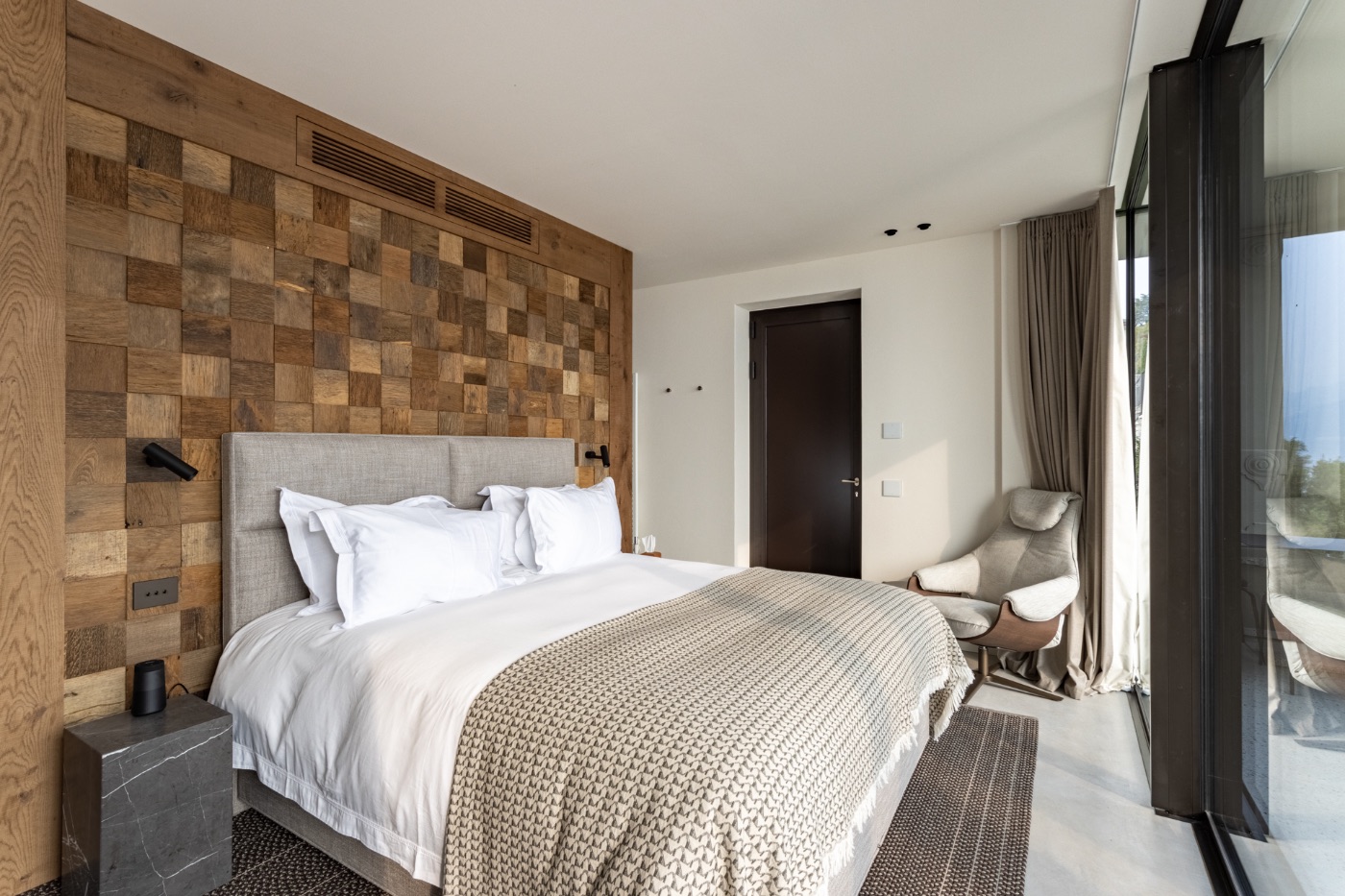 The villa has four levels (level -1 with two suites accessible from the outside, the ground floor, the first floor, and the second floor).