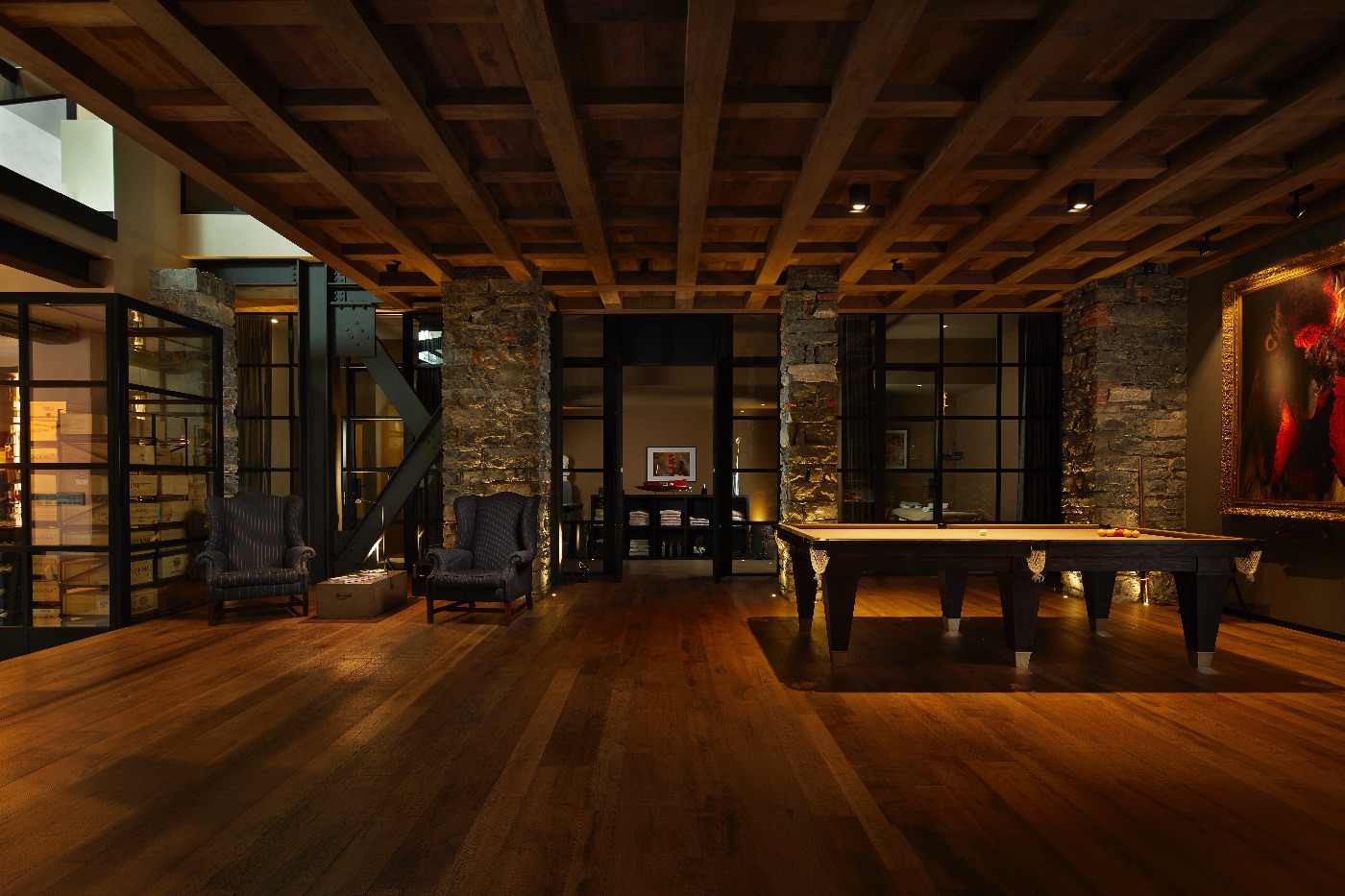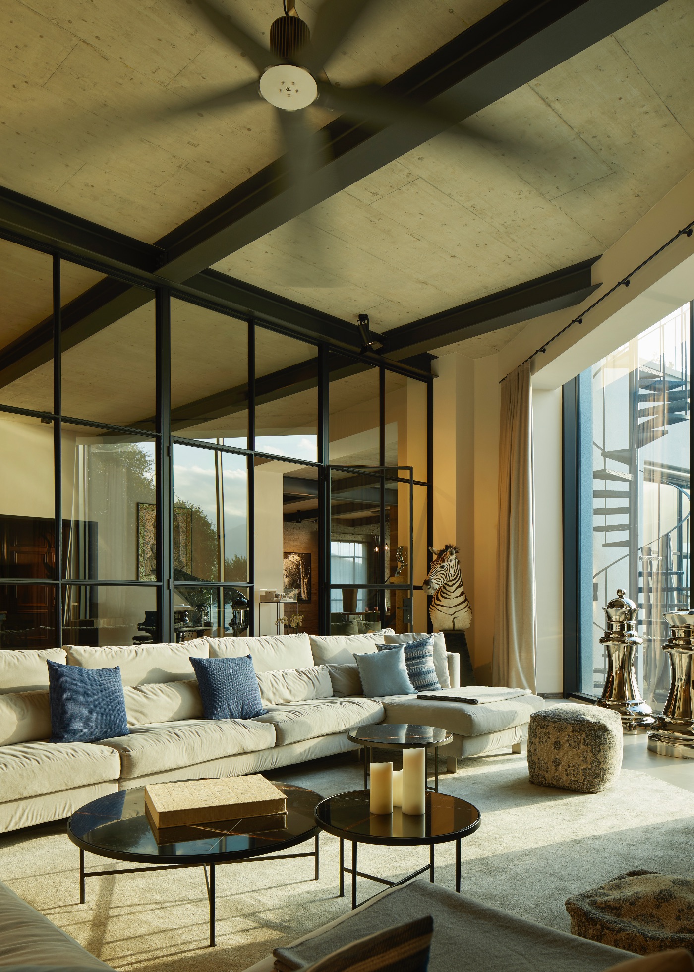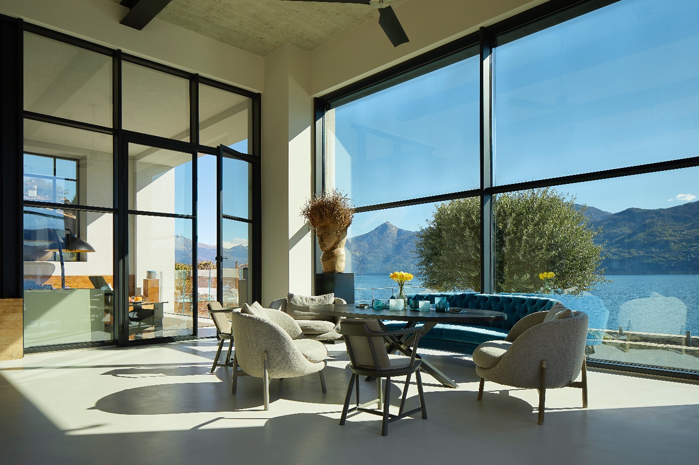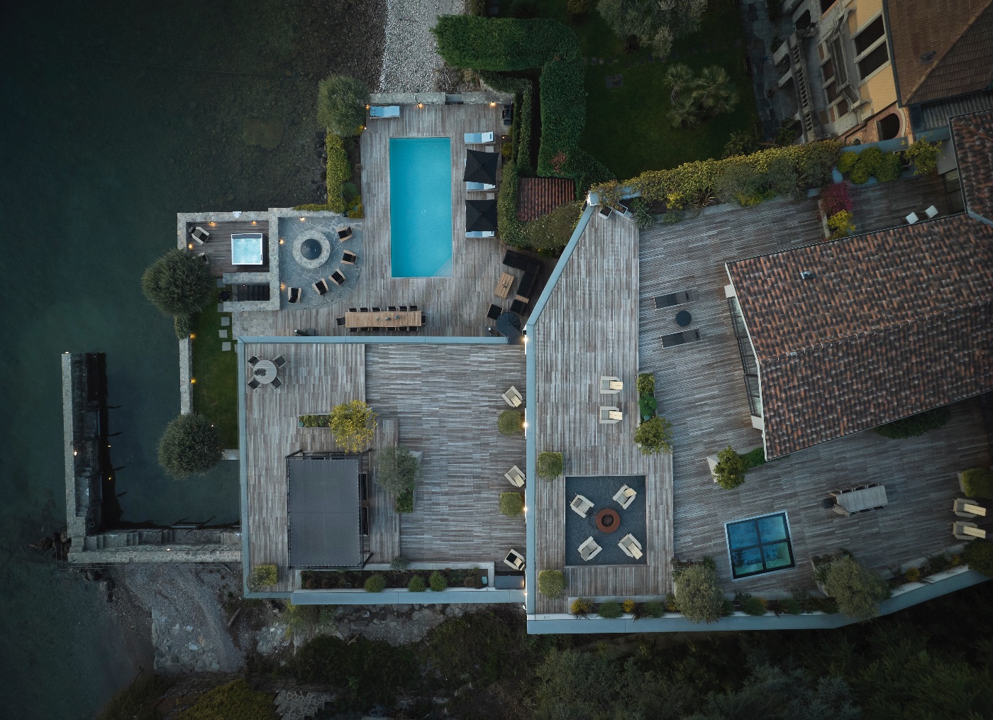 Spread across approximately 1,900 sqm over three levels, the villa is conceived for both relaxation and entertaining. Outdoors, guests enjoy a heated lakeside swimming pool, a generous decked terrace with multiple al fresco dining and lounging areas, a cosy fire pit and a private dock – ideal for arriving in style by boat or exploring the lake on private cruises. Every space is oriented towards the water, framing uninterrupted views of Lake Como and its dramatic mountain backdrop.