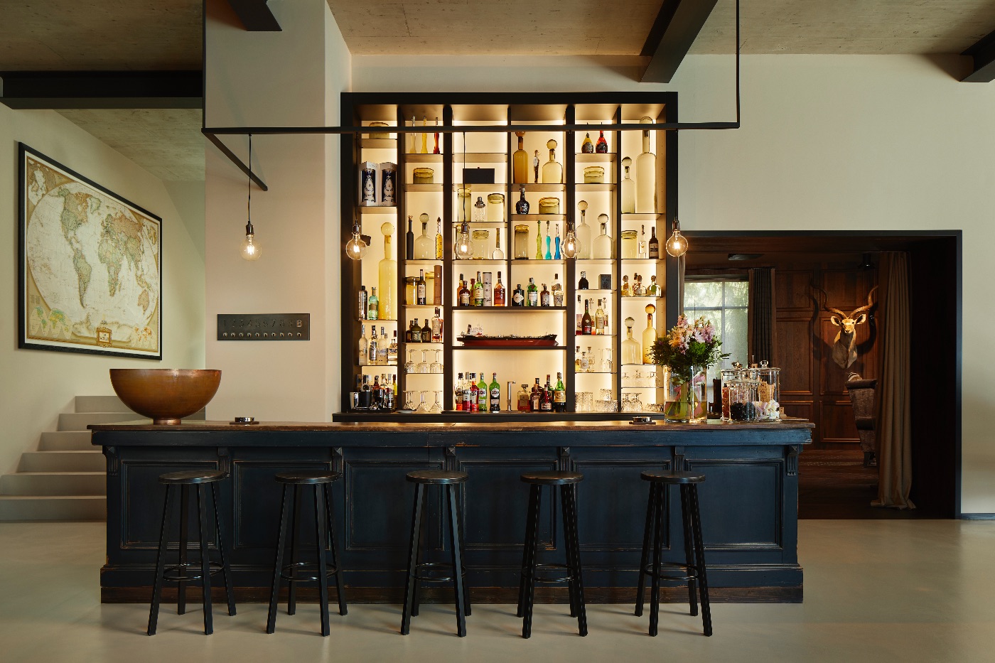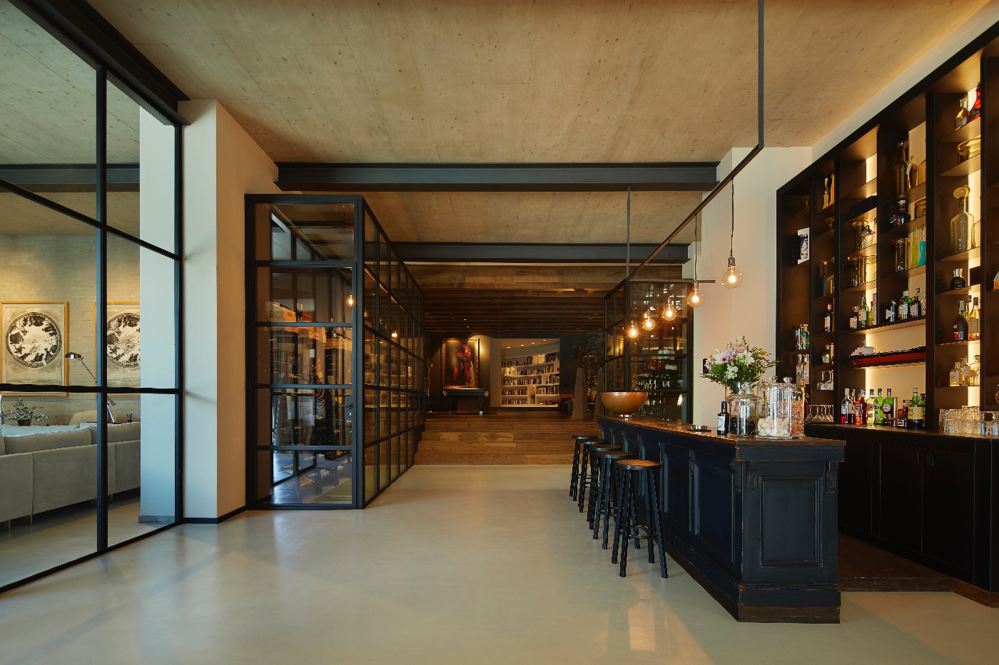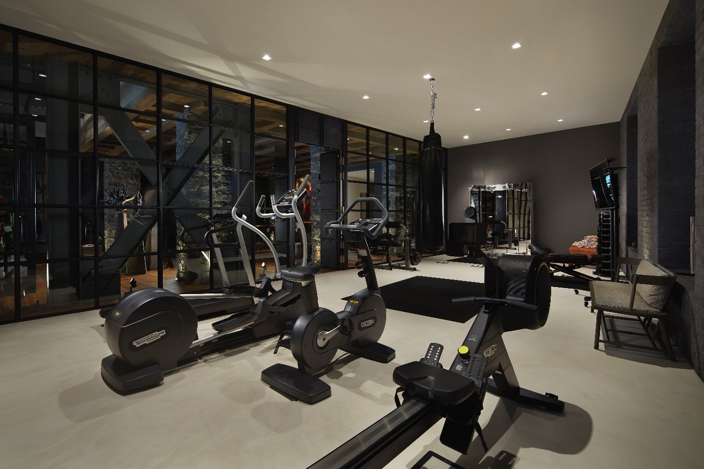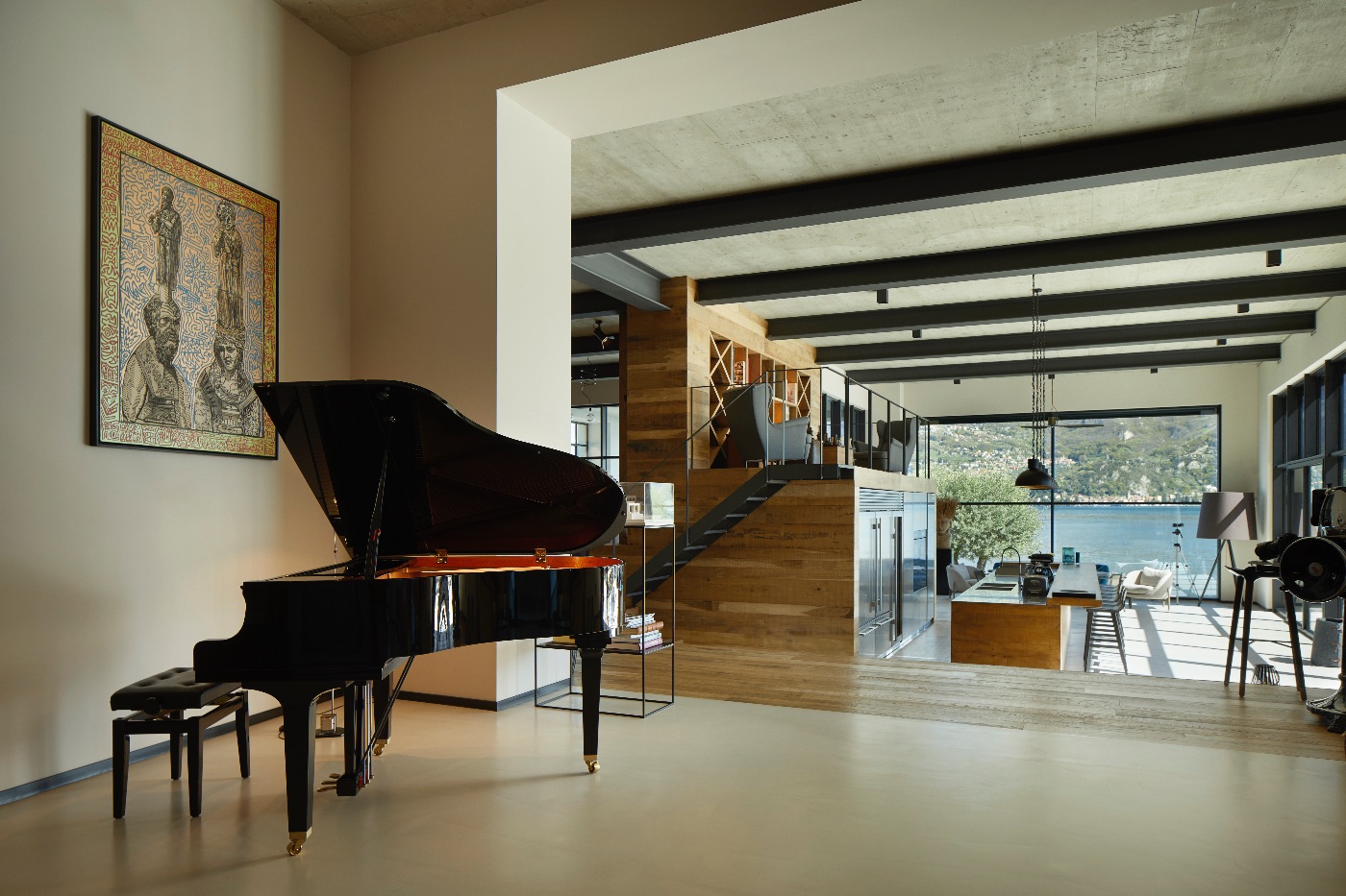 Inside, the sense of luxury continues with light-filled living and dining areas opening onto the lake, a sleek fully equipped kitchen, an elegant library, a wine cellar, a modern gym and a dedicated office space. The private spa area invites guests to unwind after days on the water or exploring the surrounding villages.