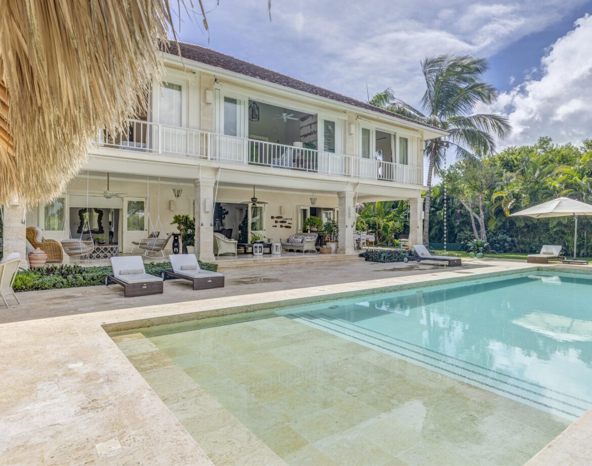 Private transfers from PUJ drop you off at the door, and a concierge has already charted the first little pleasures. You arrive smiling, with a refreshing drink and a thoughtful basket of fruit. A home that lives both indoors and out, Buena Vida is situated along P.B. Dye’s first inland course. It features a high-ceilinged foyer of stone and light, a great room that opens wide to a courtyard and gardens, and a palapa terrace where the breeze does the majority of the work. This address is immediately recognizable among Punta Cana villas—sophisticated, laid-back, and in tune with everyday life while on vacation.