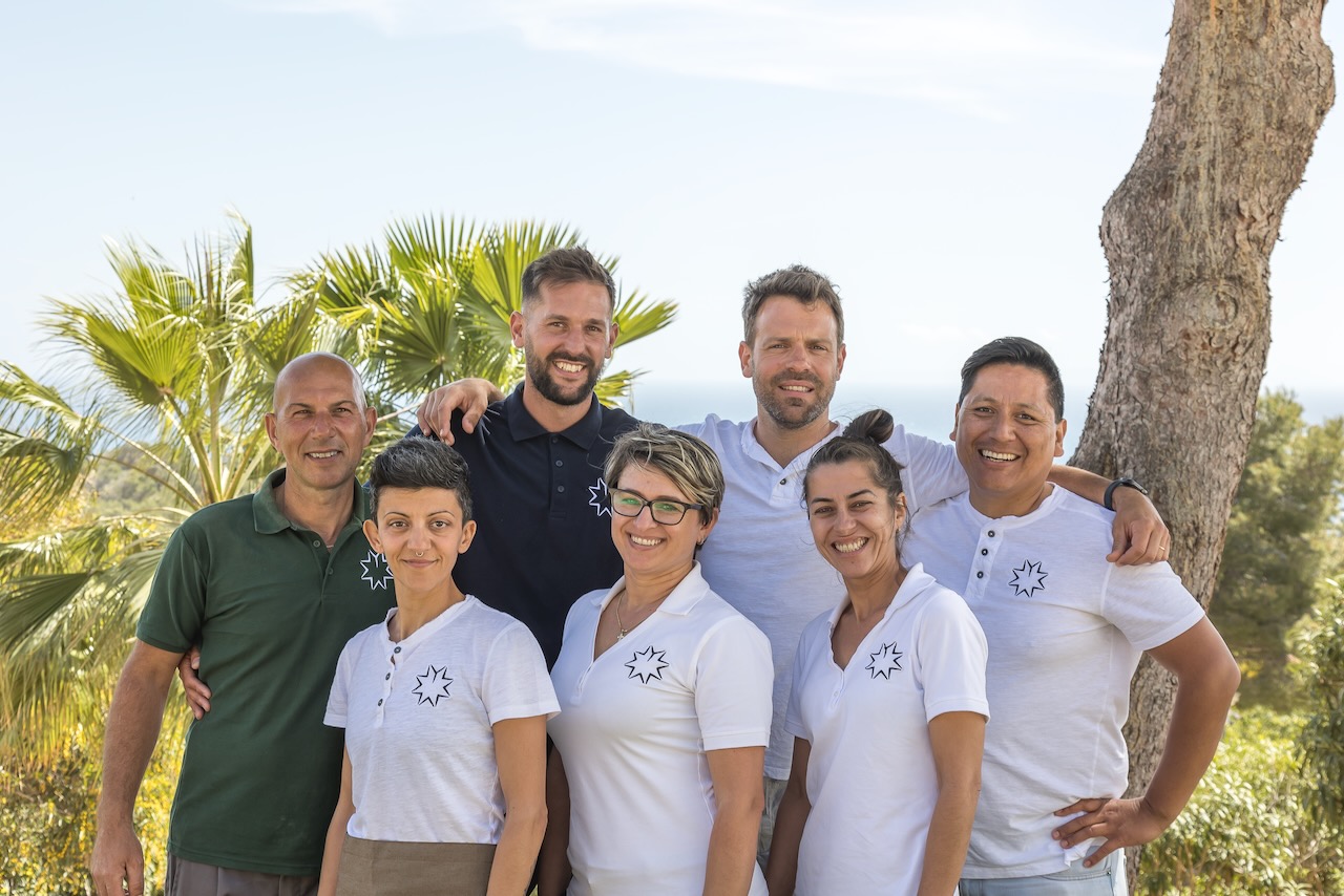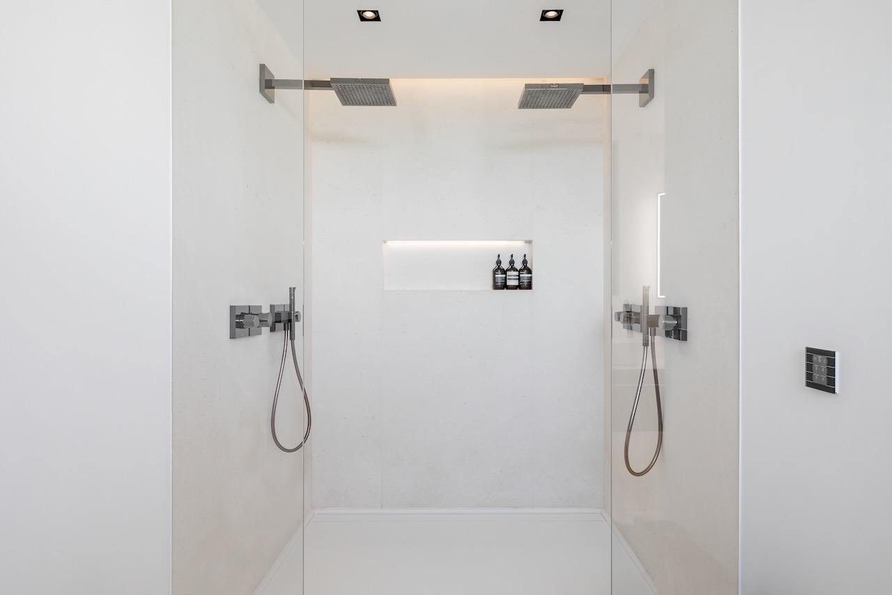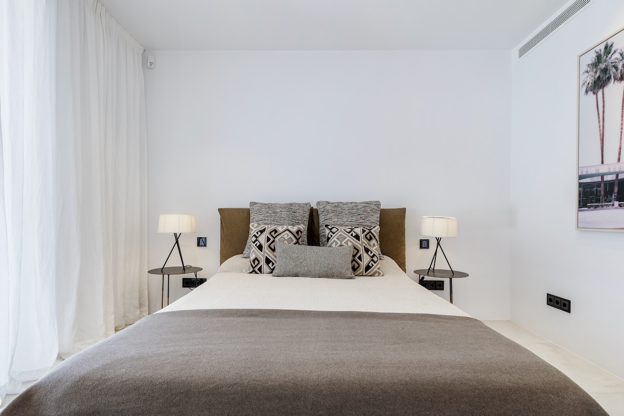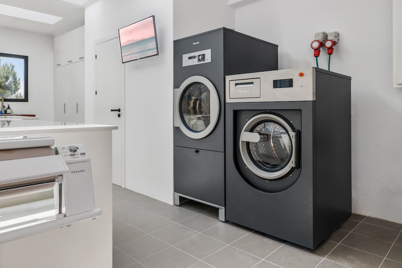 The minimalist elegance continues through the six delightful double bedrooms, softened by beautiful art and stylish monochrome soft furnishings. The master suite on the upper floor enjoys access to a private terrace and a freestanding bath from where you can enjoy the beautiful sea views as you soak.