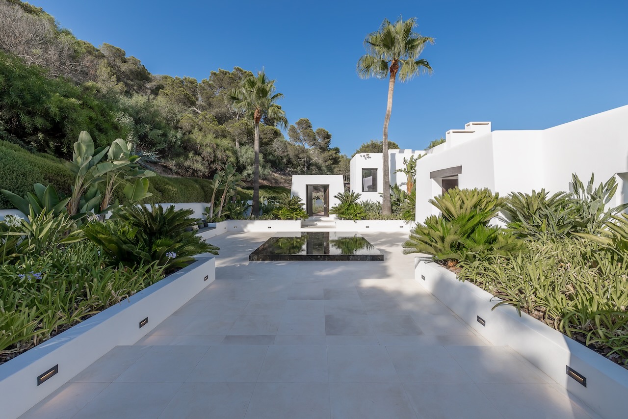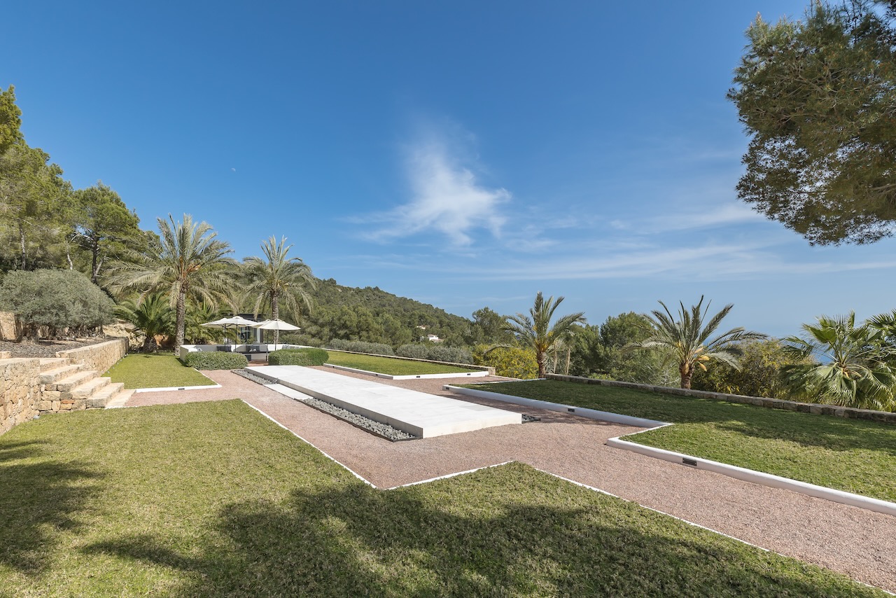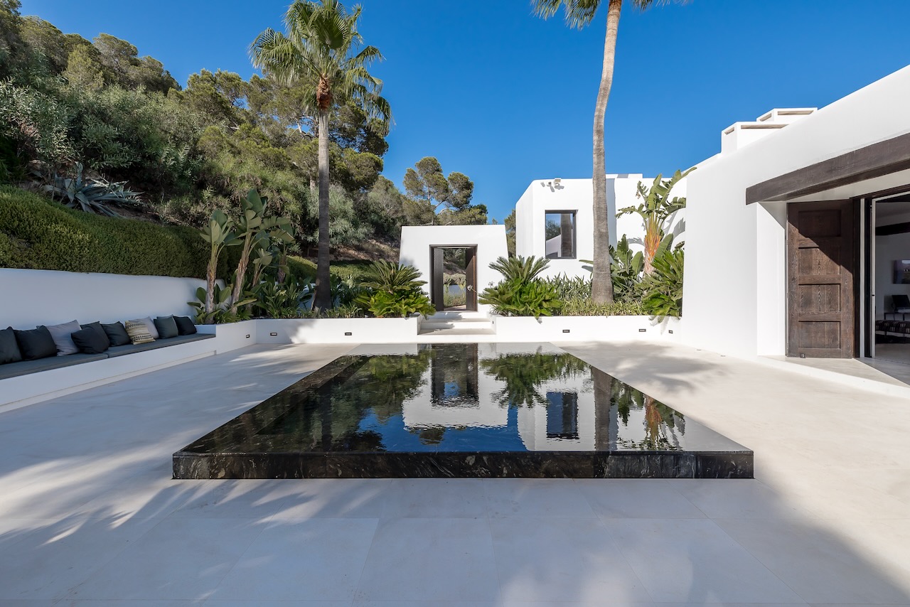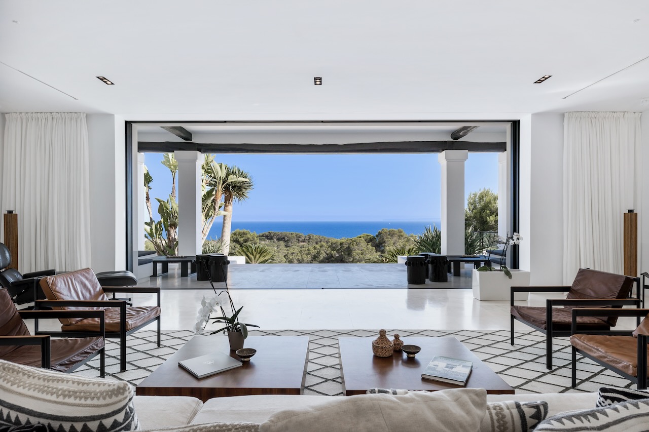 In the prestigious neighbourhood of Cap Martinet in Ibiza, the outstanding contemporary Villa Can Nemo hides amongst tree-clad hills overlooking the sea. The views to Dalt Vila and the clear waters off the island from resort-worthy living areas, both inside and out, with the blue Balearic waters shimmering in the distance, are breath-taking.