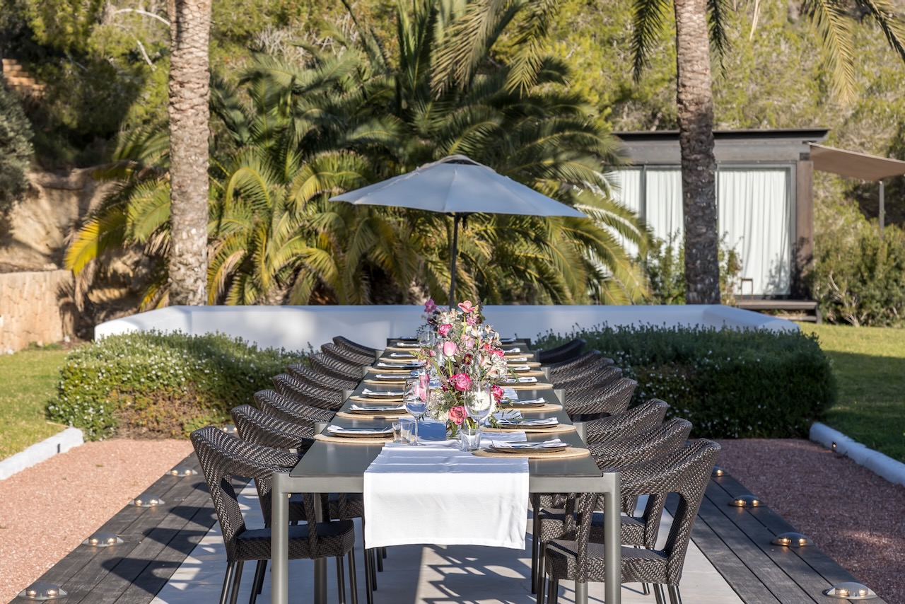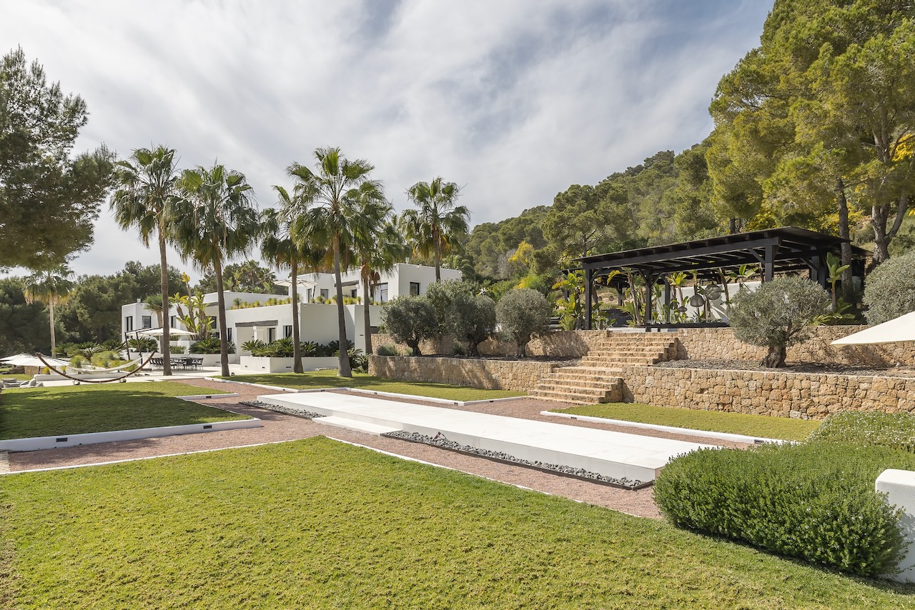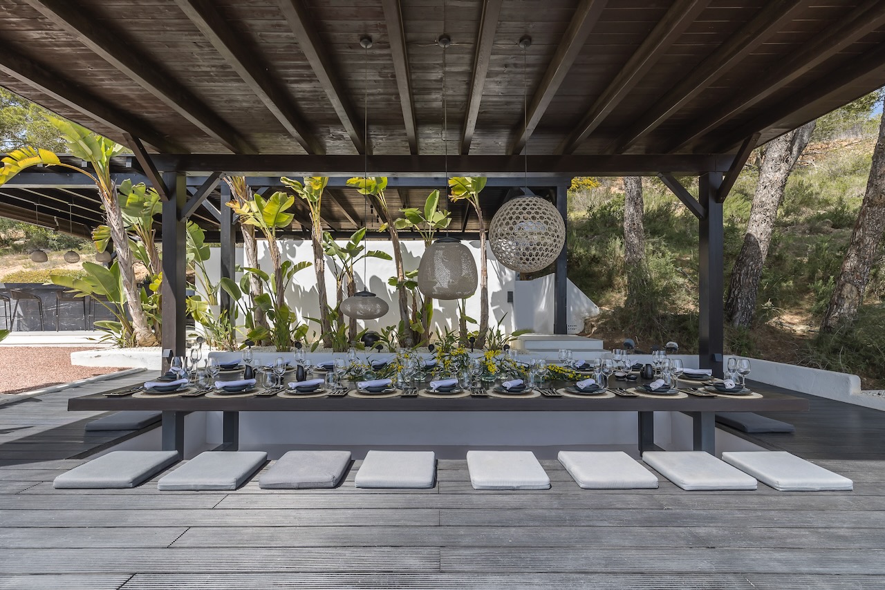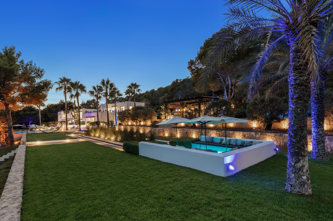 Relax after sunset or entertain outdoors the sound system, the multi-colored lights and an outdoor kitchen with a charcoal barbecue make it the best place where to end a beautiful day in Ibiza.