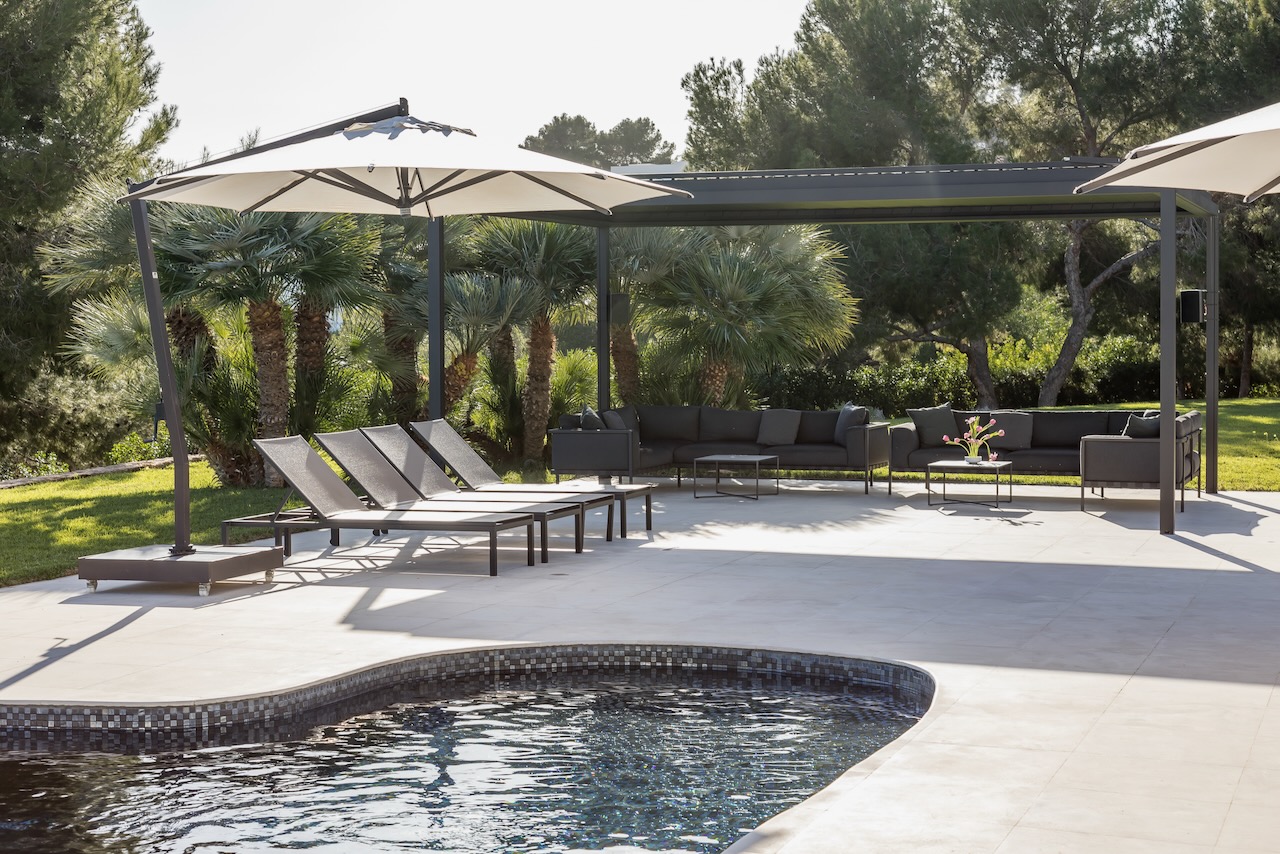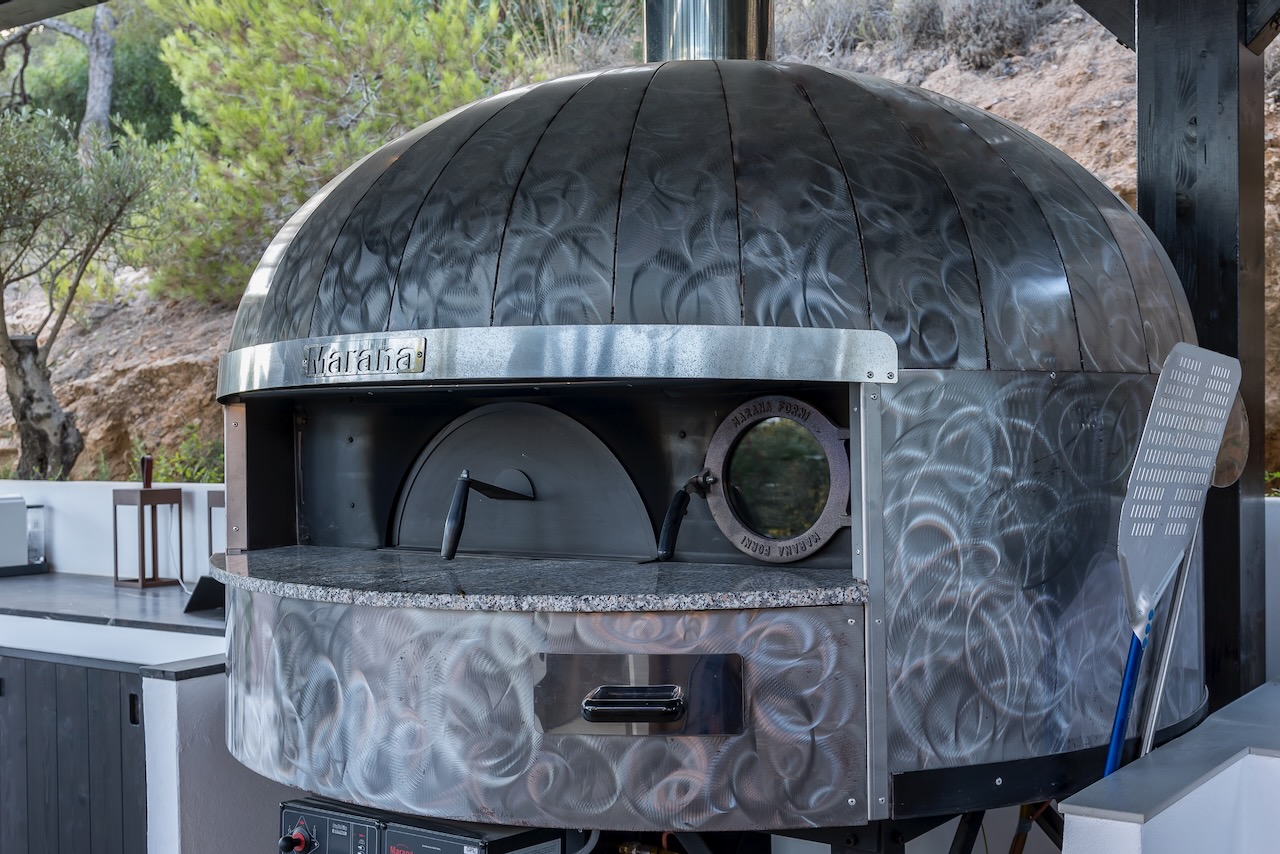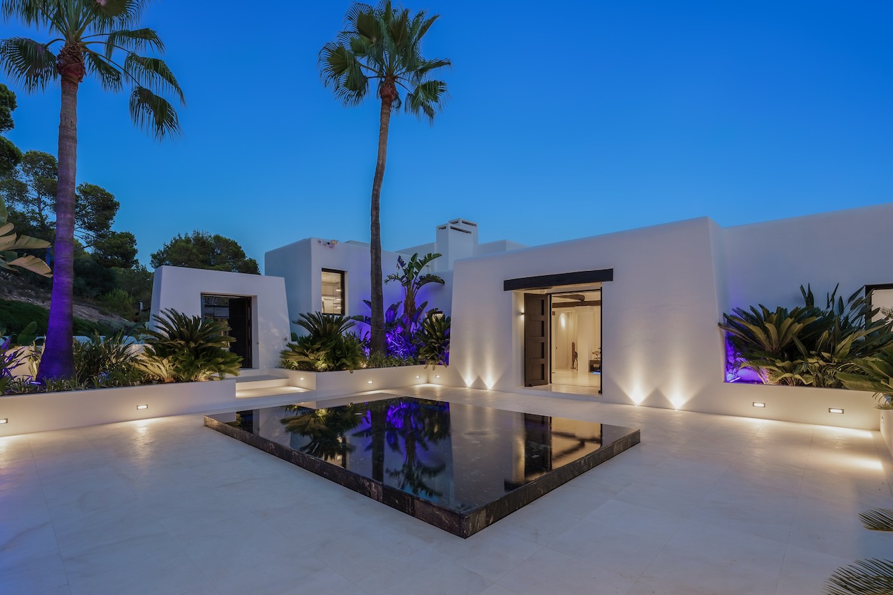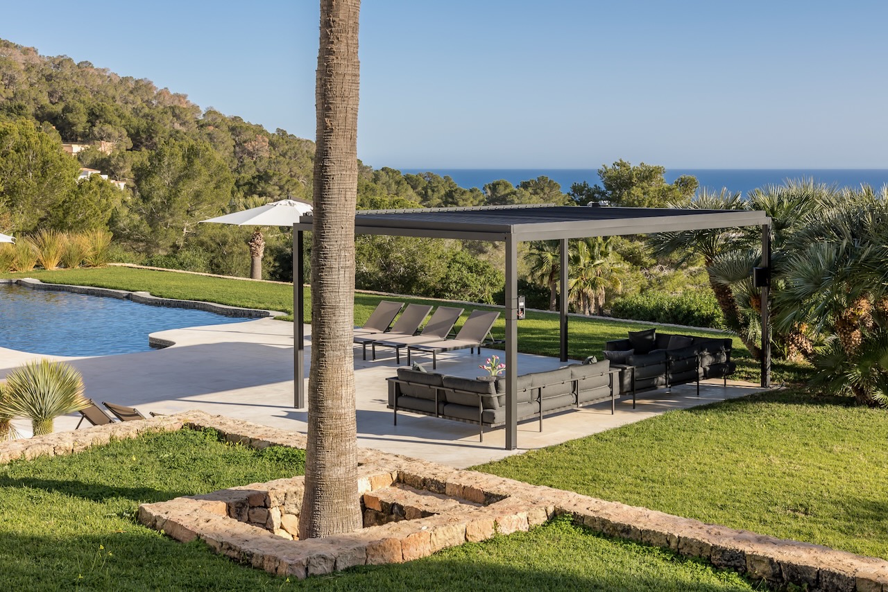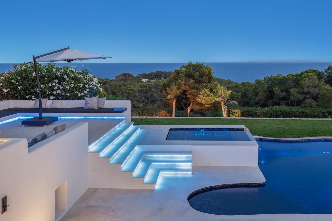 Relax after sunset or entertain outdoors the sound system, the multi-colored lights and an outdoor kitchen with a charcoal barbecue make it the best place where to end a beautiful day in Ibiza.
