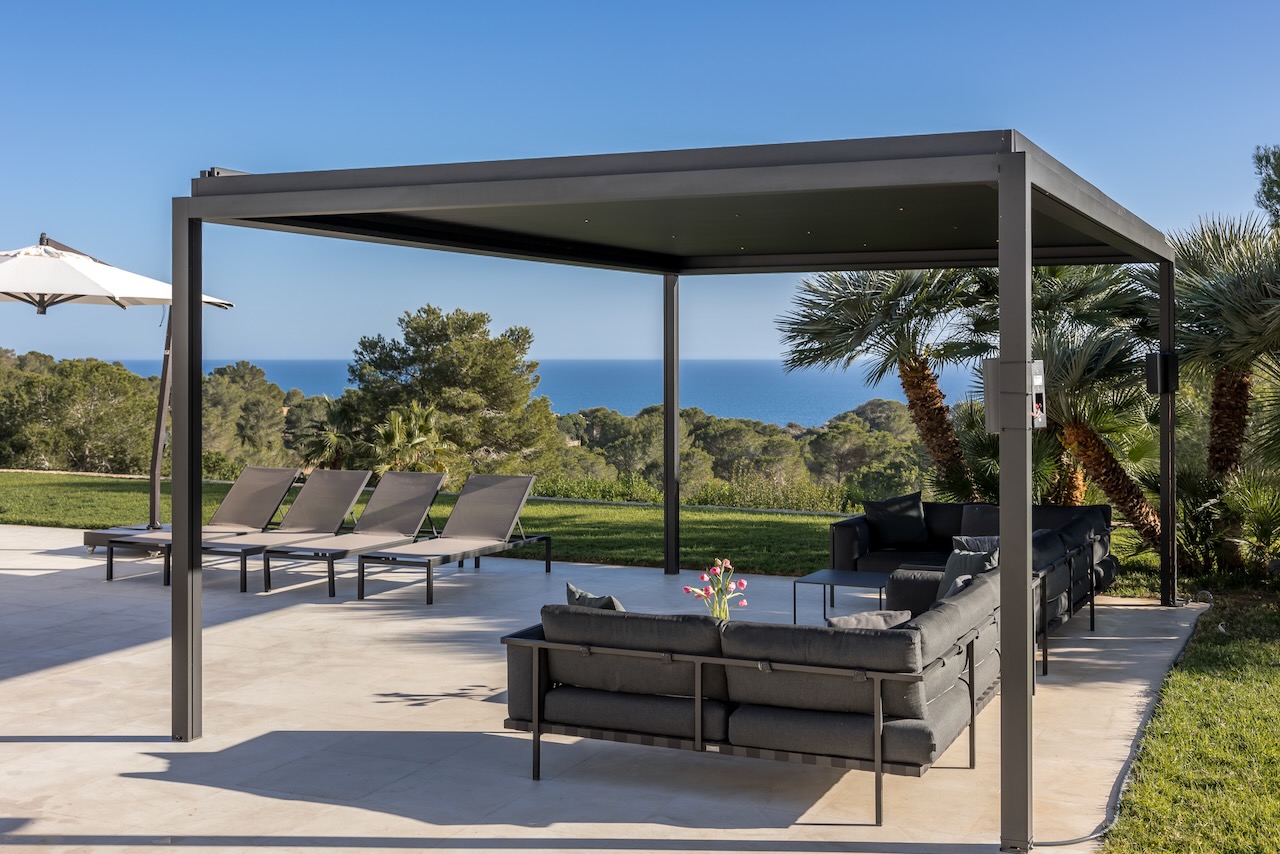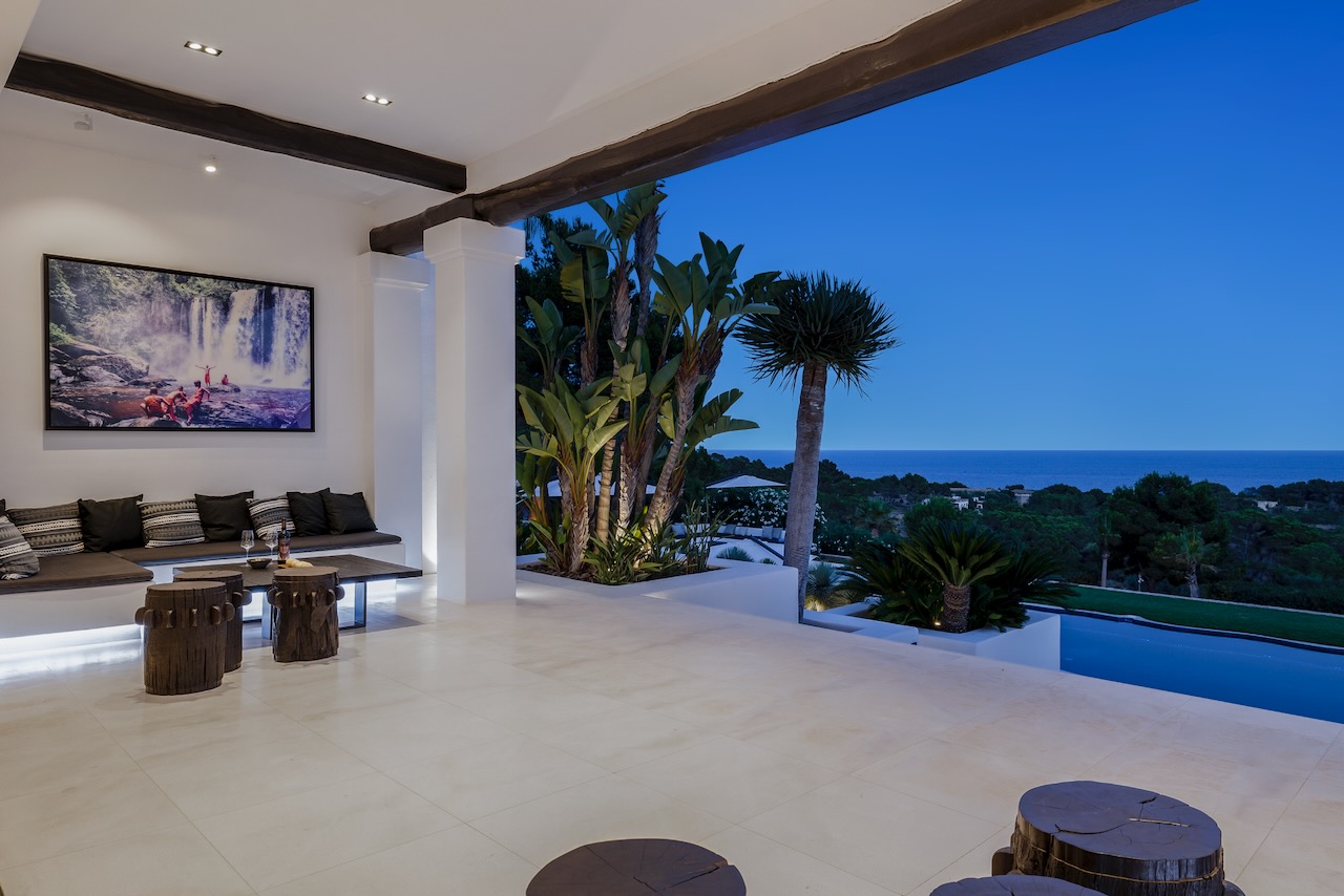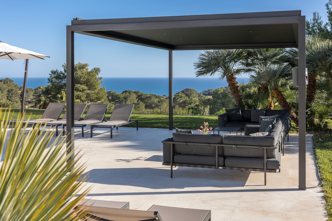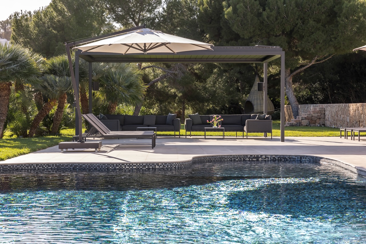 Relax after sunset or entertain outdoors the sound system, the multi-colored lights and an outdoor kitchen with a charcoal barbecue make it the best place where to end a beautiful day in Ibiza.
