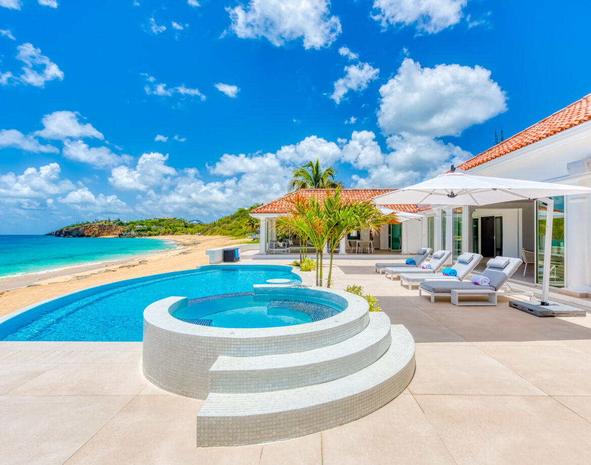 This contemporary styled delivers breathtaking views of the shimmering blue sea of the Caribbean and the stunning tropical island of Anguilla, making this the perfect honeymoon retreat or elegant couple’s getaway.