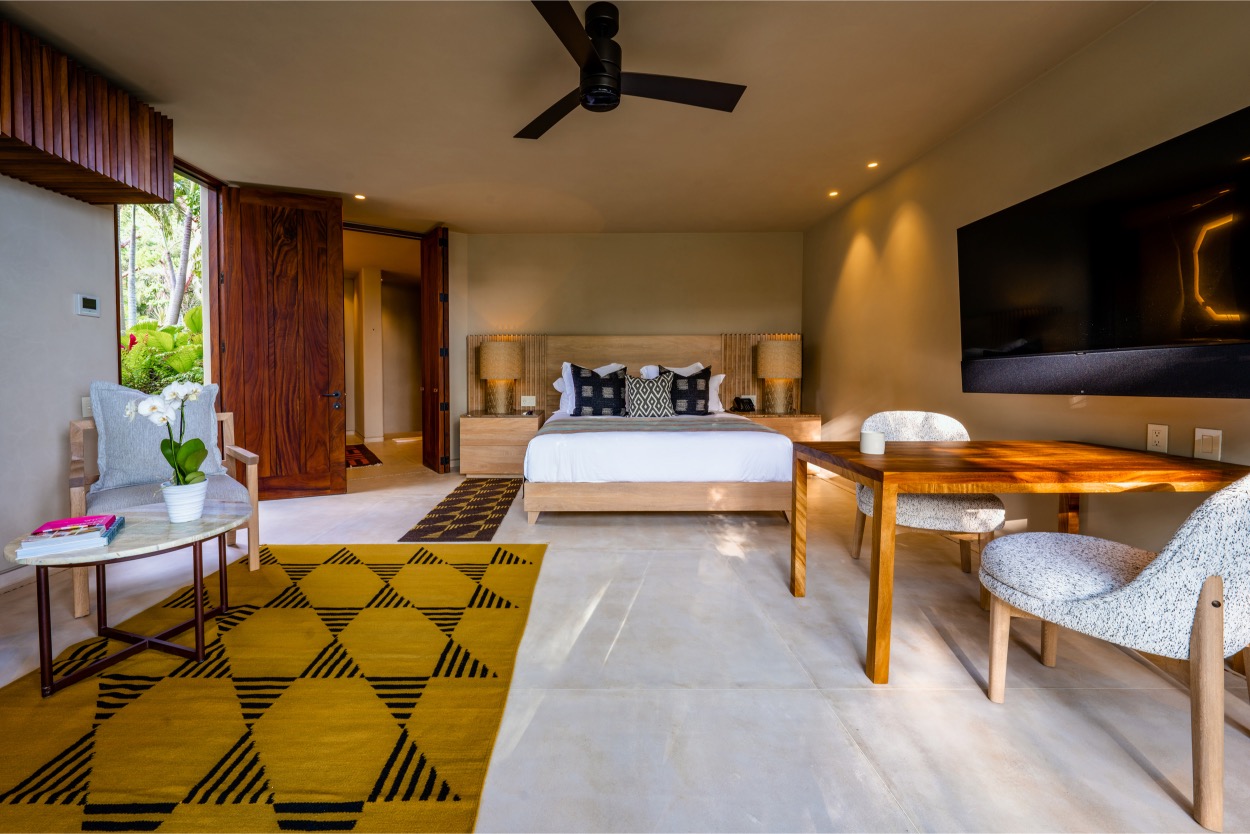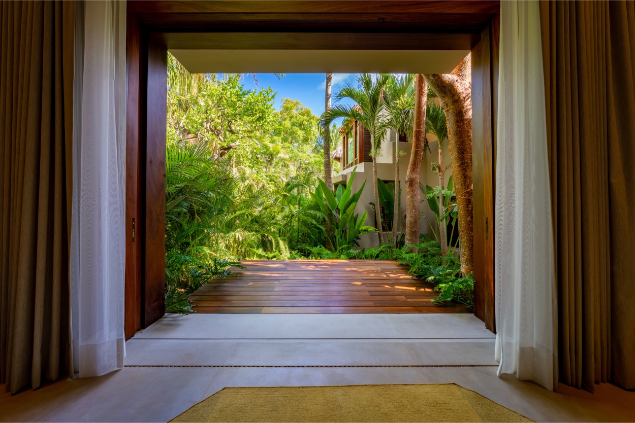 Designed by Manolo Mestre with interiors by Joaquín Homs, Casa Akama is a modern, open-air masterpiece where jungle greens meet the Bay of Banderas blues. Set across ~25,000 sq ft, the estate flows from manicured lawns straight to a pristine, swimmable beach—your launchpad for snorkeling, paddle sessions, and long, lazy shoreline walks.