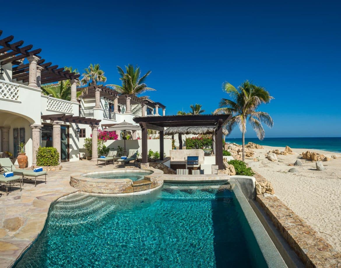 You still have professional on-site management, round-the-clock security, and the comforts that make a stay feel effortless, but it feels completely different from the busier hotel area. Casa Cielo is unique among Los Cabos Villas in that it provides genuine, walk-out beachfront living on a serene shore while also connecting you to a full-service gym and beach club just a short distance from town.