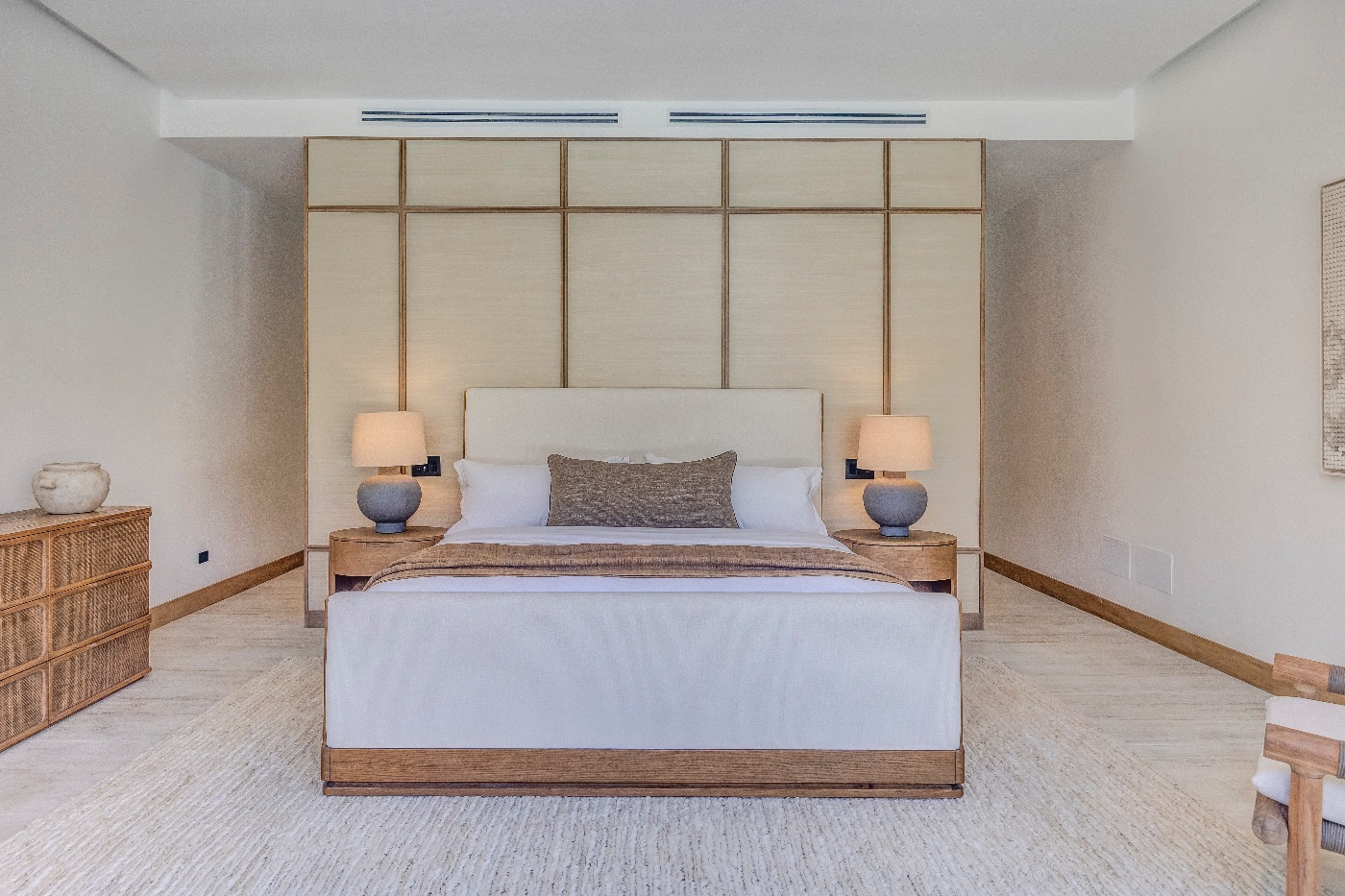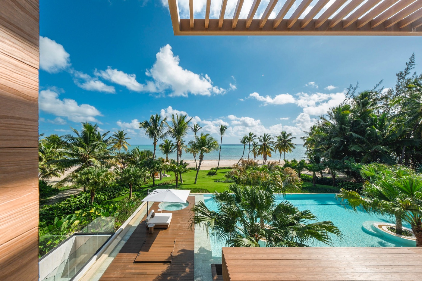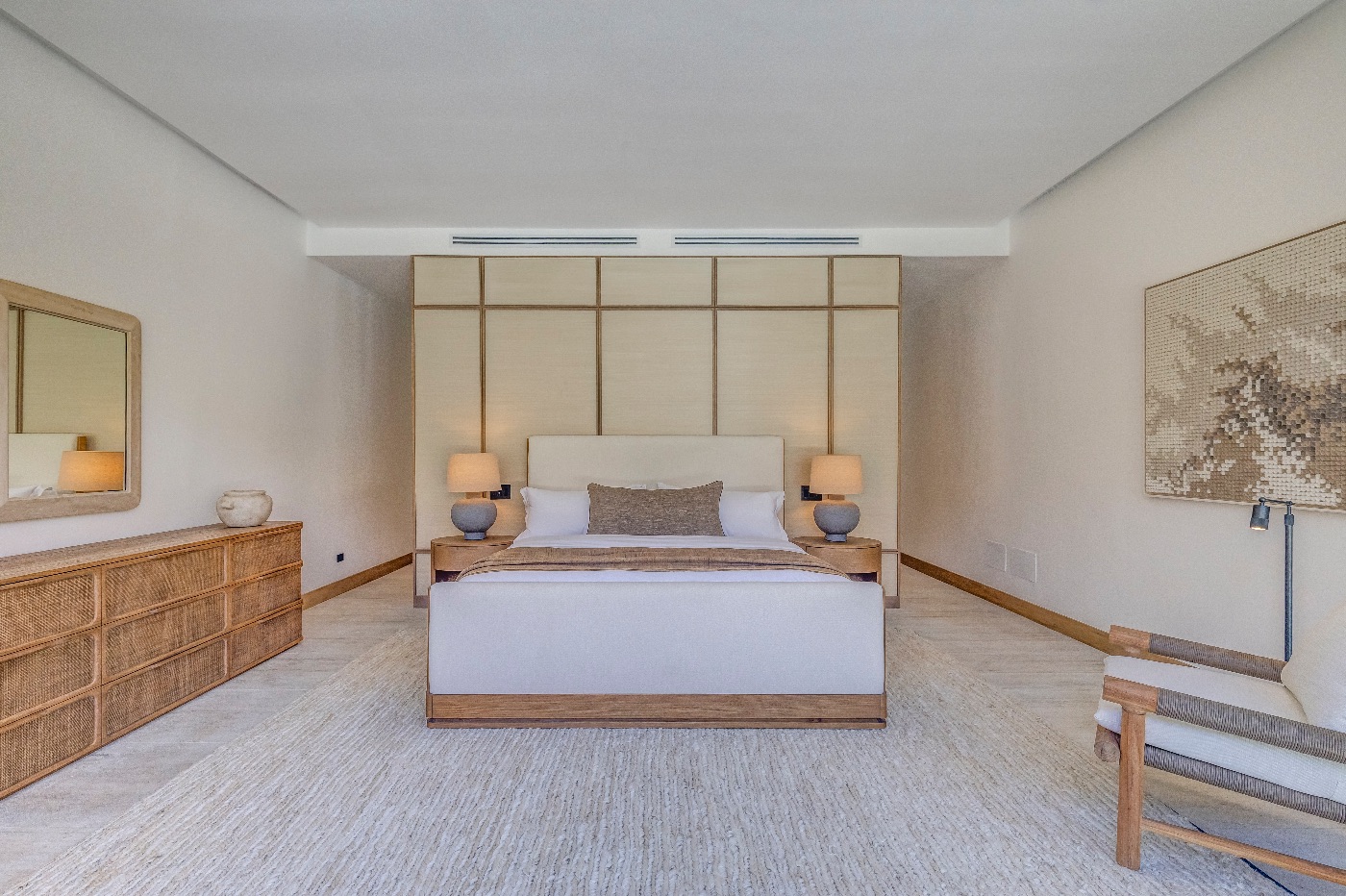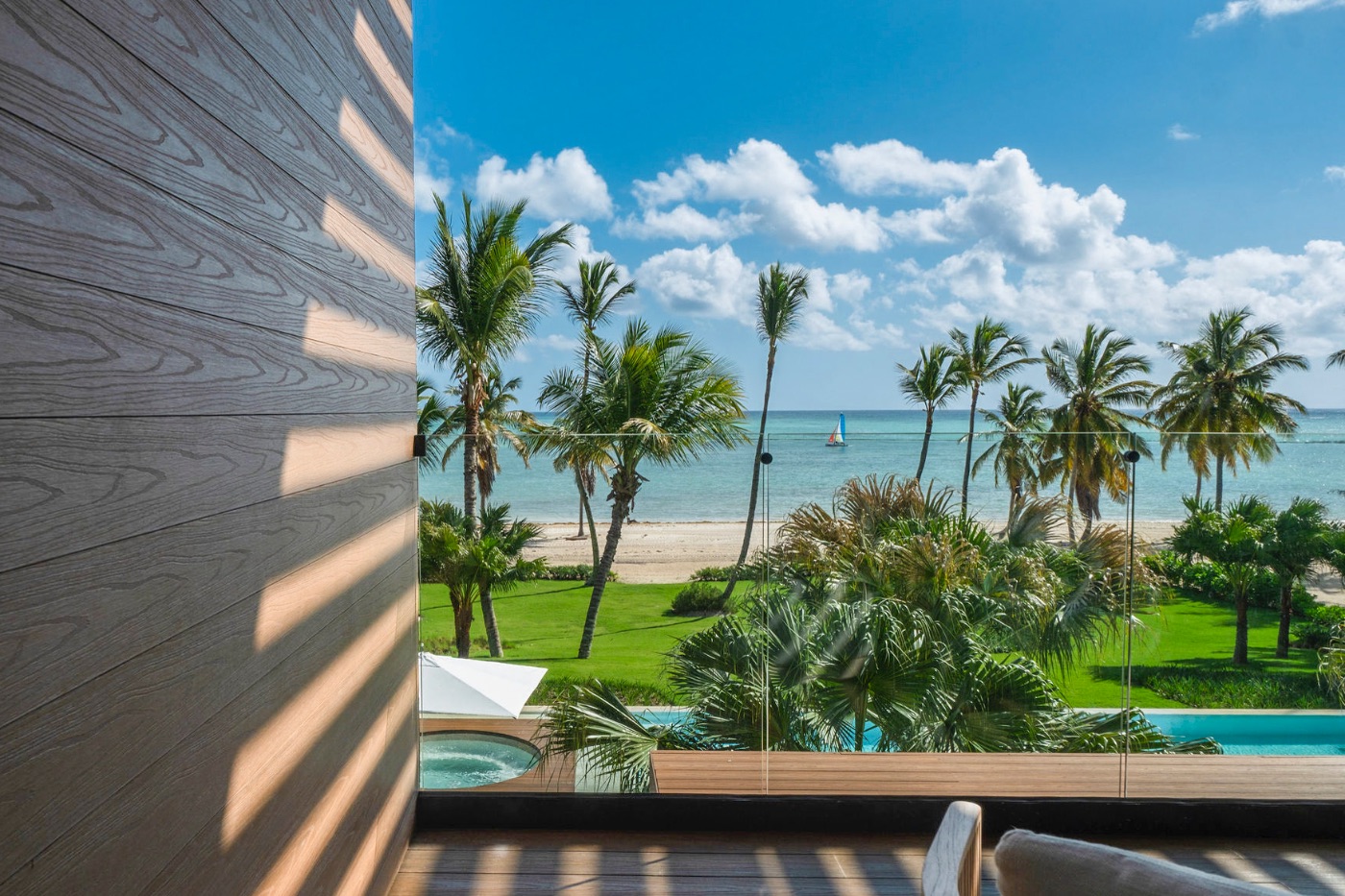 The air is soft and salted as you slide open the terrace doors and step onto warm sand from cool stone. There are no strangers between you and the water, no lines, and no noise—this isn’t resort theater. This two-acre private section of Cap Cana’s Juanillo Beach was refurbished in 2025, so every surface feels brand new, every system works, and every area invites you to take it slow.
