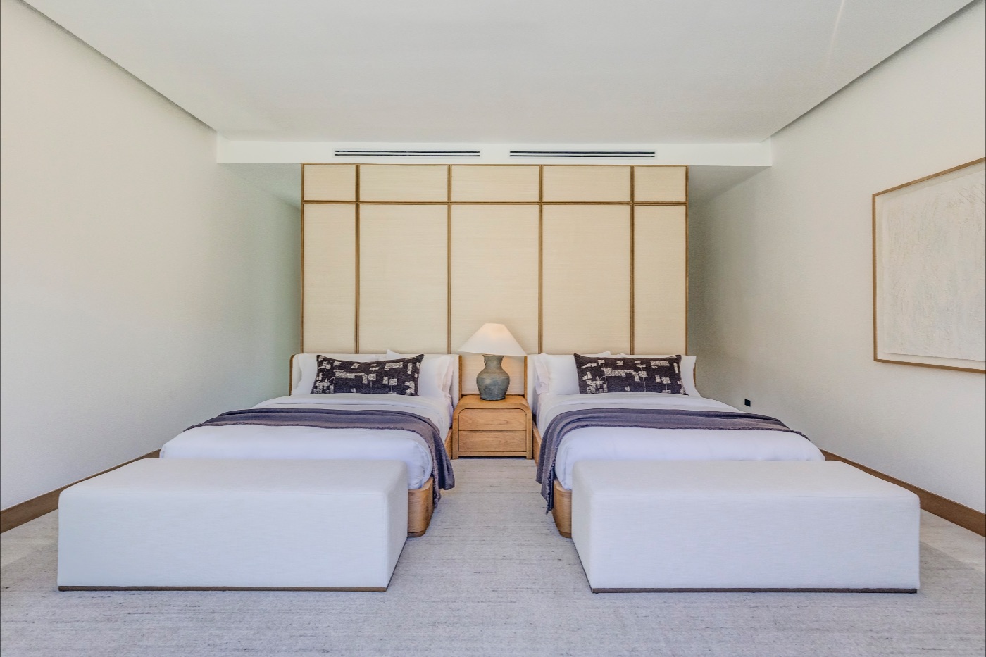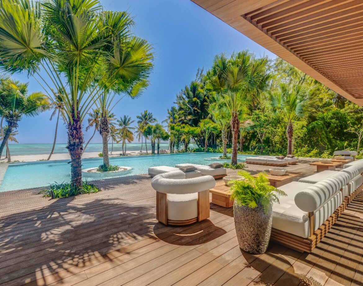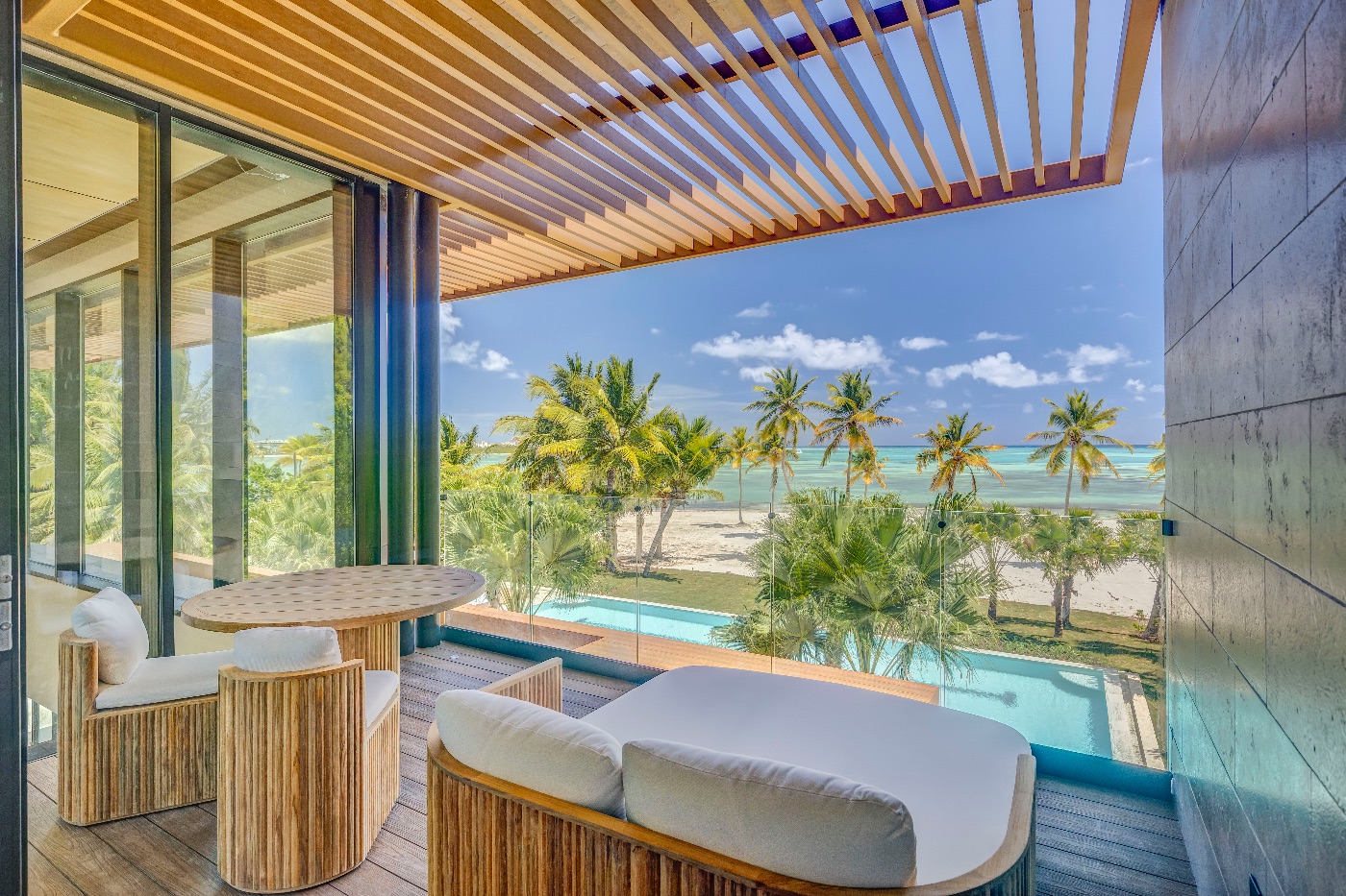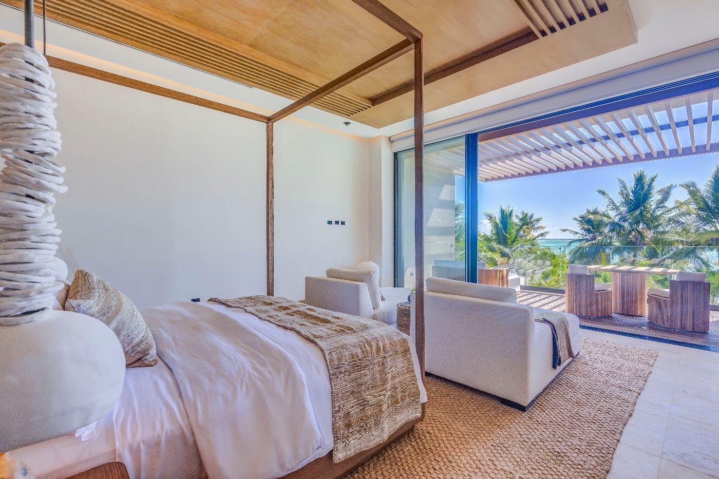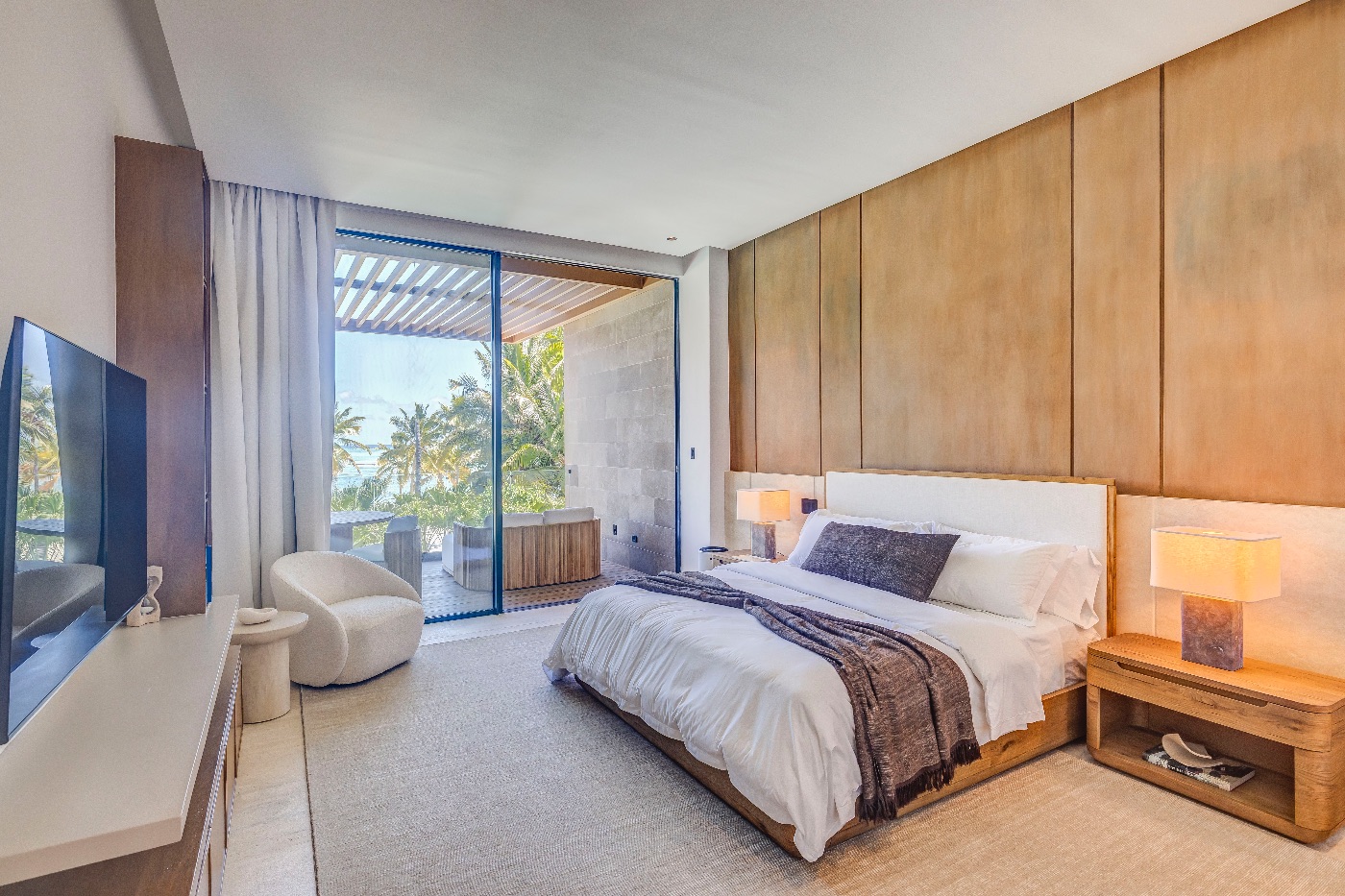 The air is soft and salted as you slide open the terrace doors and step onto warm sand from cool stone. There are no strangers between you and the water, no lines, and no noise—this isn’t resort theater. This two-acre private section of Cap Cana’s Juanillo Beach was refurbished in 2025, so every surface feels brand new, every system works, and every area invites you to take it slow.