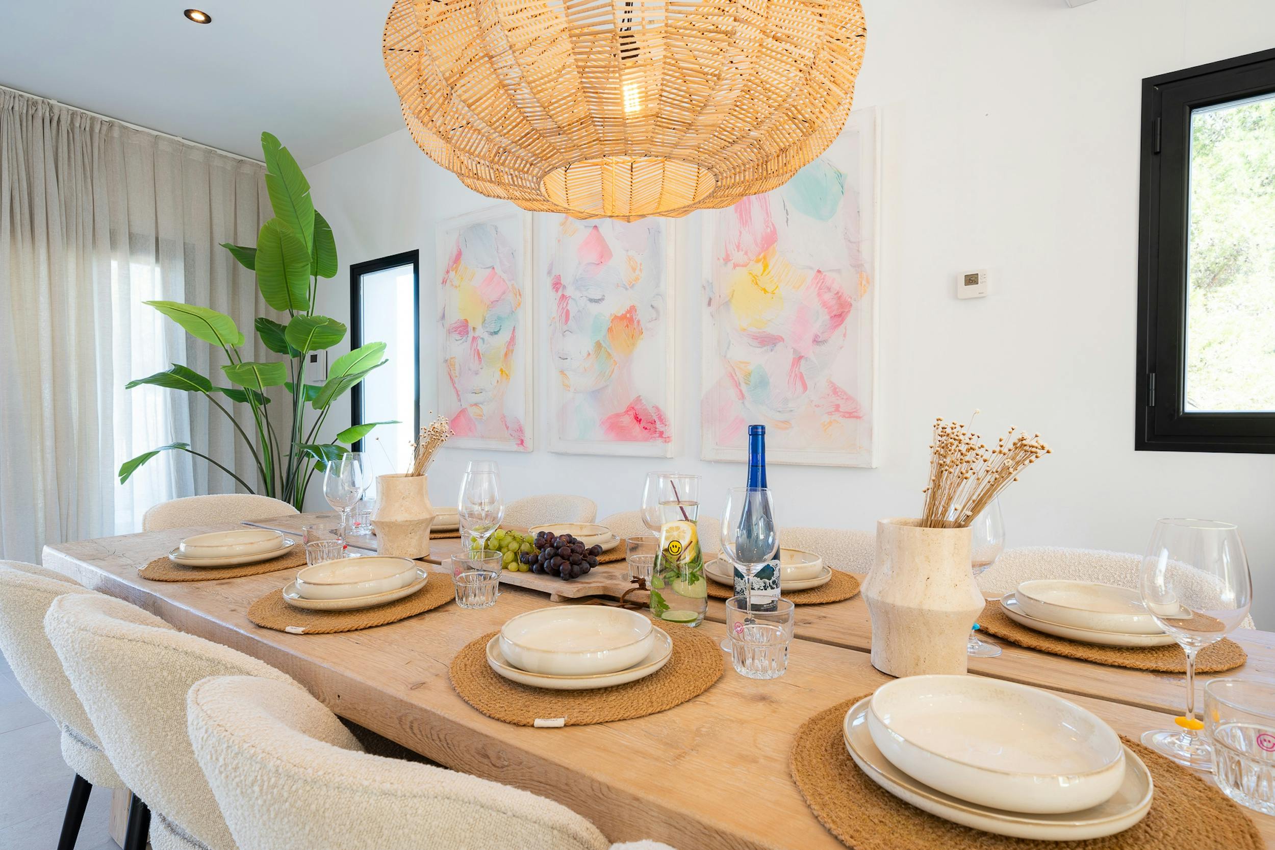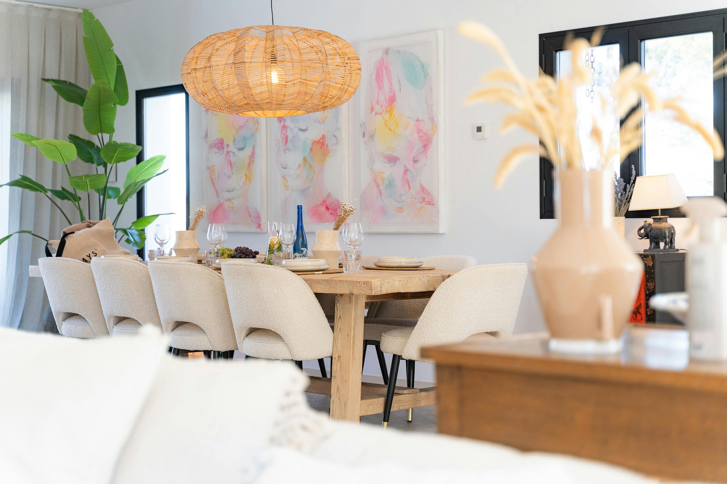 Casa Del Susurro is the ideal choice for families and friends who appreciate room, ease of use, and a sophisticated yet laid-back style. It is a stylish Ibizan base with four en-suite bedrooms, a resort-style pool terrace, and indoor-outdoor flow. Breakfast at the island, afternoons by the pool, promenade walks in the golden hour, and late-night conversations under the stars make every day feel perfectly balanced.