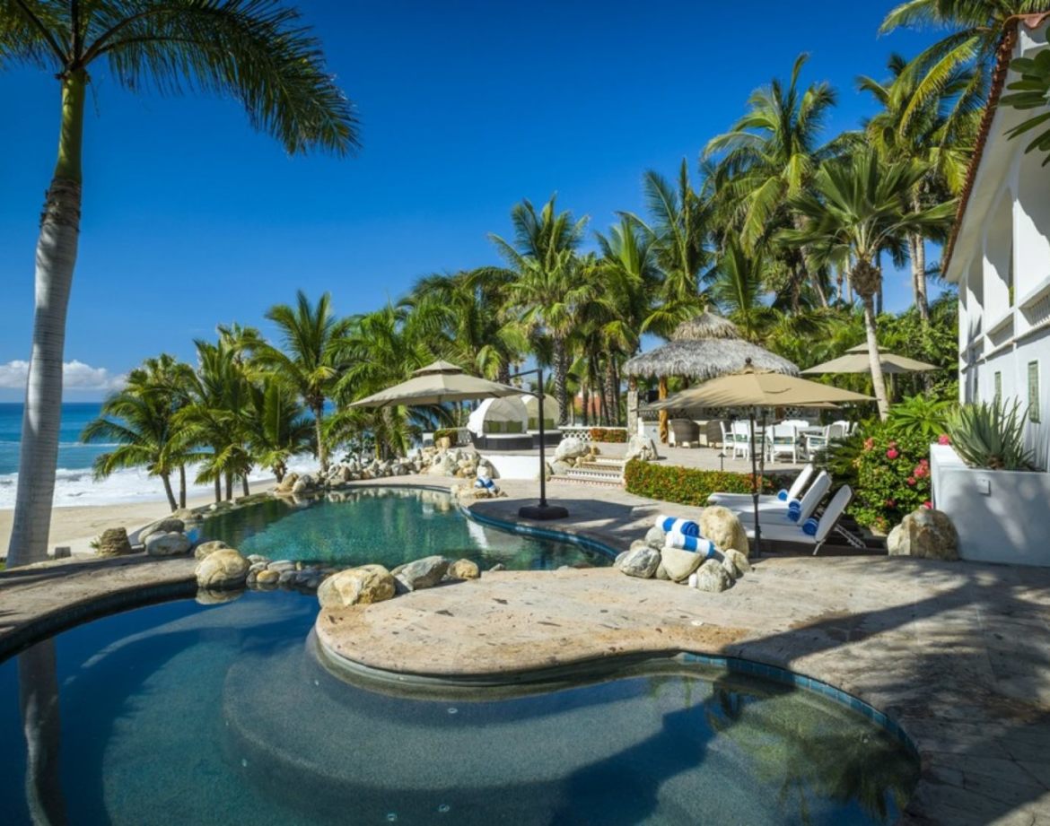 The unique combination of a grand, Colonial-style entertaining plan—fireplace dining hall, media salon, Spanish patio, and palapa bar terrace—and true steps-to-sand convenience in Villas del Mar is what makes Casa Edwards unique. It offers private-home coziness with resort-level flow on one of Palmilla’s most legendary bays.