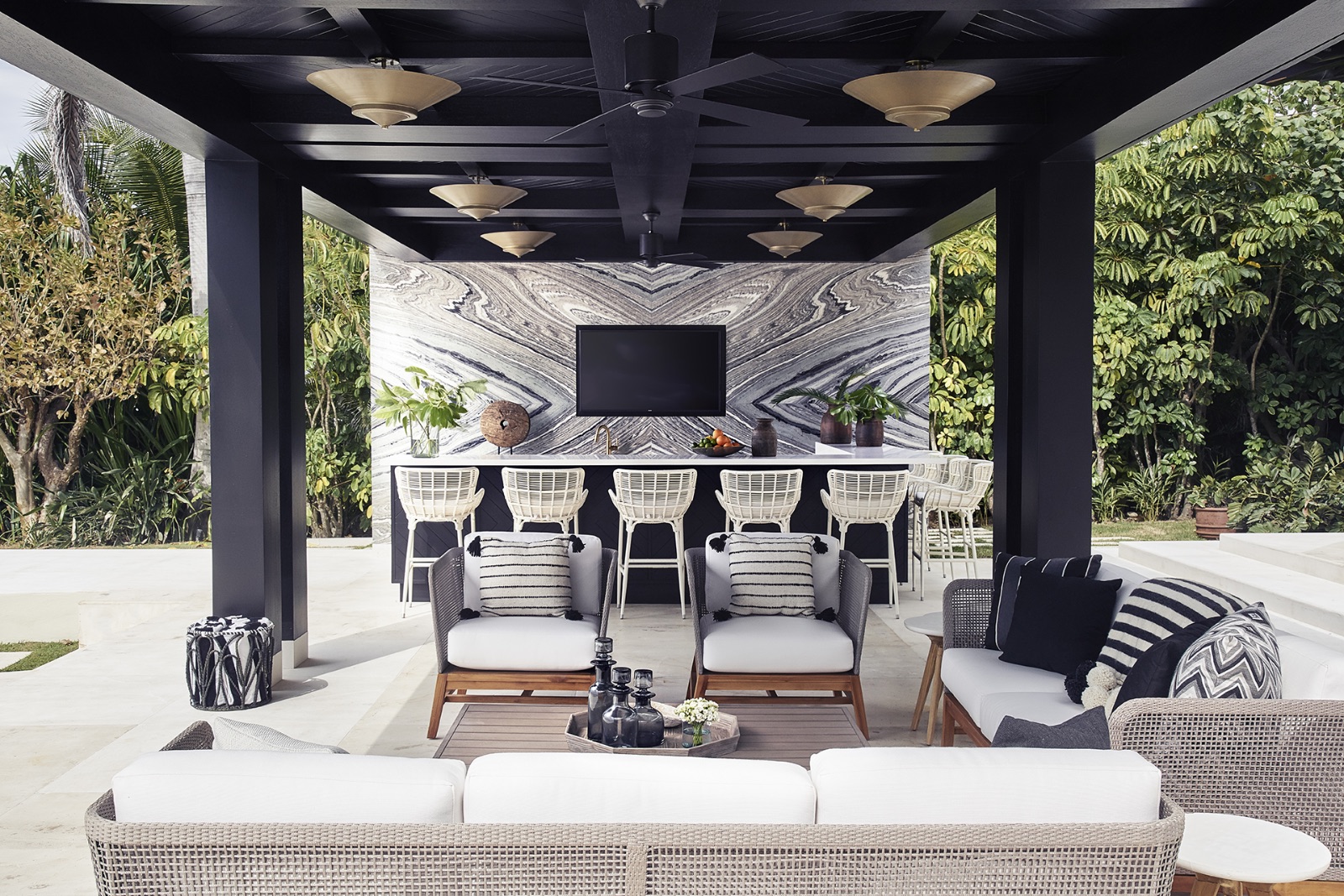 Days unfold between the gazebo and infinity pool, where the sound of the waves accompanies every moment, and evenings gather beneath the thatched palapa, with its inviting wet bar and relaxed social spaces. A private cinema, lush tropical gardens, and open-air showers complete an atmosphere that feels both refined and free.