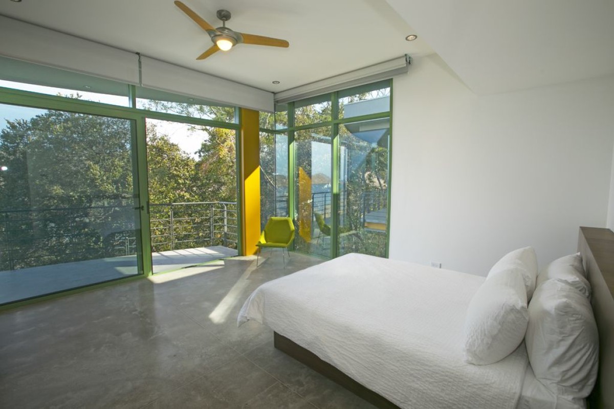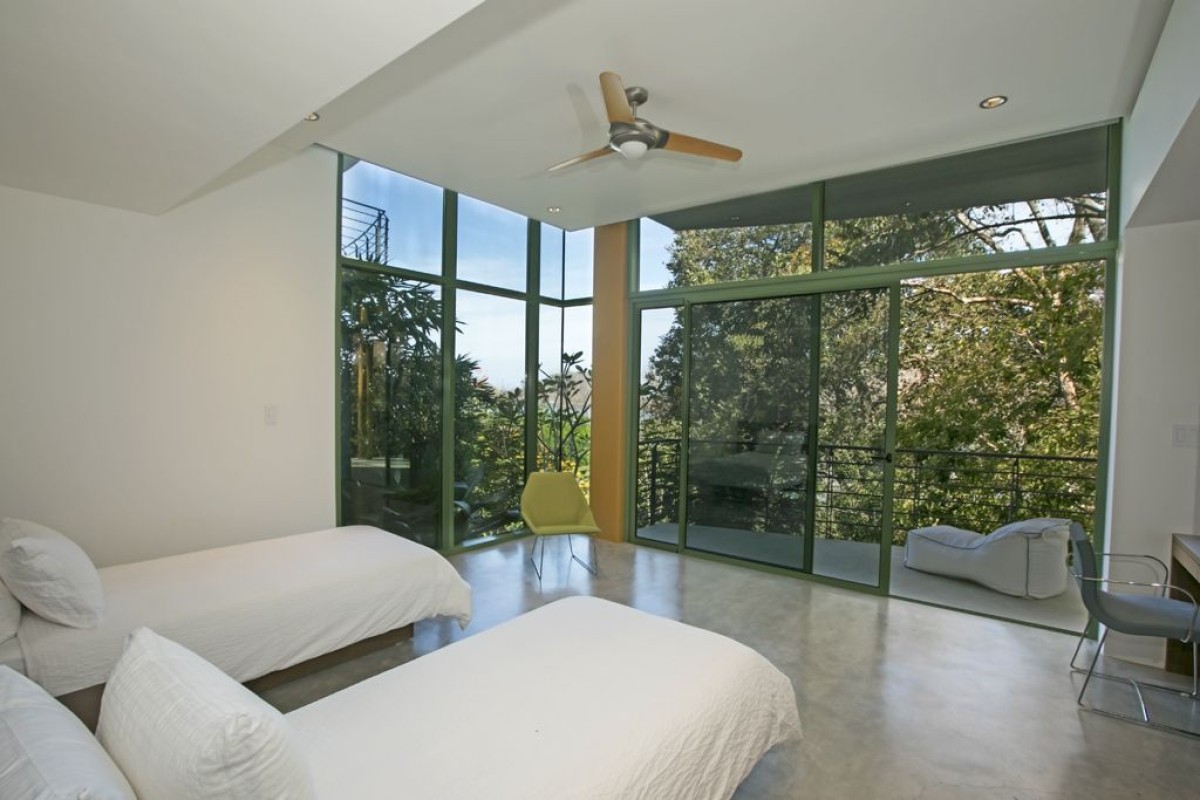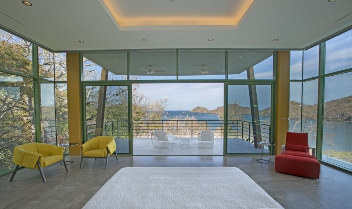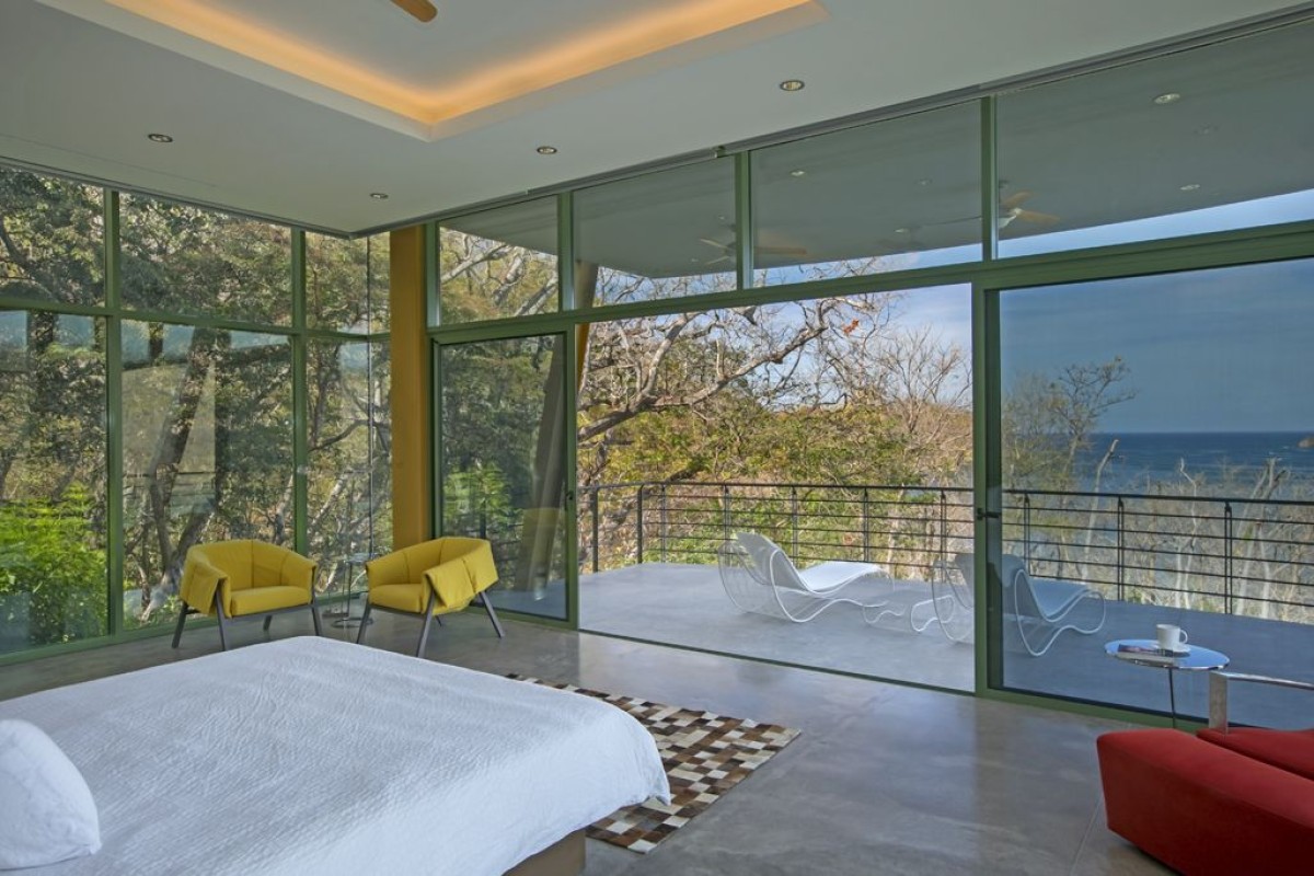 Five tranquil bedrooms, each framed by floor-to-ceiling glass.