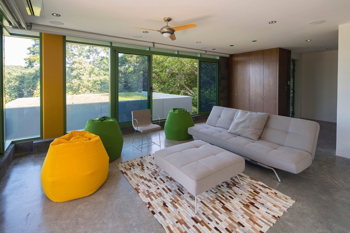 Seamless indoor–outdoor living with rainforest theatre on all sides.