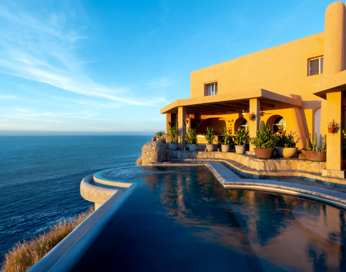 At night, the lighthouse at Land’s End blinks in the distance, and the surf turns a steady basso beneath the stars. In the morning, the sun crosses the water in a silver path. Every line in this 5,000-square-foot haven, which is tucked away inside Pedregal’s guard-gated, round-the-clock community, is drawn toward the view: glass walls that pocket away, terraces that hover over the cliffs, an infinity pool that appears to spill directly into the Pacific.