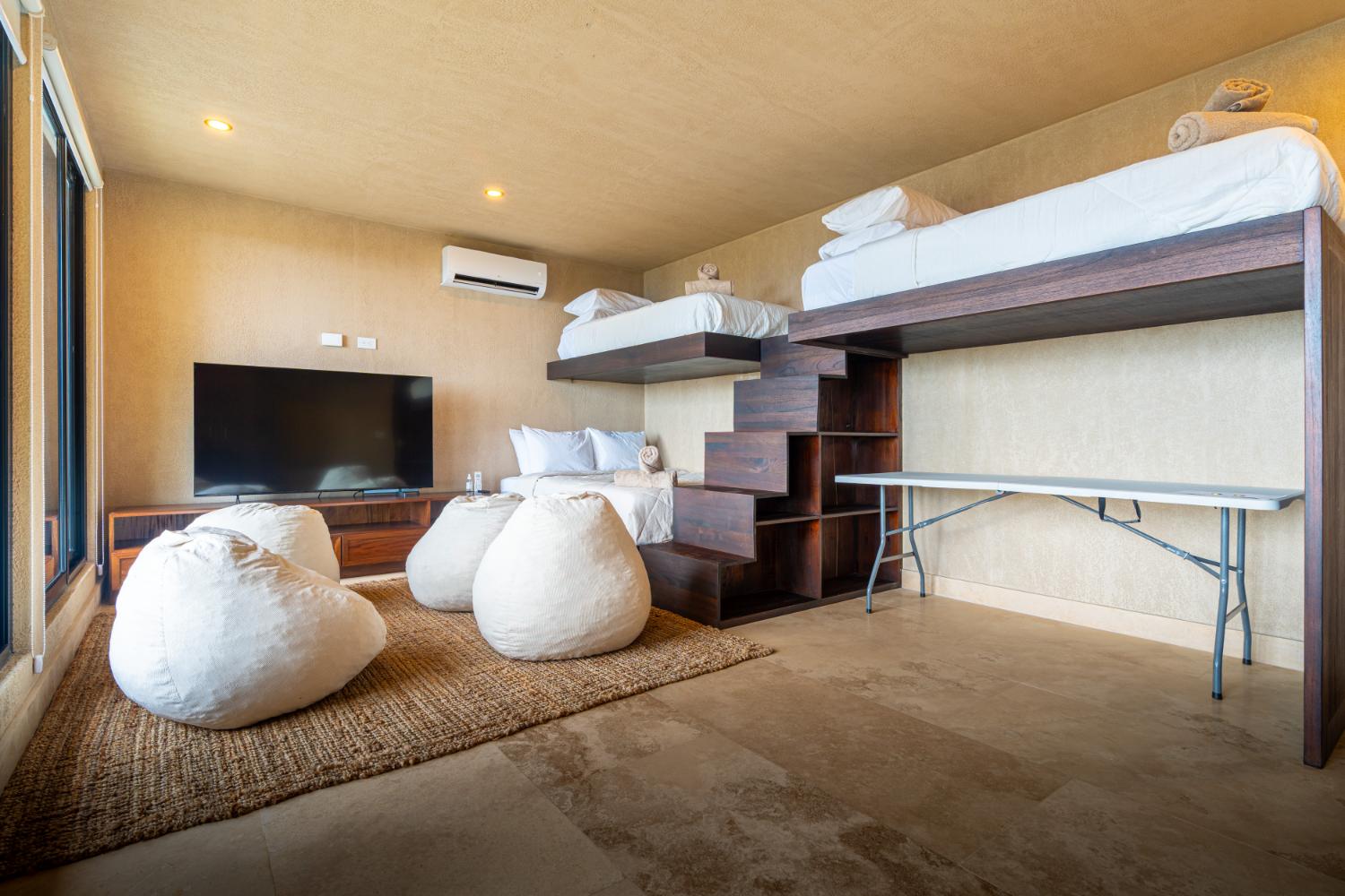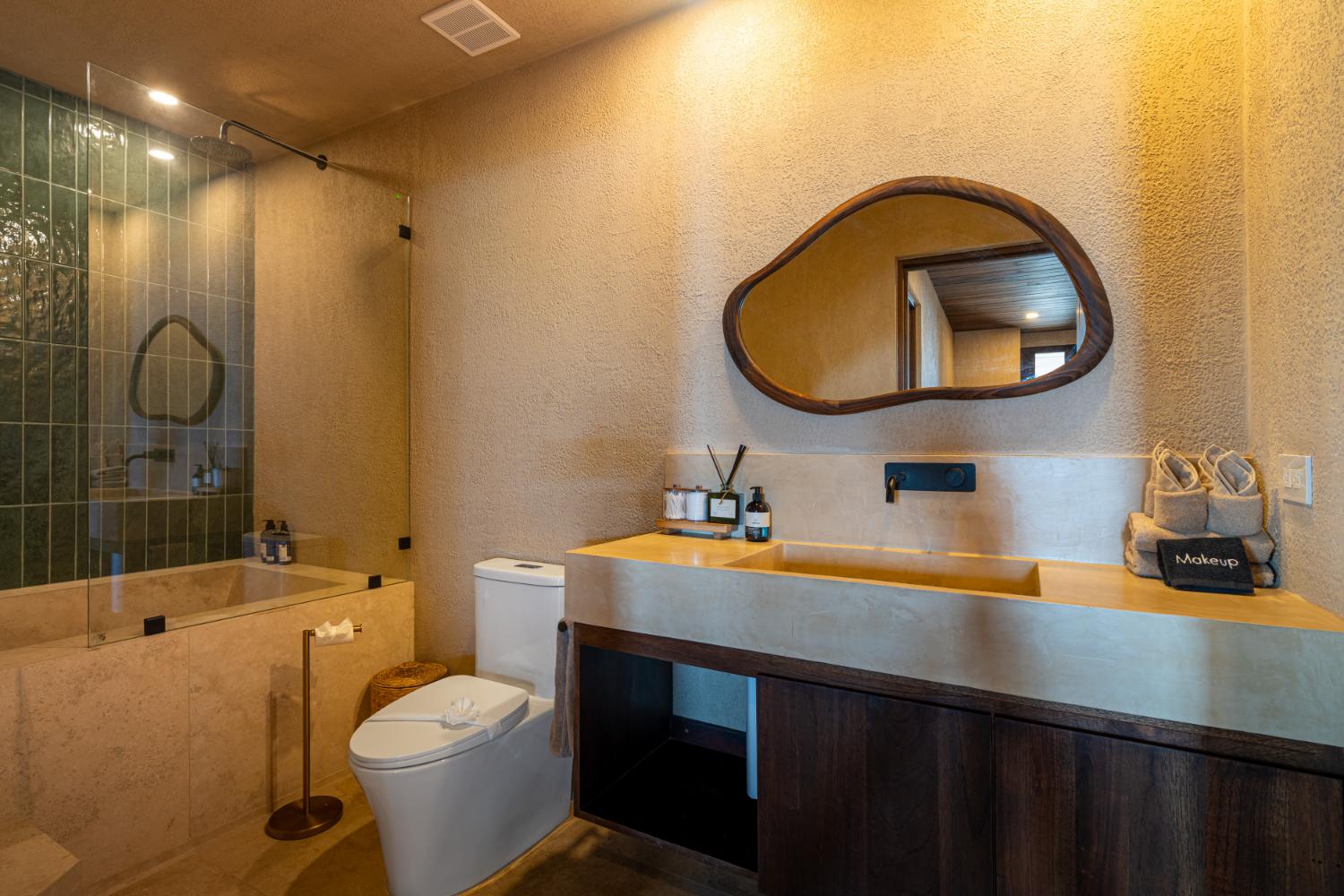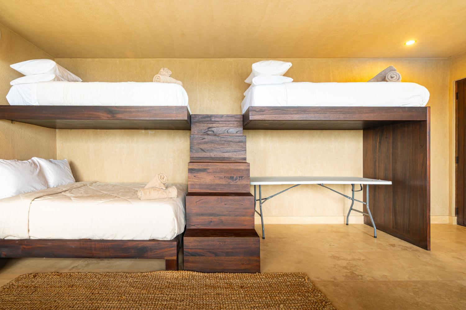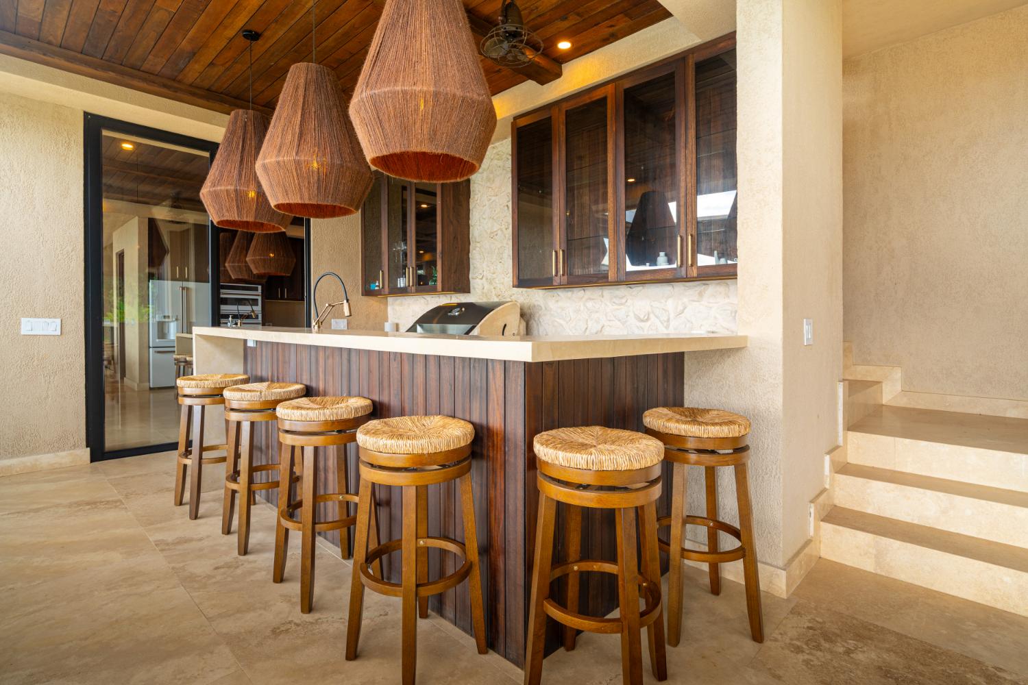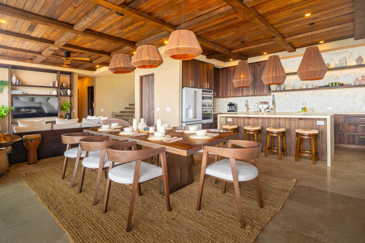 From the moment you arrive, Casa Riverstone unfolds with a sense of space and intention. The entrance level opens onto a generous landing with a wine wall and a flexible family room that works beautifully as a children’s retreat, media lounge, or relaxed workspace. The main residence includes four bedrooms, while a separate casita tucked beneath the entrance level adds an extra layer of privacy with its own kitchen, king bedroom, ensuite bathroom, and private terrace. This layout makes the villa especially well suited to multigenerational stays, two-family holidays, or guests traveling with a nanny, staff, or a couple who would appreciate their own independent space.
