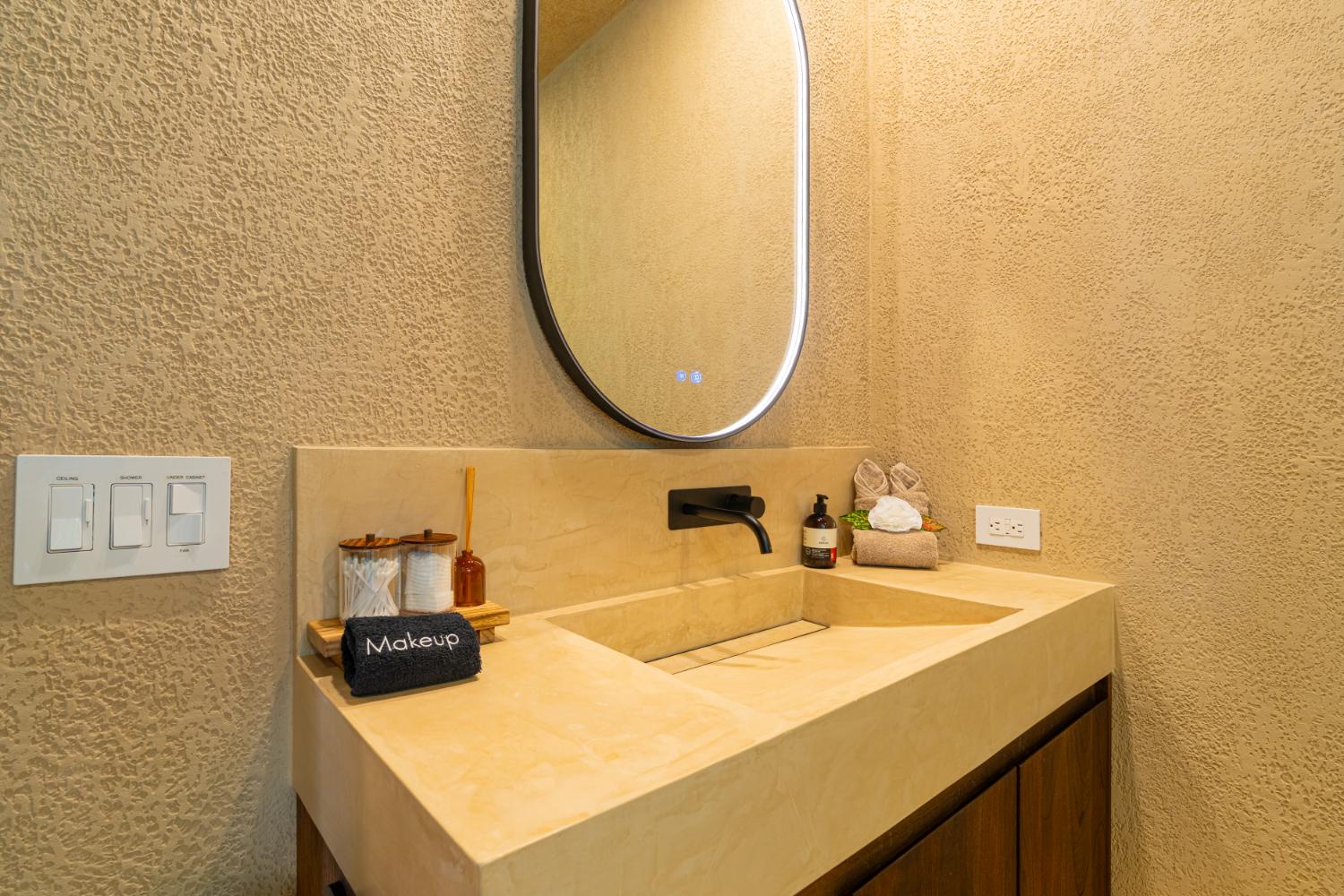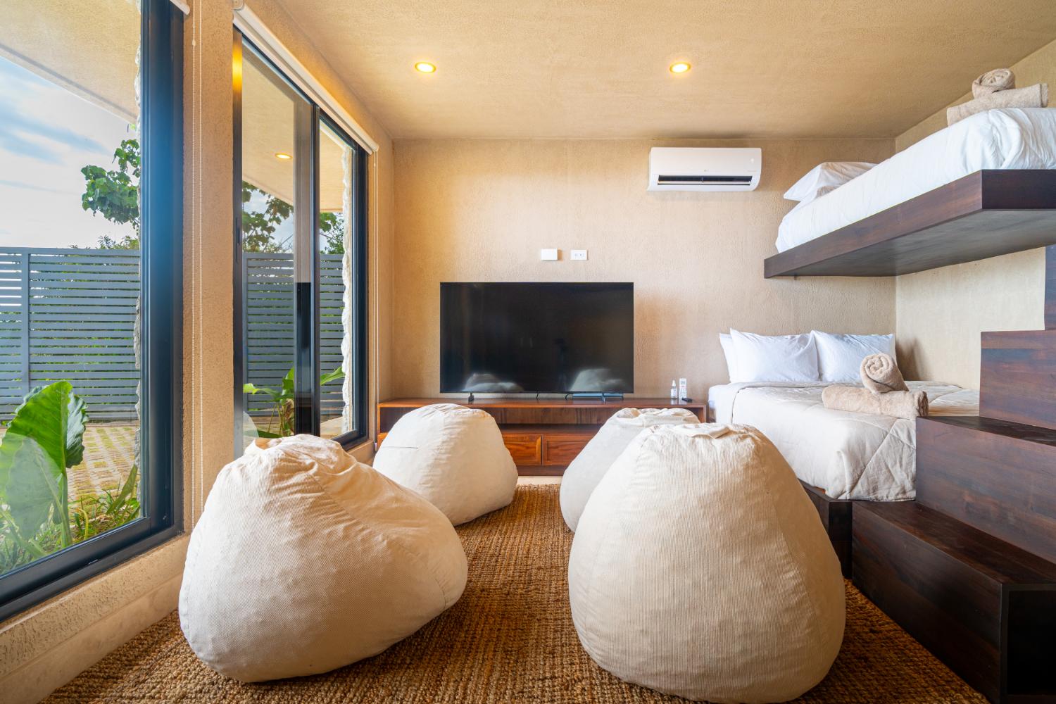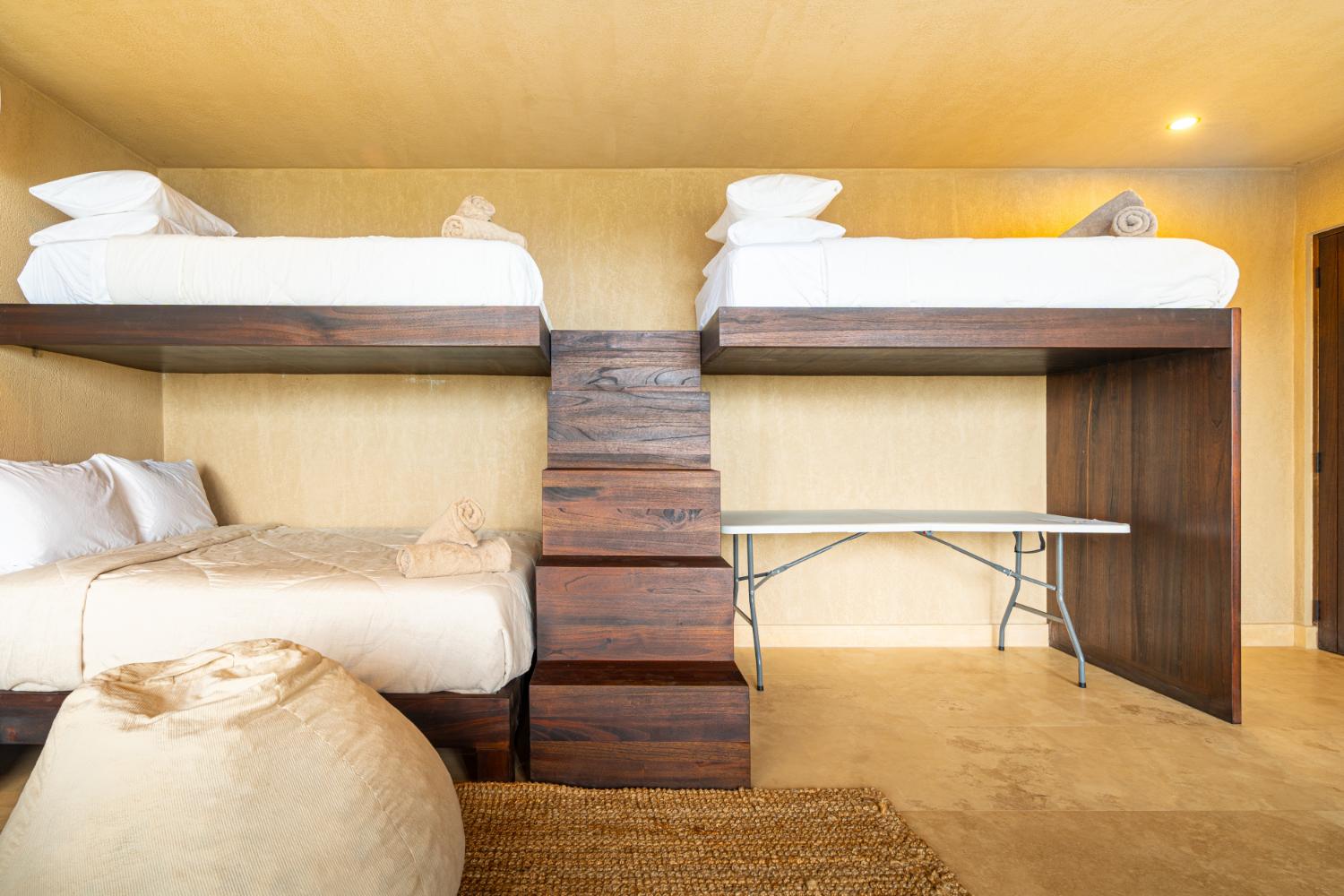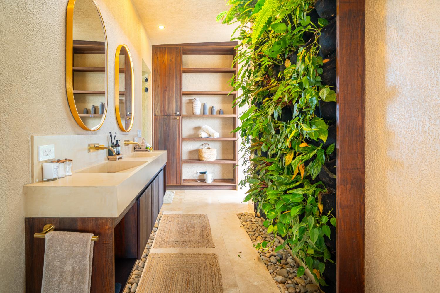 From the moment you arrive, Casa Riverstone unfolds with a sense of space and intention. The entrance level opens onto a generous landing with a wine wall and a flexible family room that works beautifully as a children’s retreat, media lounge, or relaxed workspace. The main residence includes four bedrooms, while a separate casita tucked beneath the entrance level adds an extra layer of privacy with its own kitchen, king bedroom, ensuite bathroom, and private terrace. This layout makes the villa especially well suited to multigenerational stays, two-family holidays, or guests traveling with a nanny, staff, or a couple who would appreciate their own independent space.