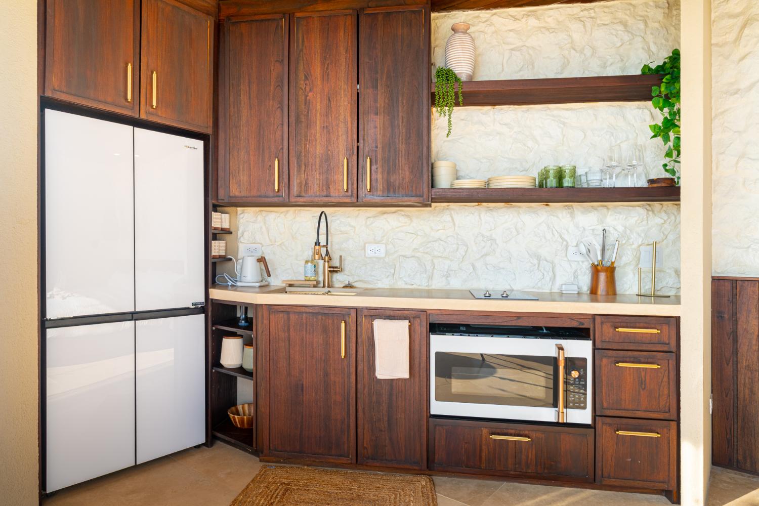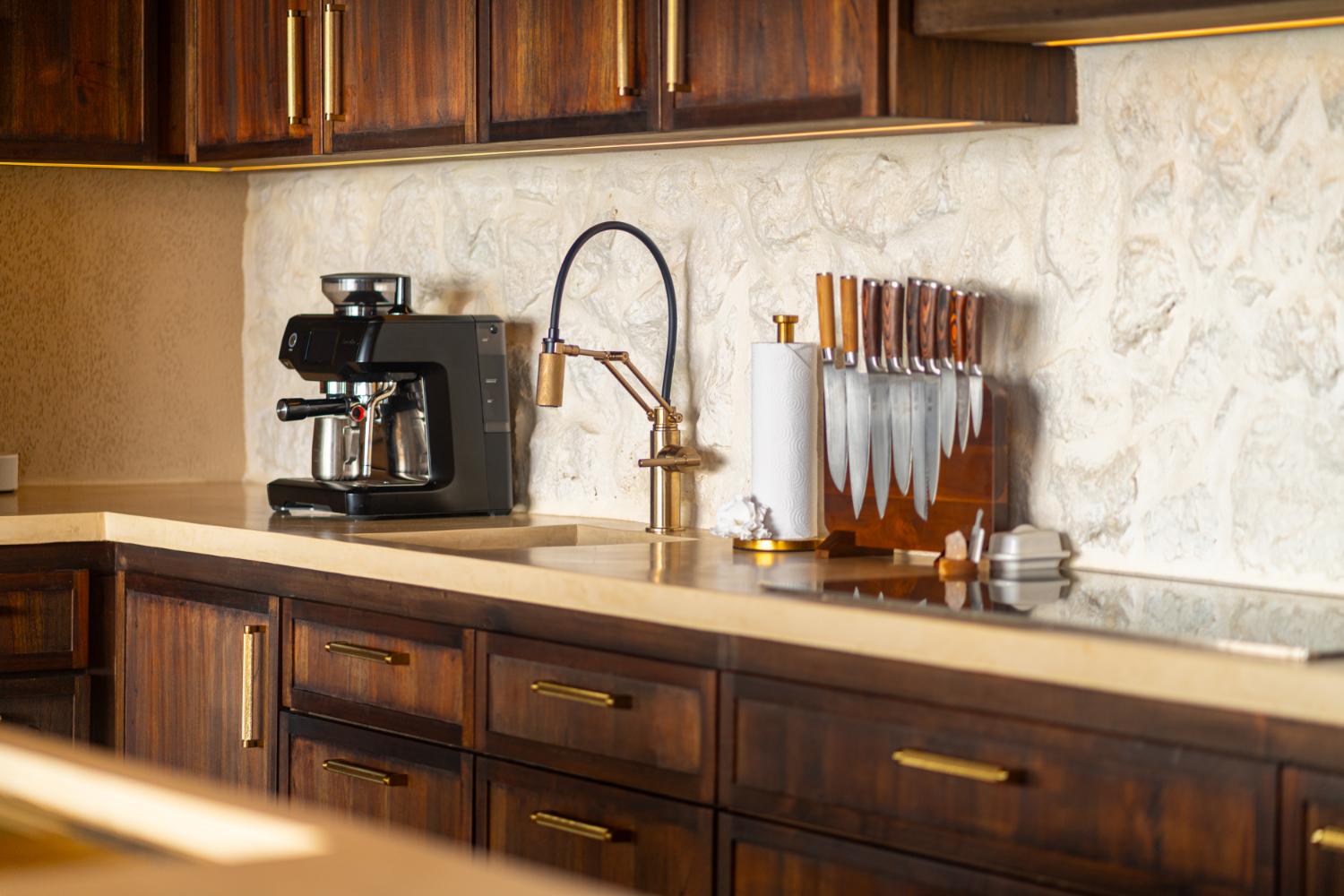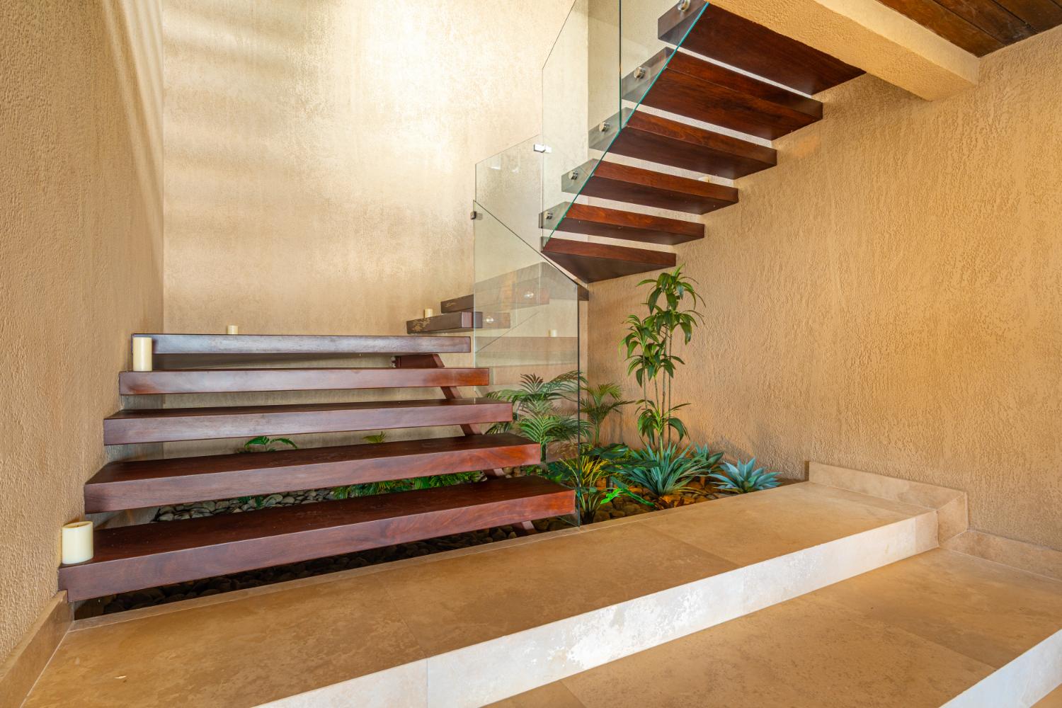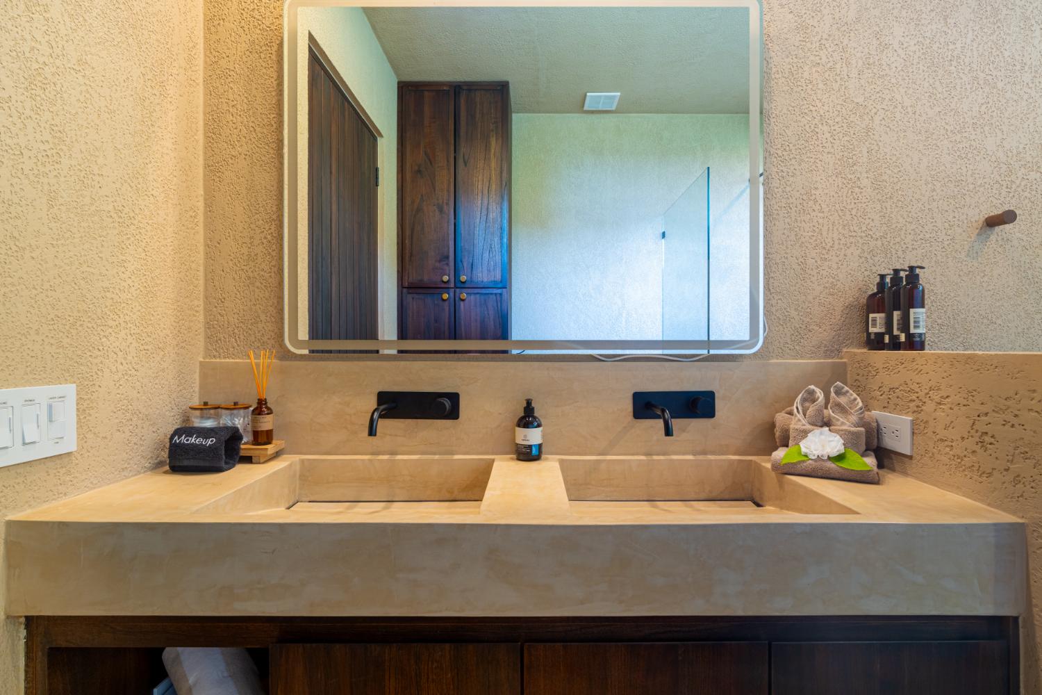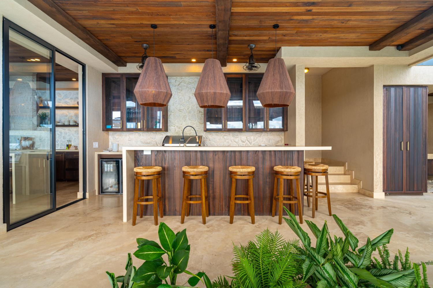 From the moment you arrive, Casa Riverstone unfolds with a sense of space and intention. The entrance level opens onto a generous landing with a wine wall and a flexible family room that works beautifully as a children’s retreat, media lounge, or relaxed workspace. The main residence includes four bedrooms, while a separate casita tucked beneath the entrance level adds an extra layer of privacy with its own kitchen, king bedroom, ensuite bathroom, and private terrace. This layout makes the villa especially well suited to multigenerational stays, two-family holidays, or guests traveling with a nanny, staff, or a couple who would appreciate their own independent space.