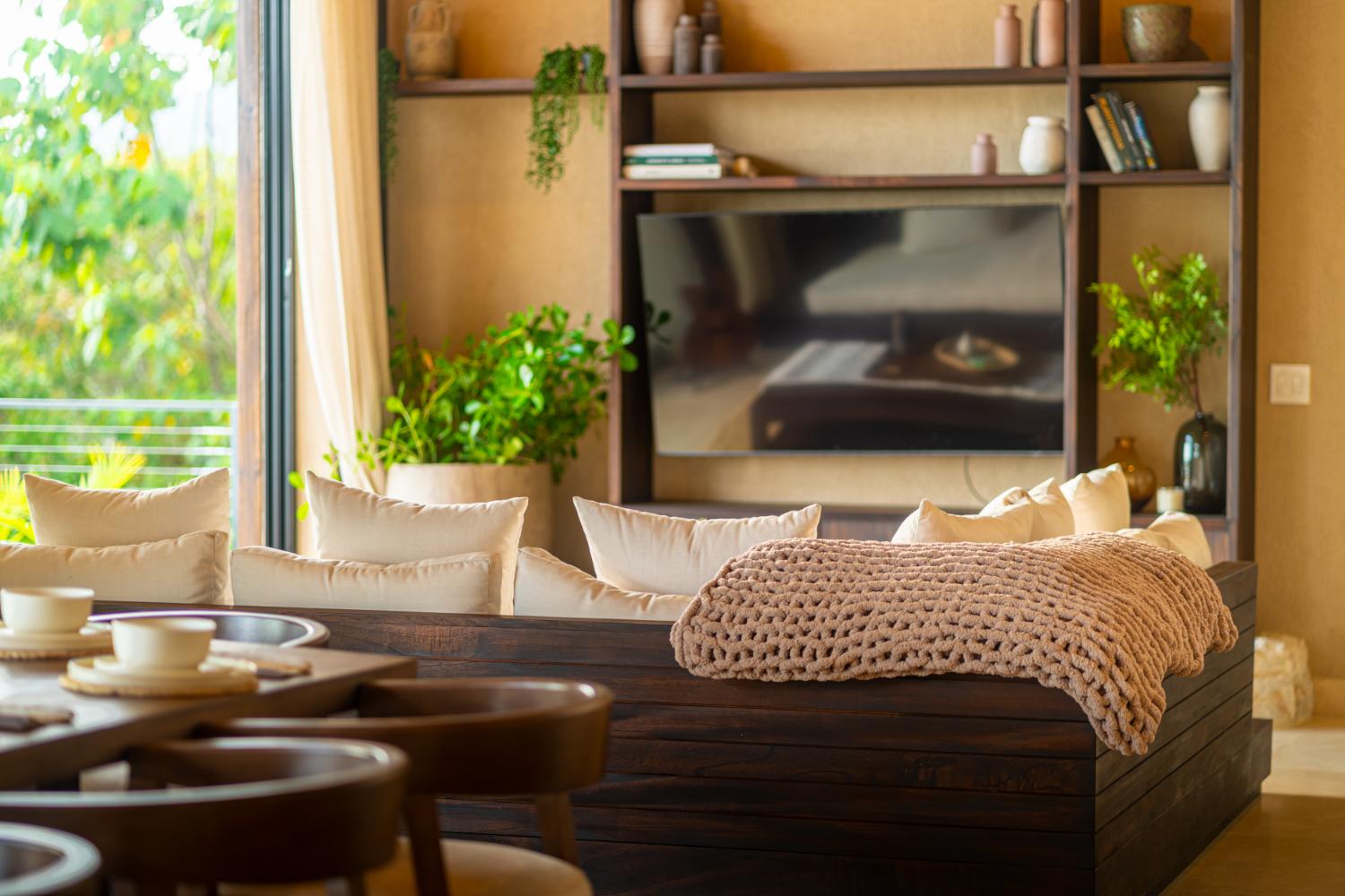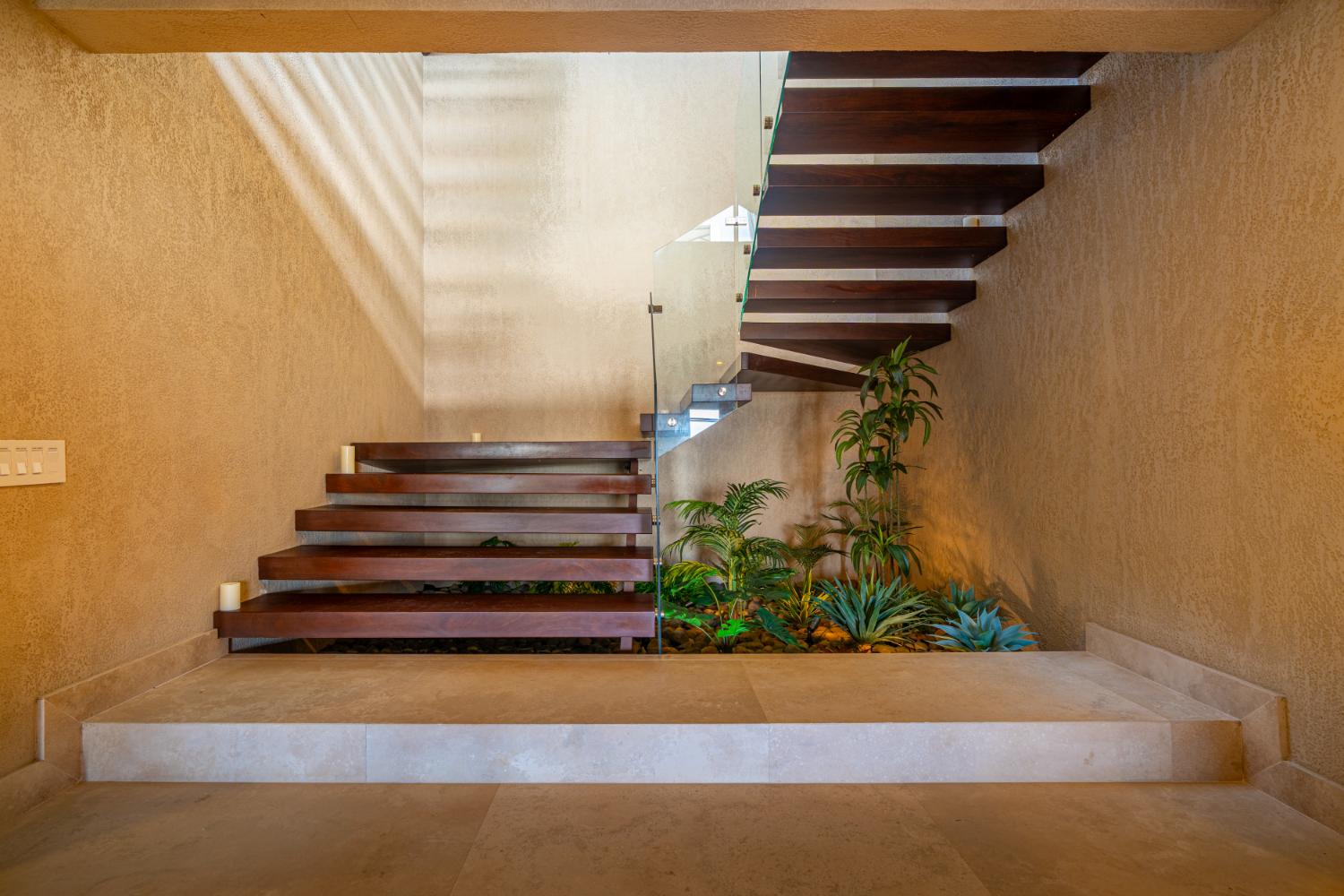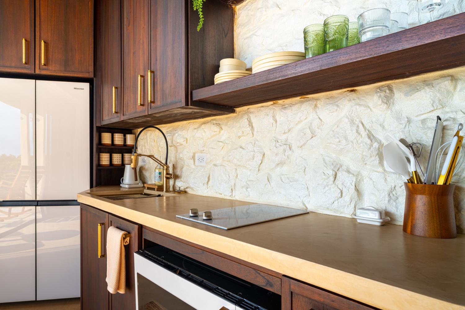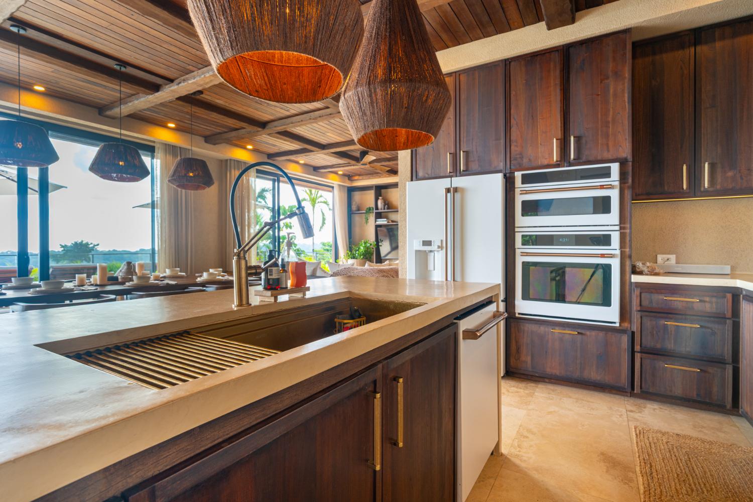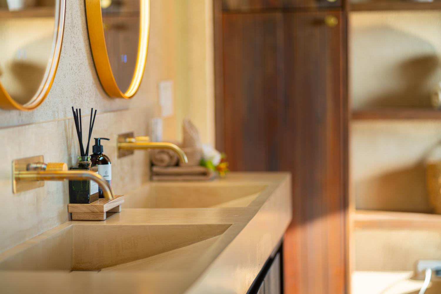 From the moment you arrive, Casa Riverstone unfolds with a sense of space and intention. The entrance level opens onto a generous landing with a wine wall and a flexible family room that works beautifully as a children’s retreat, media lounge, or relaxed workspace. The main residence includes four bedrooms, while a separate casita tucked beneath the entrance level adds an extra layer of privacy with its own kitchen, king bedroom, ensuite bathroom, and private terrace. This layout makes the villa especially well suited to multigenerational stays, two-family holidays, or guests traveling with a nanny, staff, or a couple who would appreciate their own independent space.