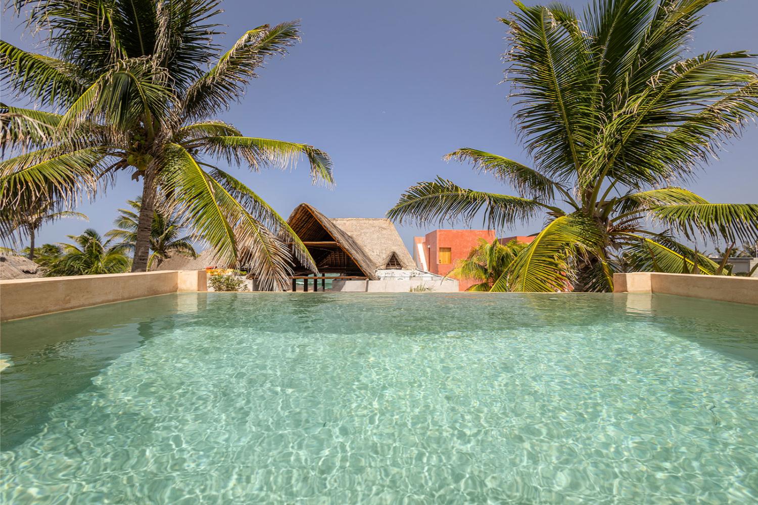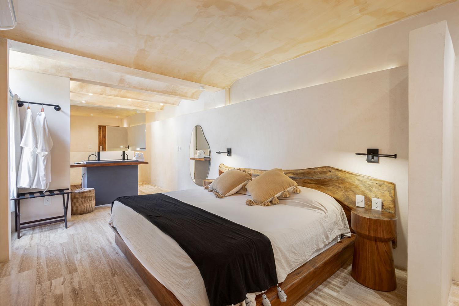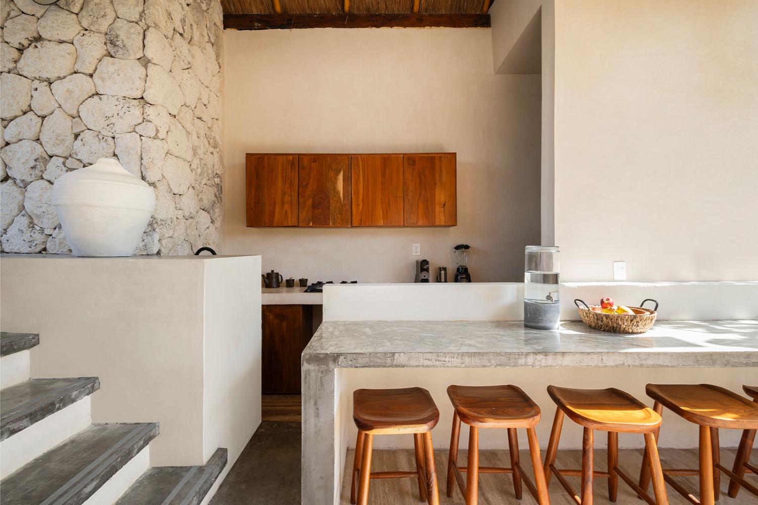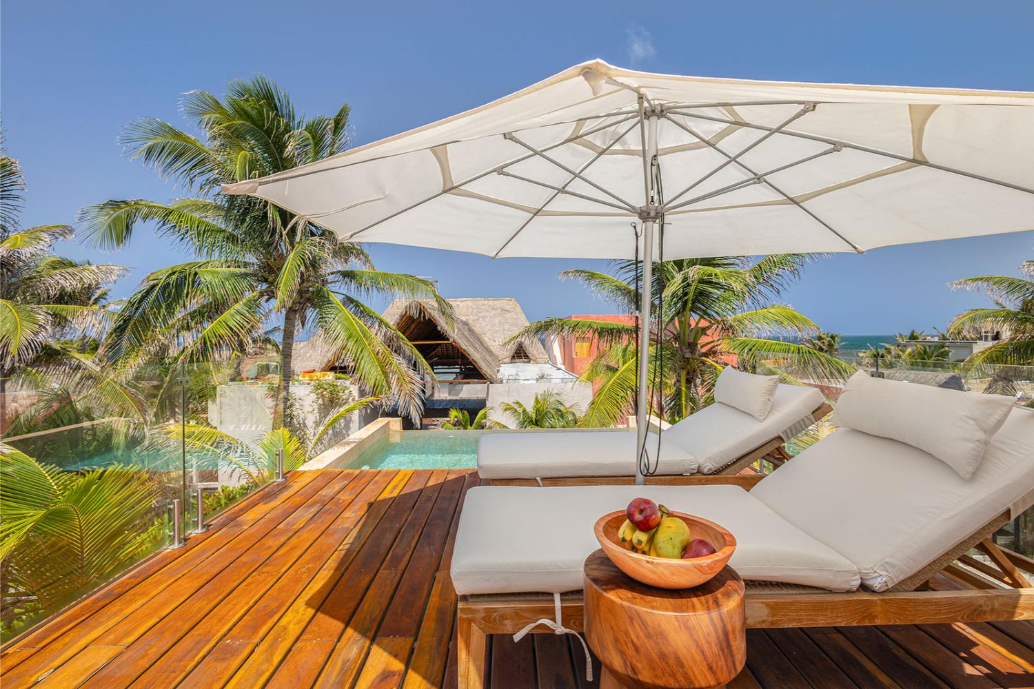 Every visitor can enjoy hotel-quality comfort and a peaceful space to rest in any of the five king suites, each of which is a private haven with its own bathroom. With a built-in bar that’s ready for pre-dinner margaritas or a laid-back nightcap, the main level’s semi-open living area seamlessly blends indoor and outdoor spaces. In between beach sessions, loungers are surrounded by tropical greenery on the sunny pool deck, which is accessible by sliding open the doors. For expansive views and light-hearted conversations that last into the evening, head upstairs to the rooftop plunge pool when golden hour arrives.