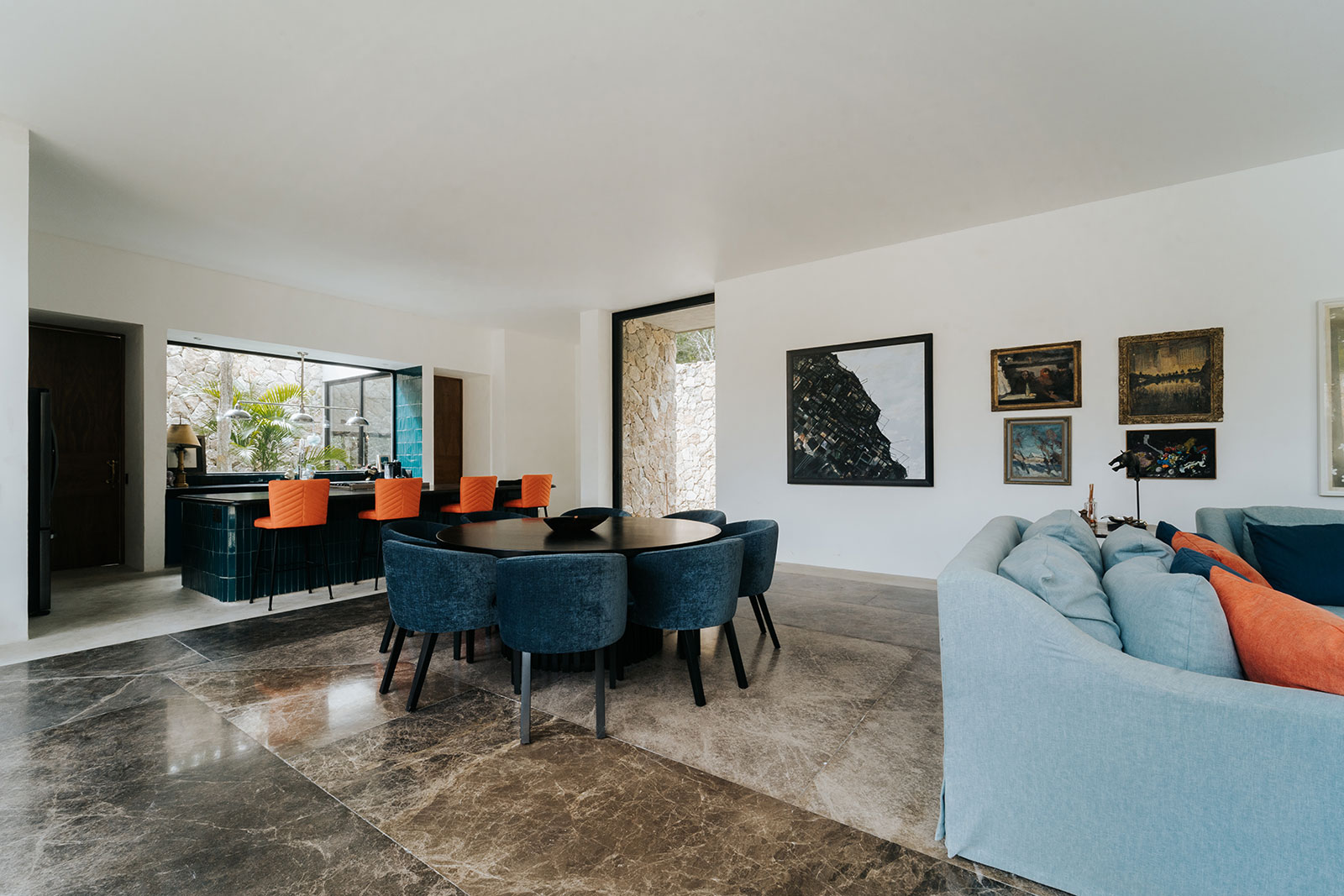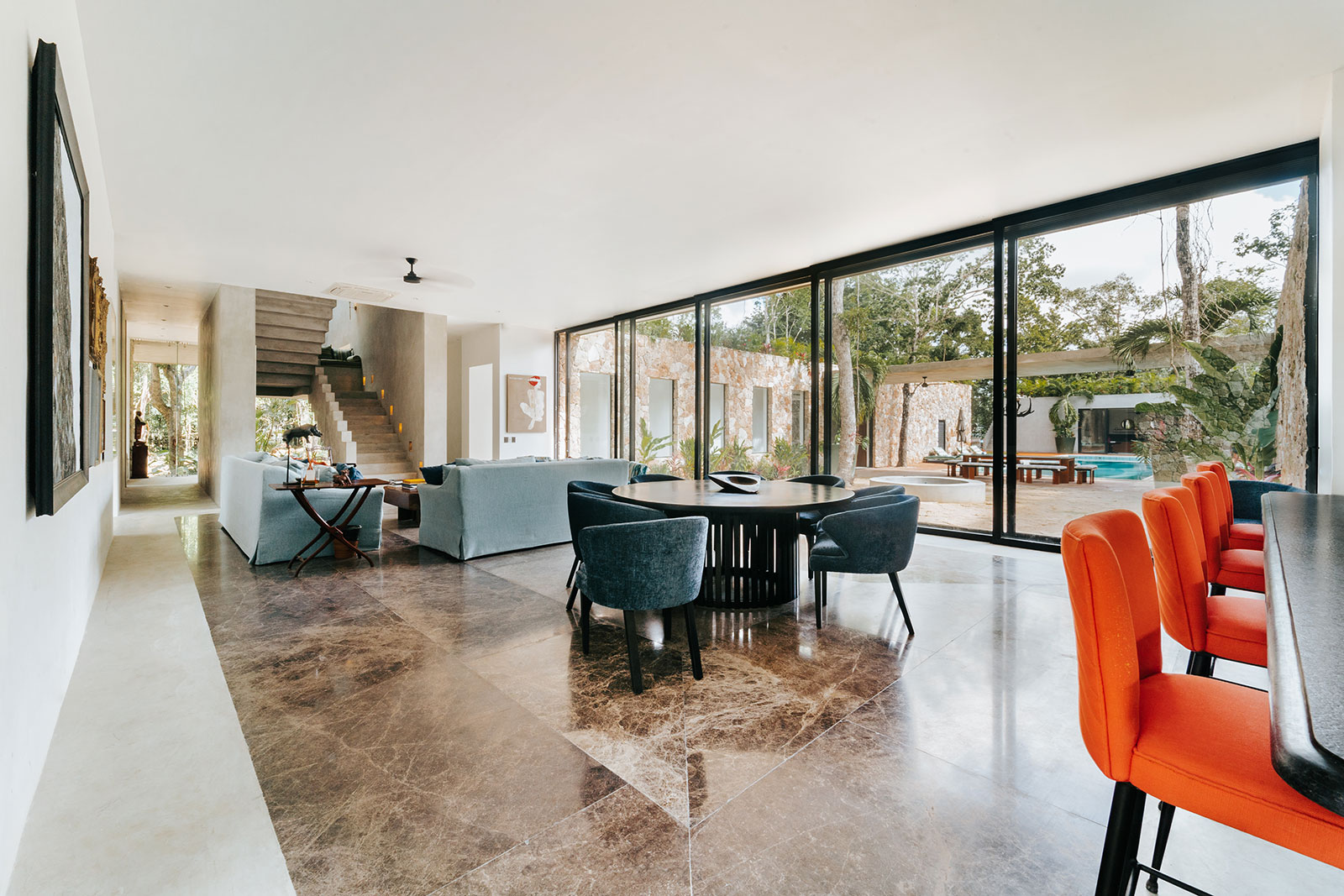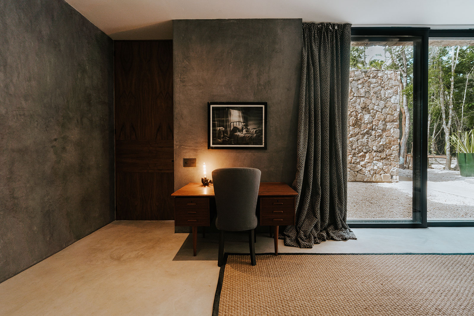 Inside, modern minimalism meets authentic Mexican texture: warm woods, stone finishes, and soft textiles that make the architecture feel grounded rather than flashy. With space for up to 12 guests, Casa Xolo is arranged across a main house with three bedrooms and a separate guest house with two additional suites—each with its own en-suite bathroom—so togetherness is easy, but everyone can still disappear into their own calm.