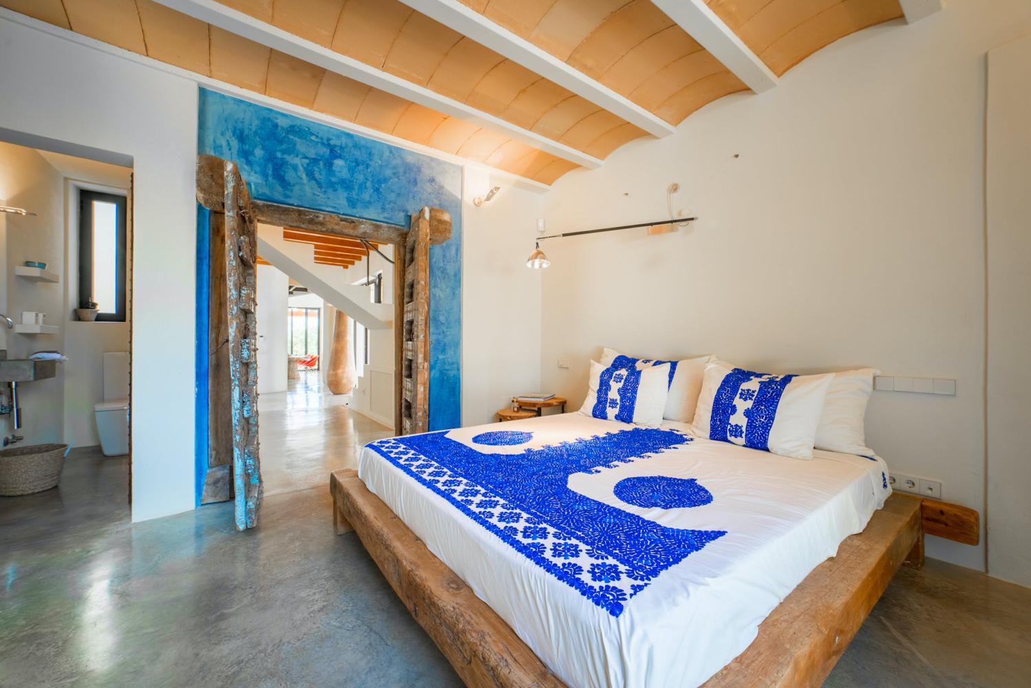 Castillo de Es Cubells offers equal parts style and space inside. The open-plan living space is anchored by a striking, double-height lounge that provides a spacious setting for both peaceful relaxation and social gatherings. A spacious dining area next door encourages leisurely, long meals, from late-night chats over a bottle of island rosé to speedy breakfasts before a beach run. Whether you’re preparing a grazing board after a day at the coves or searing freshly caught seafood, the kitchen is fully furnished for both special occasions and daily cooking.
