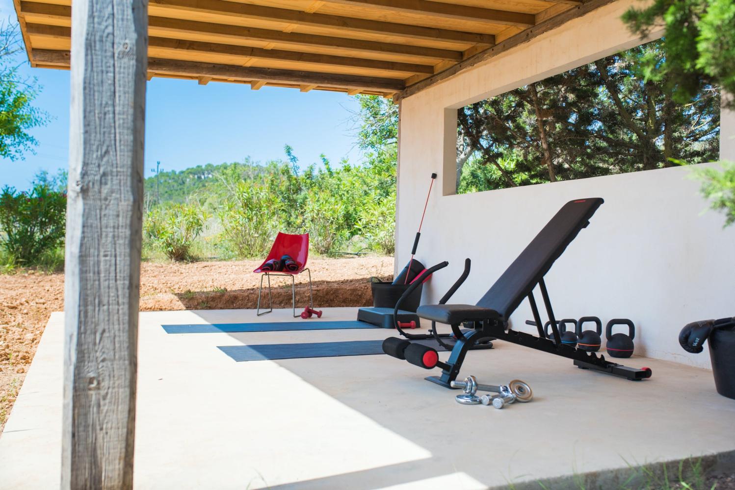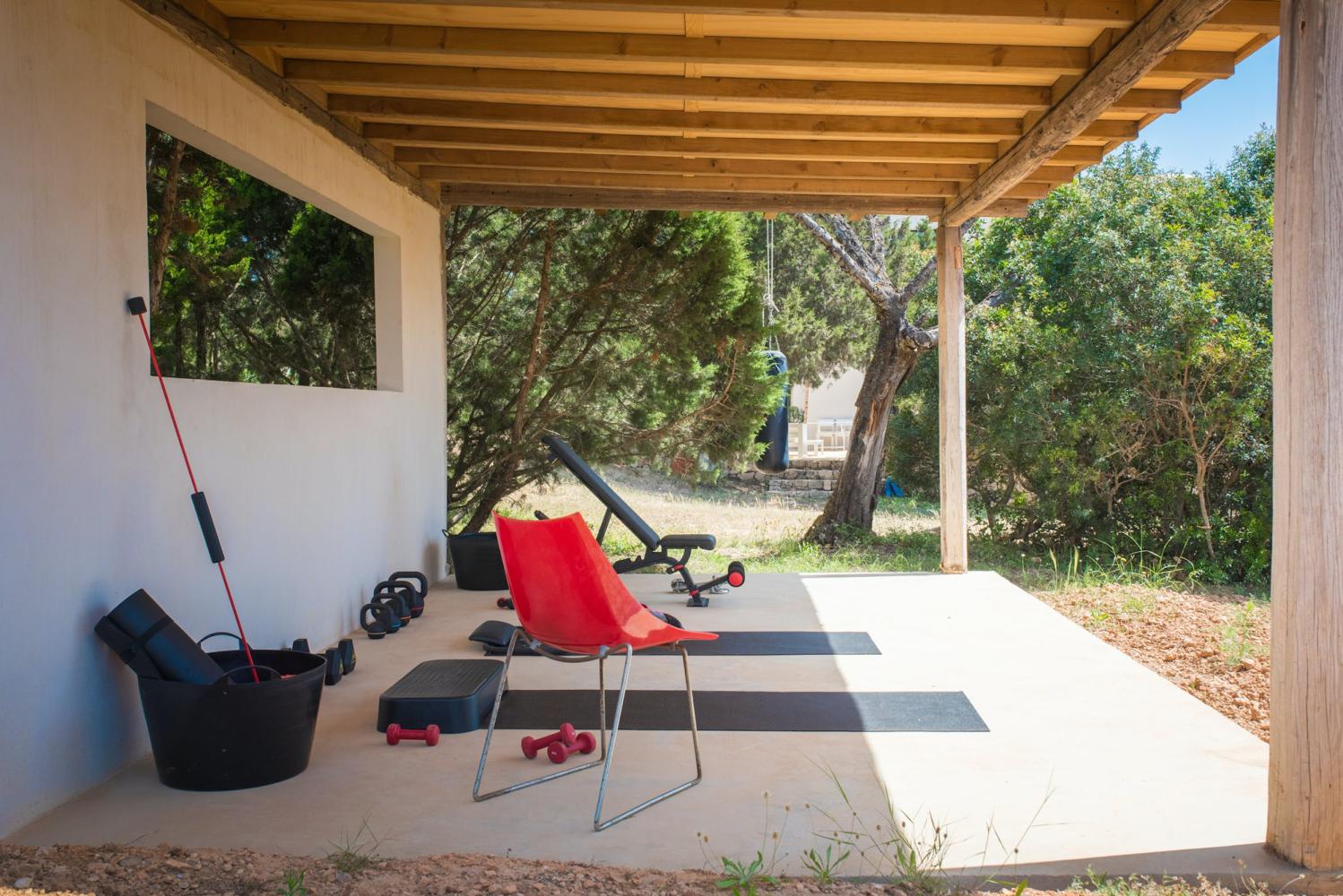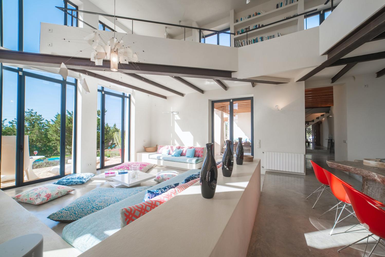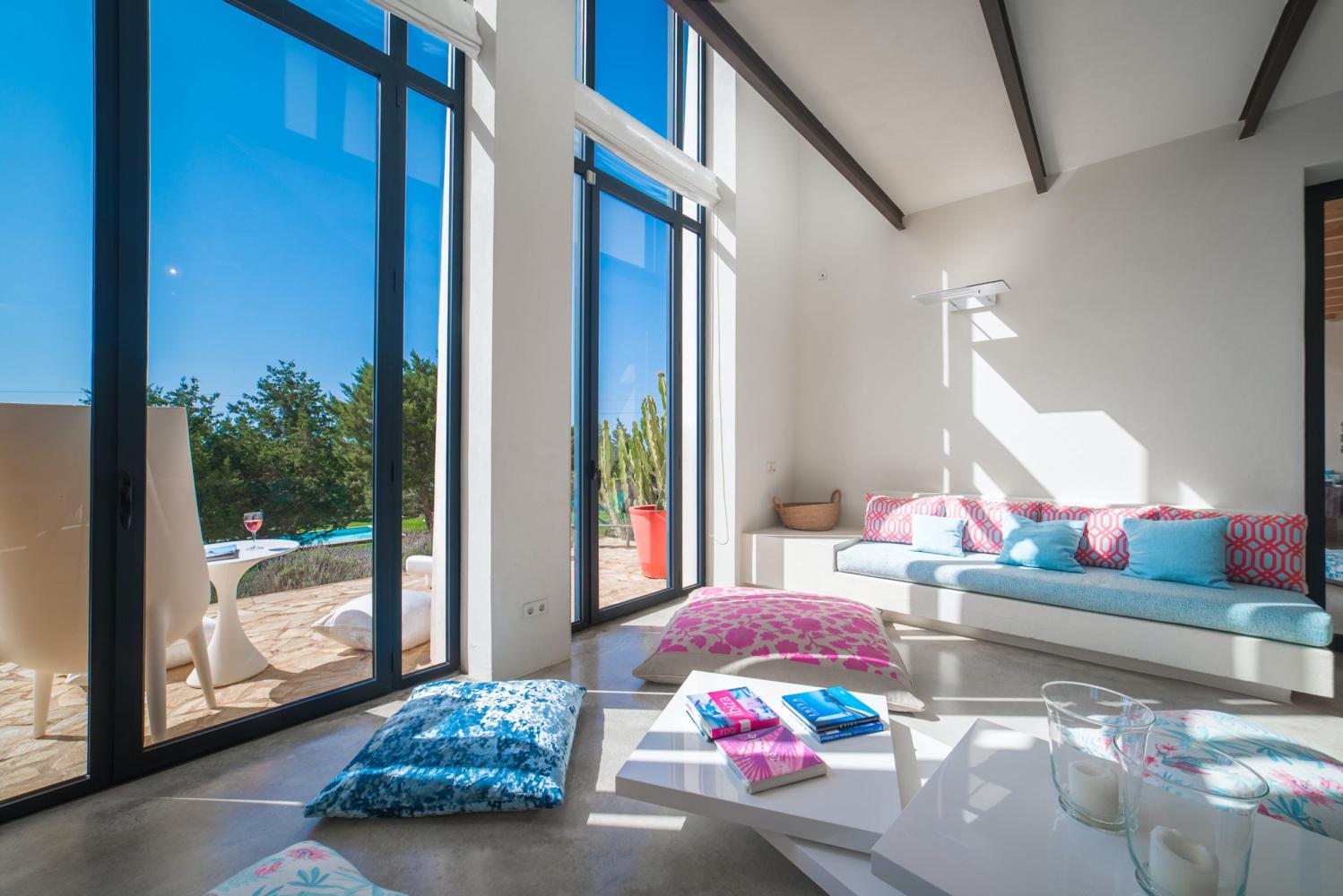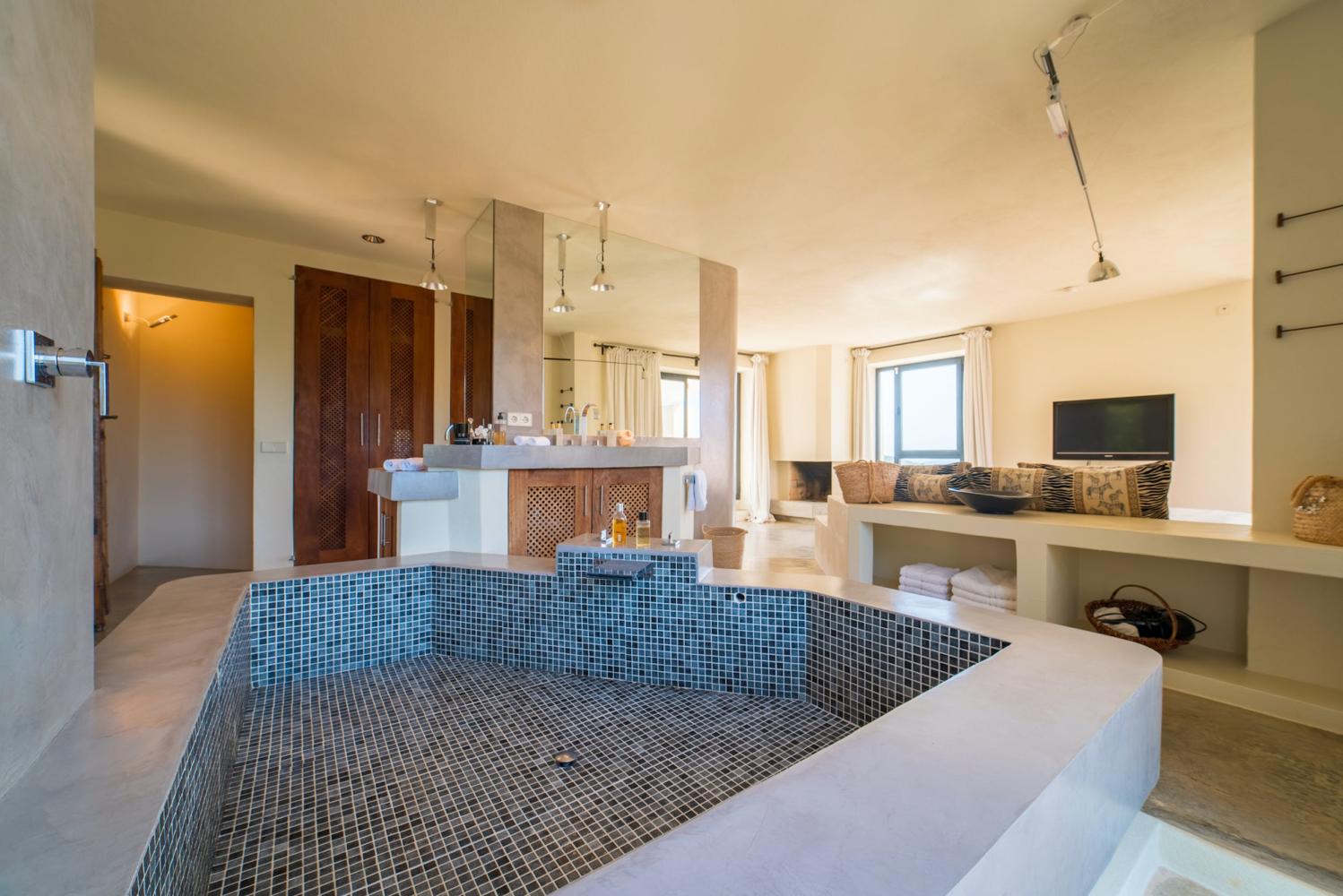 The setting of Castillo de Es Cubells is what really makes it stand out. You’re only a short distance from the three charming pebbly coves that characterize this serene section of coastline, as well as the relaxed, toes-in-the-sand dining at Ses Boques. Enjoy snorkeling in crystal-clear water in the mornings, perusing shops and cafes in neighboring San José in the afternoons, and spending time over dinner in the evenings while the sky displays its nightly display of color. Moving from the pool to the terrace to the living room for a movie night is a breeze thanks to the villa’s seamless transition between indoor and outdoor areas.