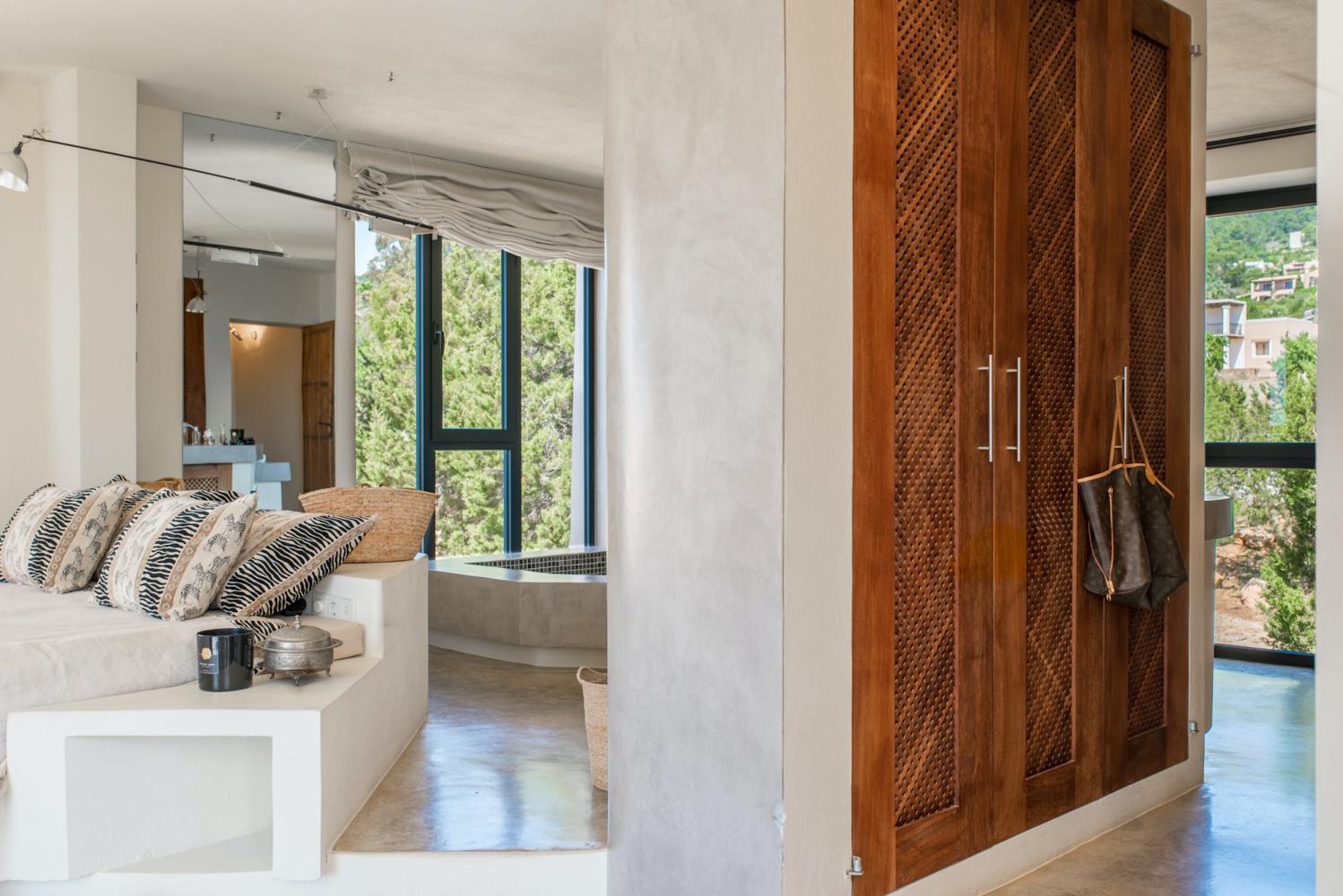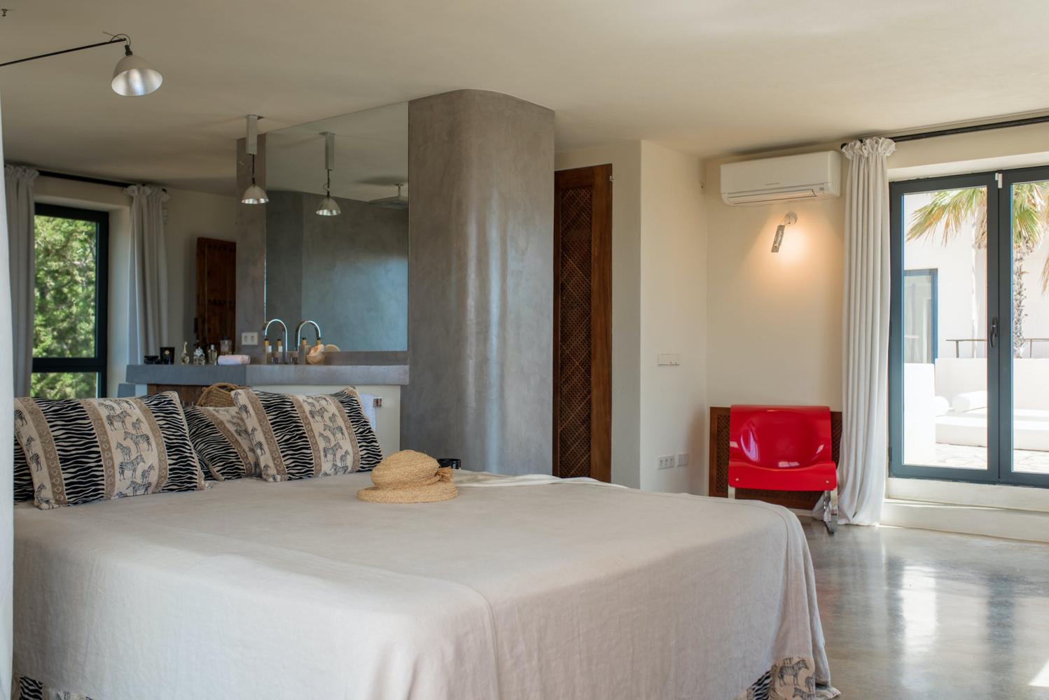 This three-bedroom, three-bathroom retreat (450 m²; sleeps 6) strikes a balance between architectural drama and barefoot ease, right outside the famous golden mile of Ibiza and just a short walk from the picture-perfect village of Es Cubells. Pine forests climb the hills behind, sea views stretch across the horizon, and every nook and cranny is crafted for long, lazy days that flow naturally into starry island nights.